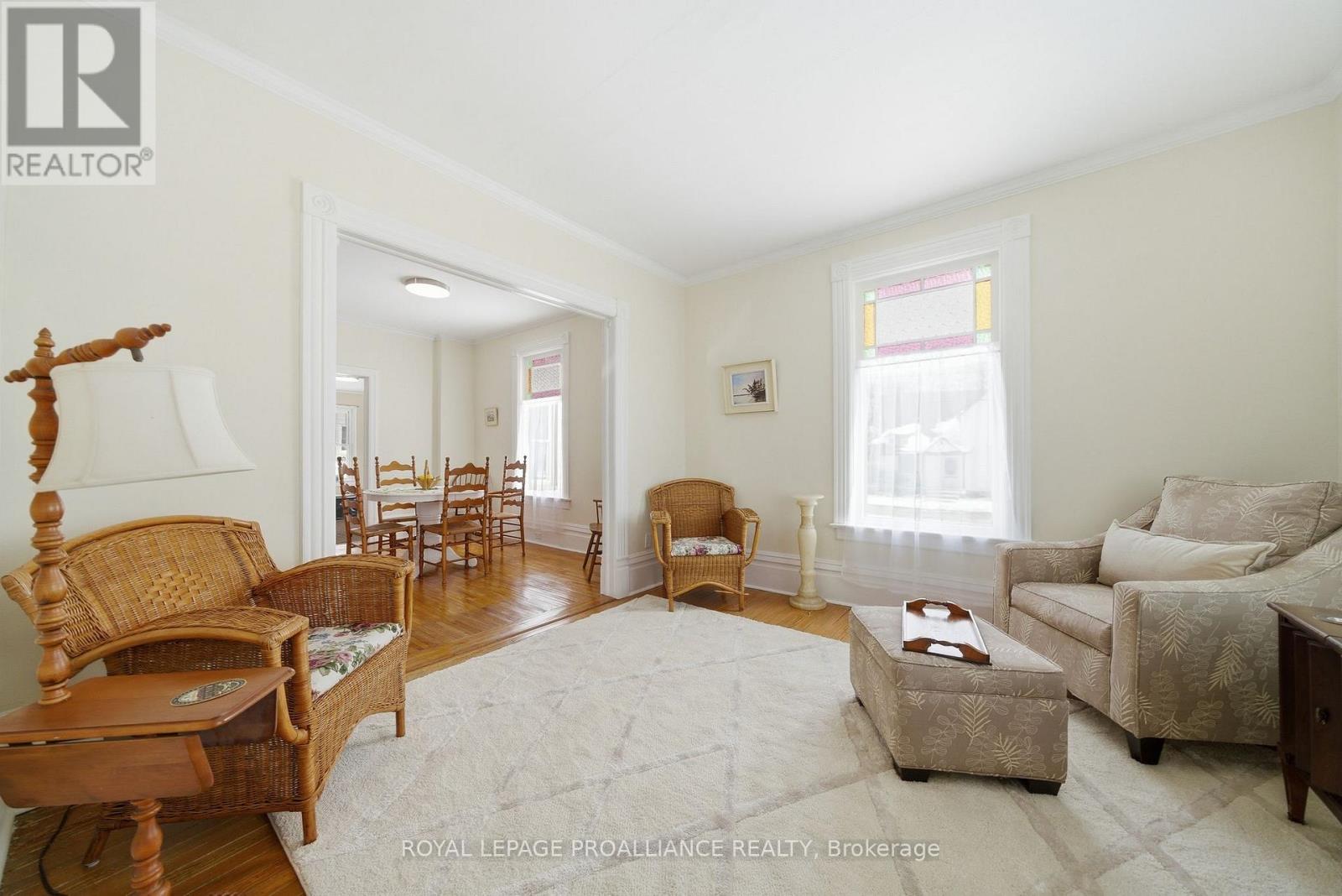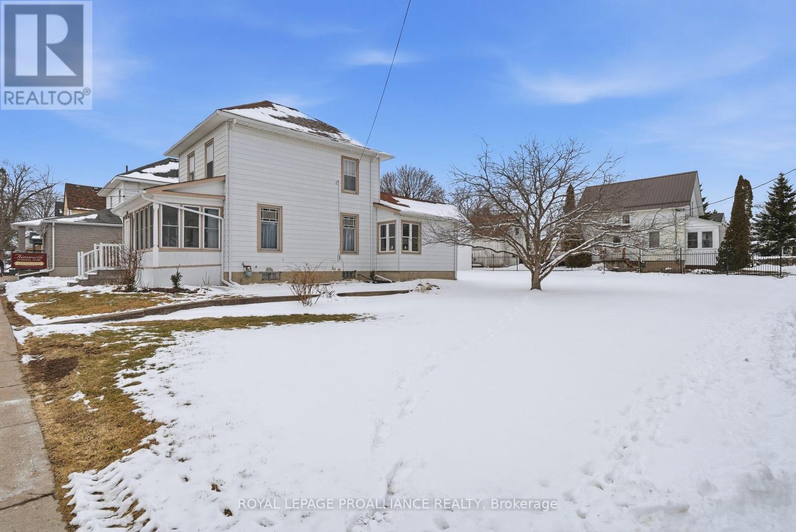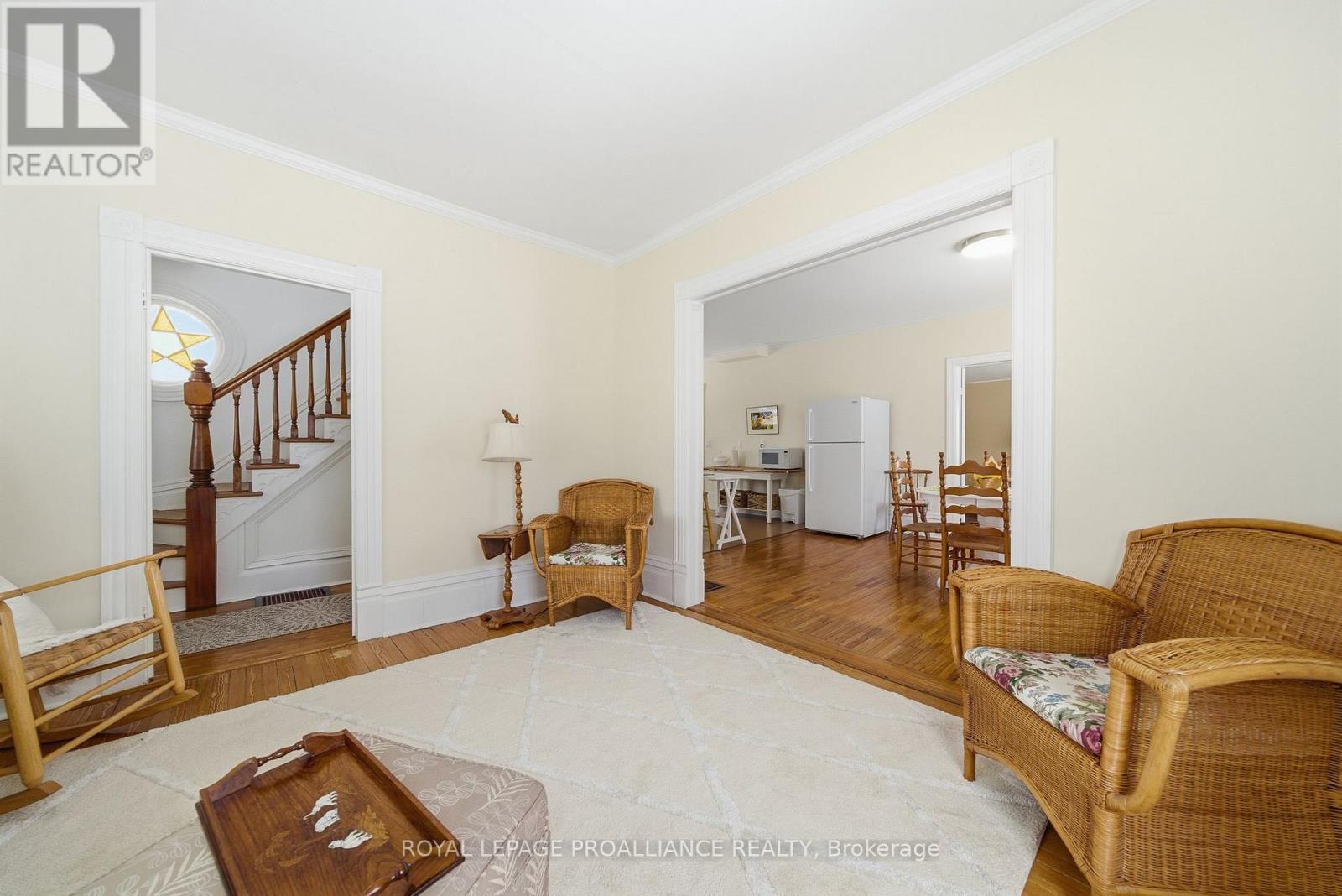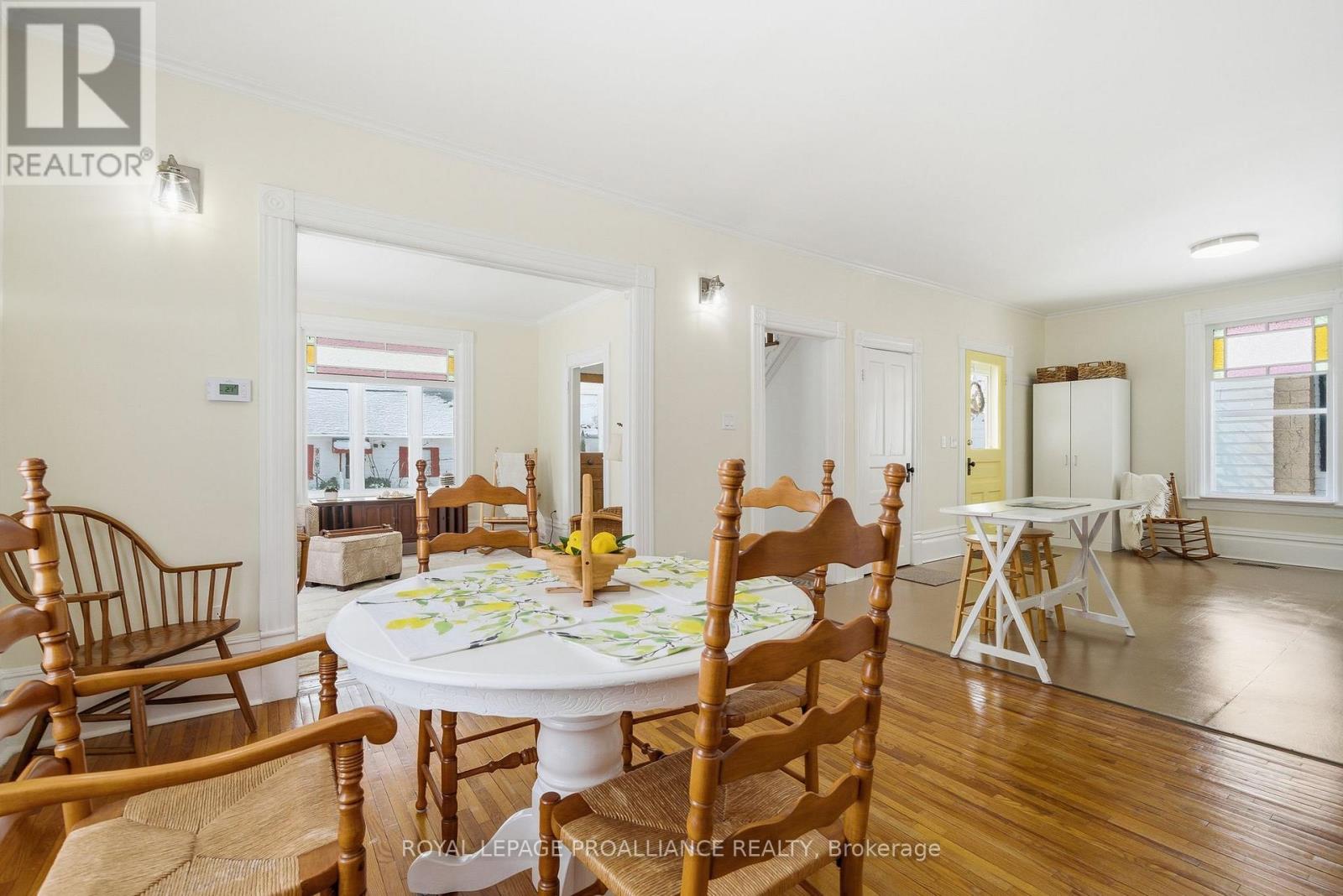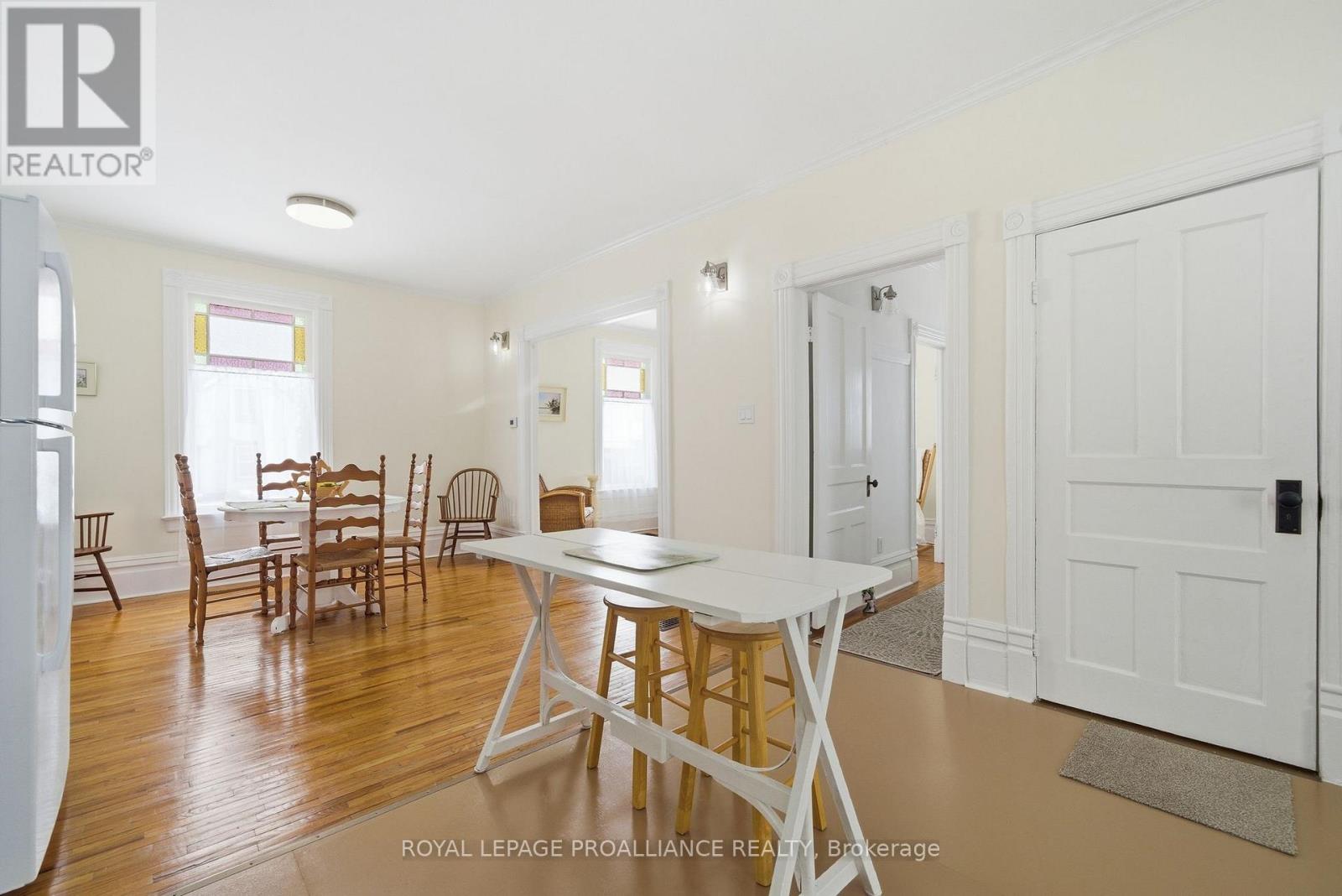 A charming character home with a coach house nestled on a lovely double corner lot in the heart of Wellington - one of Prince Edward County's most desired communities. With three bedrooms and two baths, this home exhibits the "L" shaped plan with the wrap around verandah characteristic of Master builder Willard Wesley Fitzgerald. He designed his homes with a certain flair and architectural interest that continue to make his houses appealing today. Another signature feature of 'Fitzgerald homes' are colourful glass window panels. This house retains 5 original windows, one being a unique patterned five-pointed star within a round sash. Outside, the two-storey detached coach house (18ft by 34 ft now functions as a garage) and other many possibilities. Within short walking distance you'll find all the amenities, from your local grocery store to the library, local parks and the beach. The millennium trail is at your doorstep for hiking and biking and award-winning wineries, boutique shops and the 401 are just a short drive away. This home is perfectly located to live out your "county" dreams. 284 Noxon Avenue is truly the one you've been waiting for (id:51158)