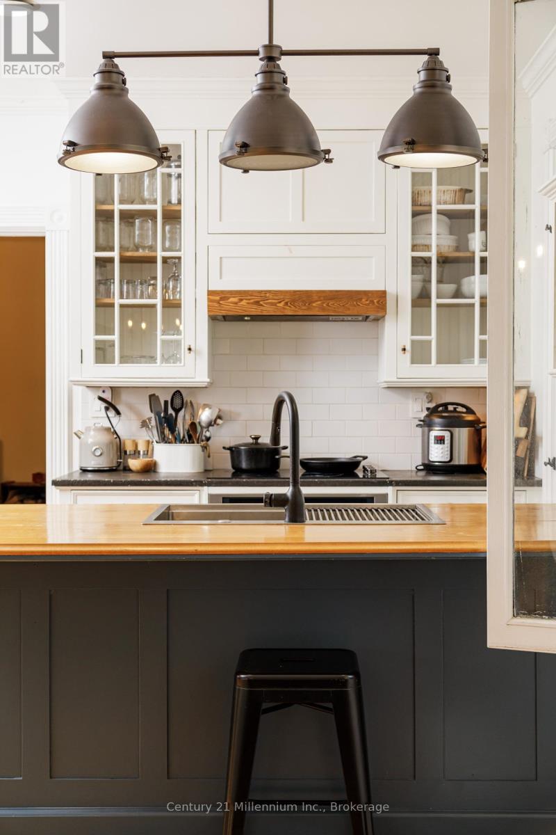 Charming Century Home on Coveted Tree Street in Central Collingwood. Nestled on one of Collingwood's most sought-after tree-lined streets, this beautifully restored century home blends timeless character with modern functionality. Set on a full-town lot, the property is currently configured as a legal duplex, offering incredible flexibility for multi-generational living, rental income, or an easy conversion back to a spacious single-family home. Airbnb may also be a possibility. The main unit features three bedrooms and two full baths, while the second unit offers two bedrooms and one and a half baths, each with its own private driveway for ultimate convenience. Thoughtful renovations have updated every system while preserving original details wherever possible, maintaining the charm and craftsmanship of the late 1800's! A 520 sq ft detached, heated workshop adds even more value and potential. Ideal for artists, hobbyists, or additional storage. Steps from downtown shops, cafés, schools, and parks, this exceptional property offers both investment potential and an opportunity to own a piece of Collingwood's historic core. (id:51158)
