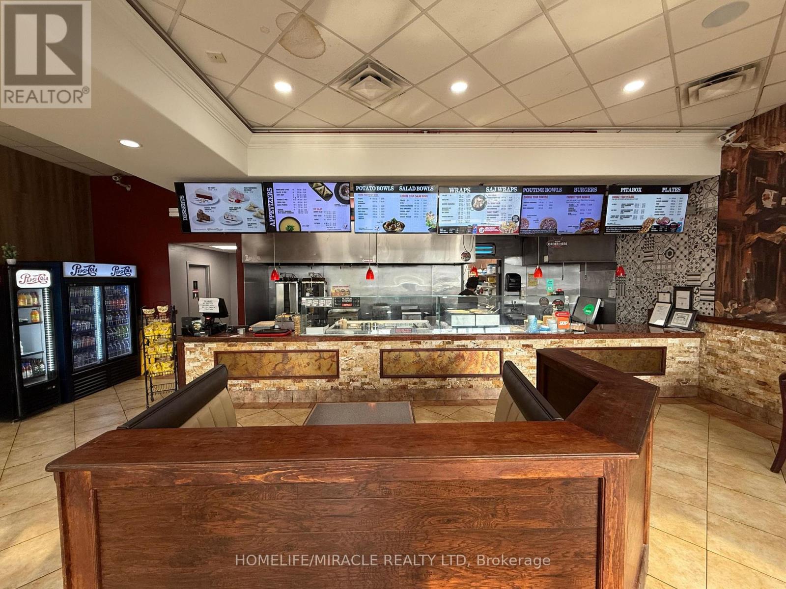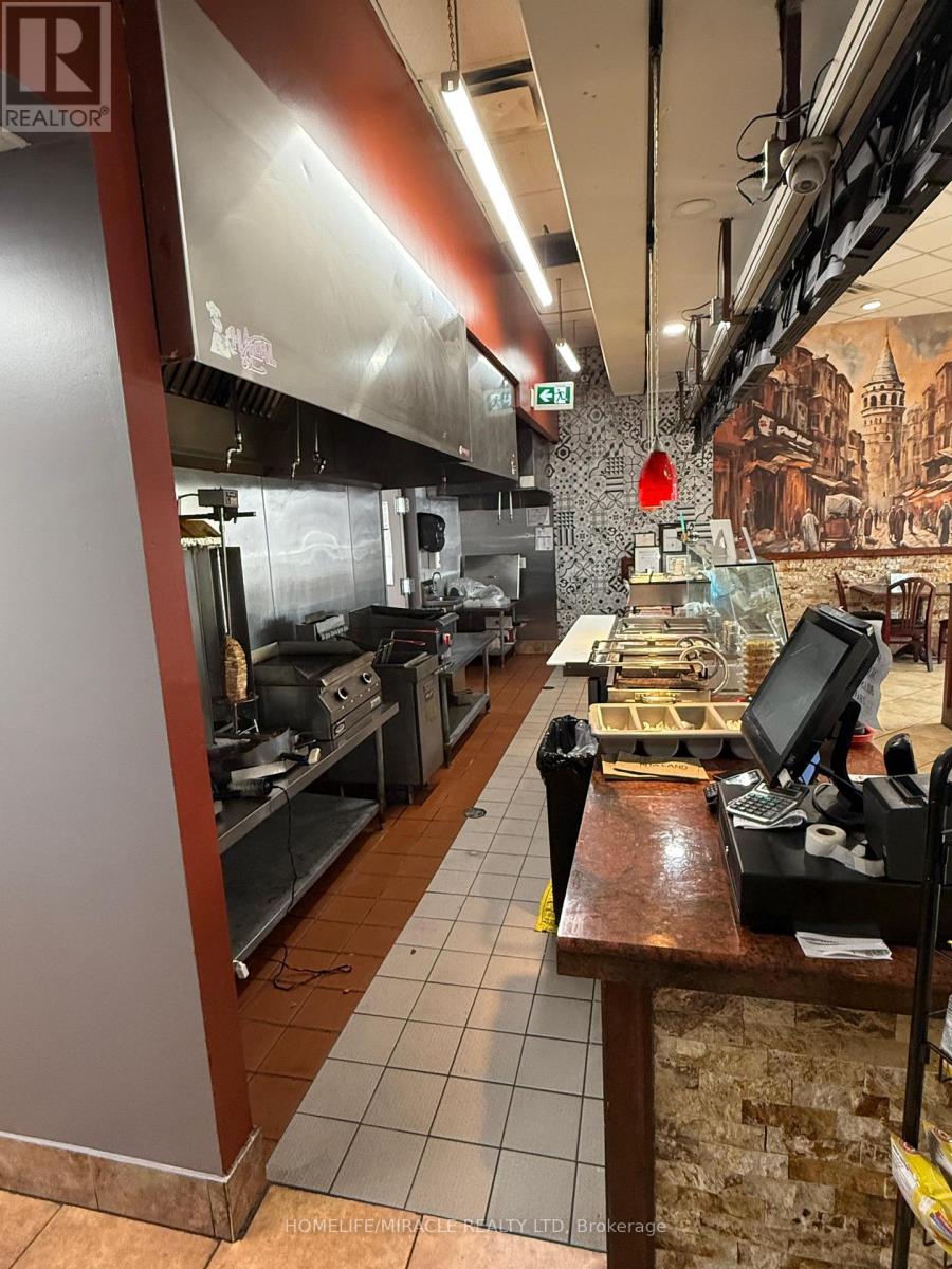 Profit making location for SALE, chance for you to get in and open any restaurant of your choice to take benefit of this amazing location. ---Buyers have the flexibility to convert the space to a traditional Indian restaurant or other non-competing concept with landlord consent.---Fantastic Opportunity in Prime North Etobicoke Location - Can Be Converted to Other Food Concepts! Turnkey opportunity to own a fully equipped restaurant located at 285 Rexdale Blvd, just off HWY 27 and close to HWY 401, 409 & Rexdale Blvd in the heart of Etobicoke's thriving commercial and industrial corridor with Tim Hortons being your neighbor. This strategically positioned plaza location offers exceptional exposure, surrounded by high-density office condos, busy industrial hubs, and a strong residential population. Ideal for lunch rush and dinner traffic, this unit is also perfectly situated for meal prep and delivery services like tiffin or catering especially with Humber being at a 7 min distance. The current setup features a state-of-the-art commercial kitchen, ideal forhigh-volume cooking operations. All equipment and leasehold improvements are in pristine condition. The existing franchise is performing well with solid monthly sales and potential for rapid growth under active ownership. Alternatively, buyers have the flexibility to convert the space to a traditional Indian restaurant or other non-competing concept with landlord consent. Rent is affordable at approx. $8700/month (TMI, HST, Water included). Long lease available. This is an excellent opportunity for owner-operators or food entrepreneurs looking for a central location with built-in clientele and room to scale. (id:51158)