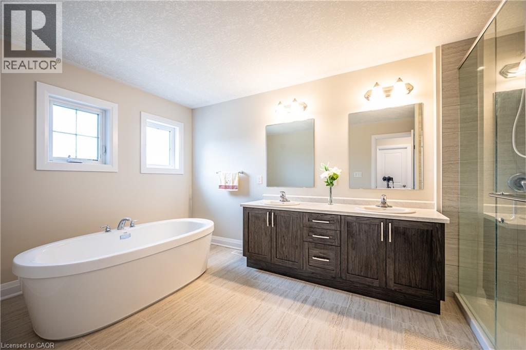 Welcome to 286 Chokecherry Cr, Waterloo – a beautifully upgraded 4-bedroom, in Vista Hills, boasting nearly 2,450 sq ft. Main floor features 9-ft ceilings, enginneer hardwood floors in the great room, oversized tiles, pot lights throughout, Granite countertops with island and breakfast bar in the chef’s kitchen, upgraded cabinetry, backsplash, RO water system, stainless steel appliances, and a convenient laundry/mudroom. Upper level offers all 4 bedrooms with ensuite access, including a luxurious primary with walk-in closet, soaker tub, double sinks, and party-sized shower. Lower-level walkout basement with double doors to the backyard, three large windows, and rough-ins for laundry/bathroom, ideal for an in-law suite or future rec room. Located in a quiet, family-friendly community near the city’s largest forest park, multiple neighborhood parks, and a dog park, just steps to the U of W bus line, Costco, Boardwalk Plaza, shops, restaurants, and top-rated schools Vista Hills P.S. and Laurel Heights S.S. Better than new – don’t miss this executive home! (id:51158)