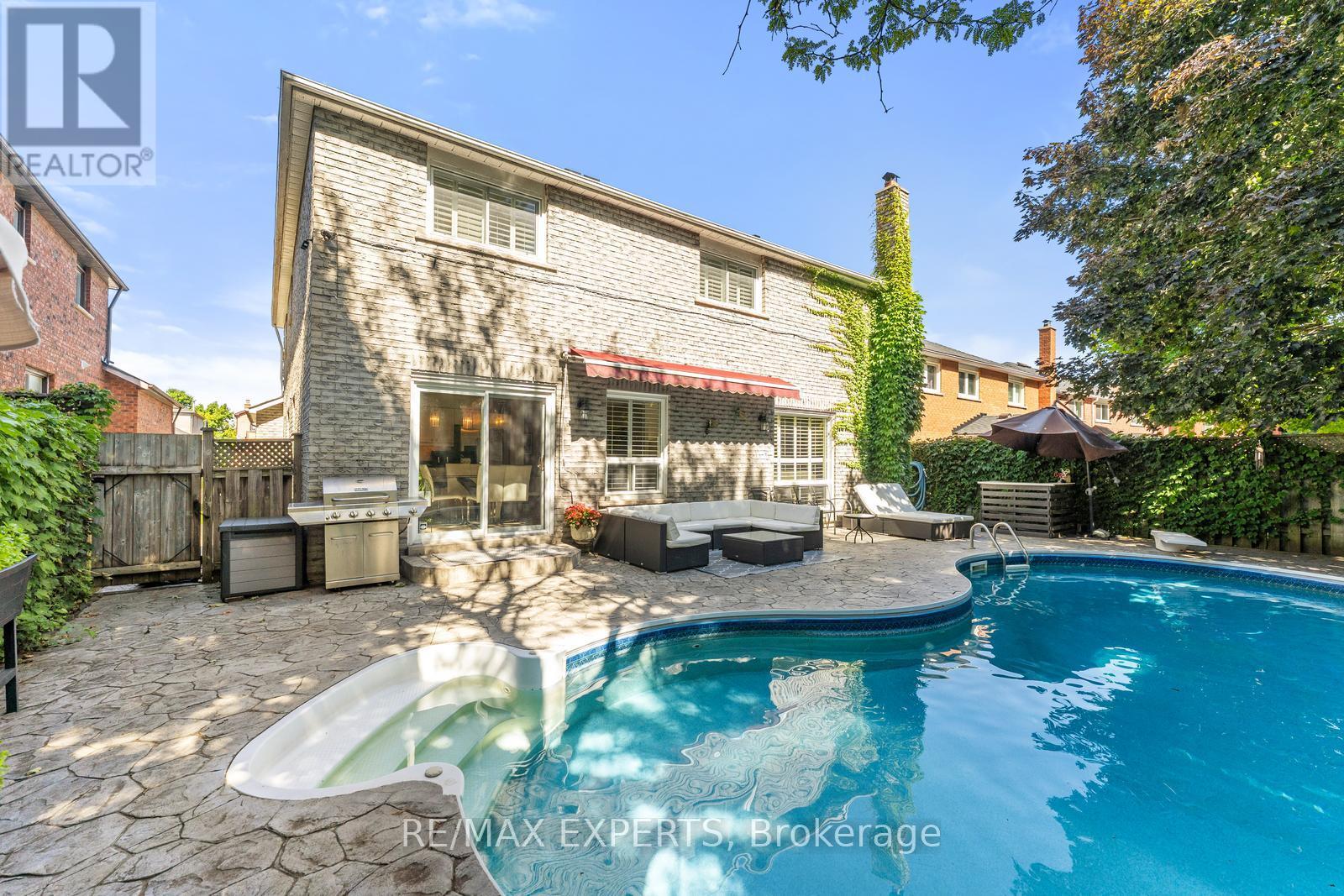 Step into this exceptionally finished, resort-style home, offering luxury and comfort inside and out. The property features a heated in-ground pool with waterfall, hot tub, sauna, gym and a beautifully landscaped, low-maintenance backyard surrounded by mature trees for total privacy.The main floor boasts hardwood throughout, a custom mahogany front door, a welcoming open-to-top foyer, an upgraded eat-in kitchen with granite counters, stainless steel appliances including a gas stove, large island, and California shutters. A versatile office or nanny room is also conveniently located on the main floor, providing the perfect space for work or extended family living.An oak staircase leads to four spacious bedrooms, including a stunning 7-pc primary ensuite with heated floors and full-height wall tiling. The finished basement adds an additional bedroom, gym, and custom built-in wall units. With three fireplaces (two gas, one wood for cozy winter nights), upgraded bathrooms, and a generous dining room ideal for entertaining, this home perfectly blends family living with resort-style amenities.Conveniently located near Upper Canada Mall, Recreation Complex, schools, parks, and transit, it offers the ultimate combination of style, function, and location. (id:51158)