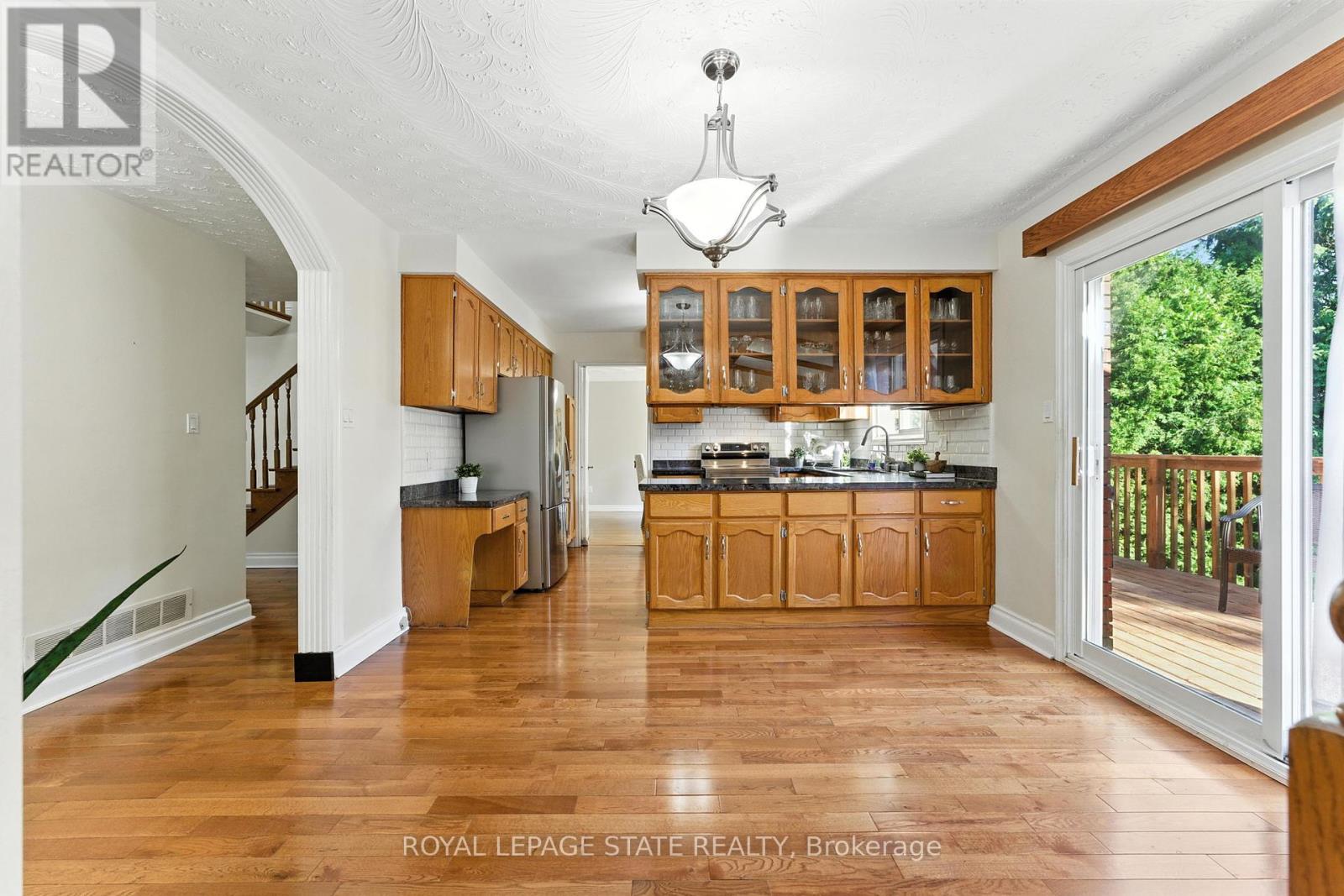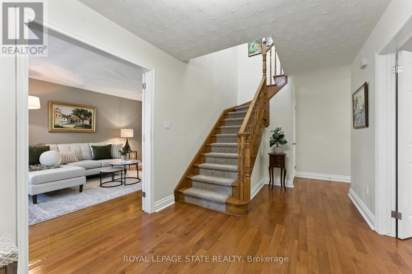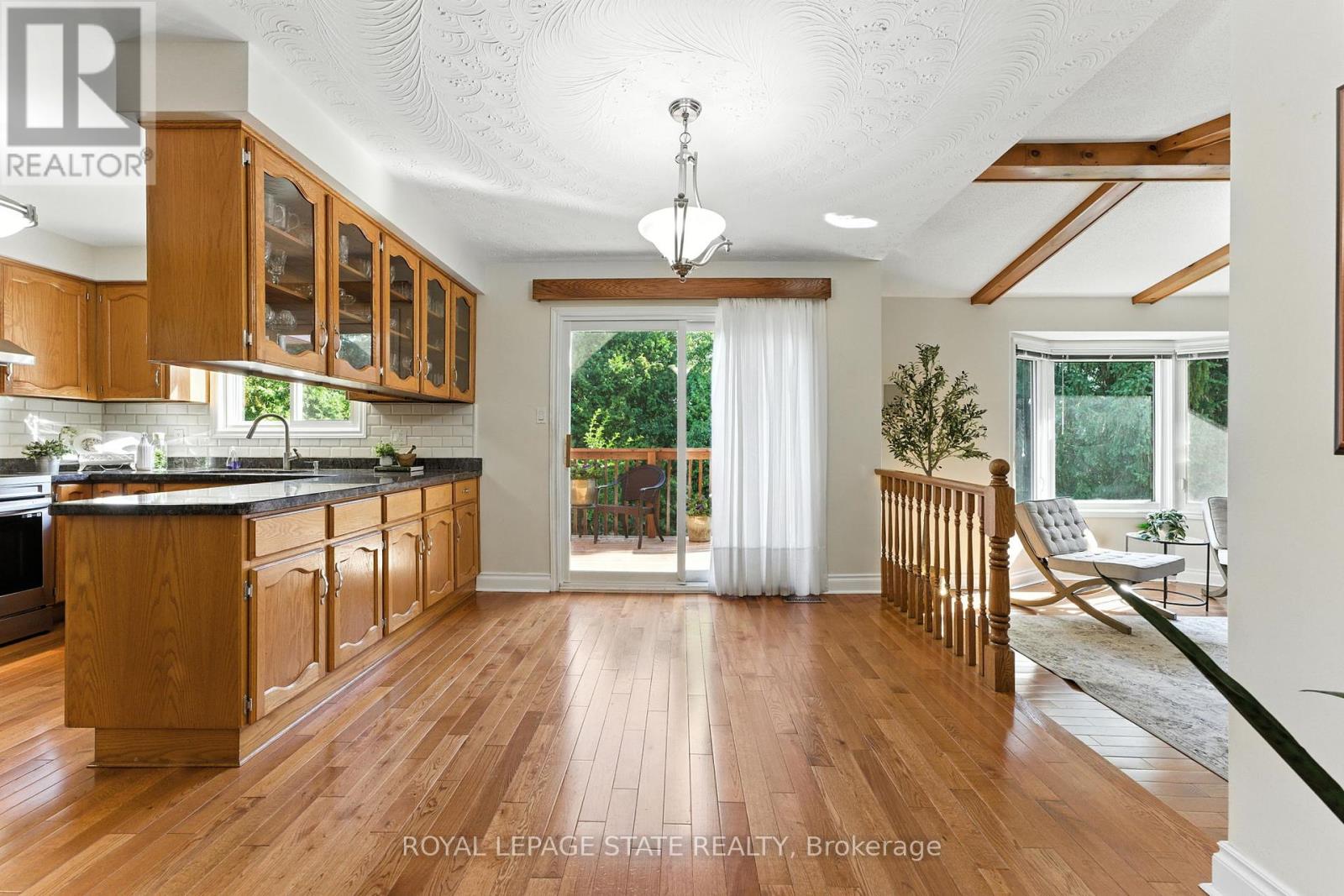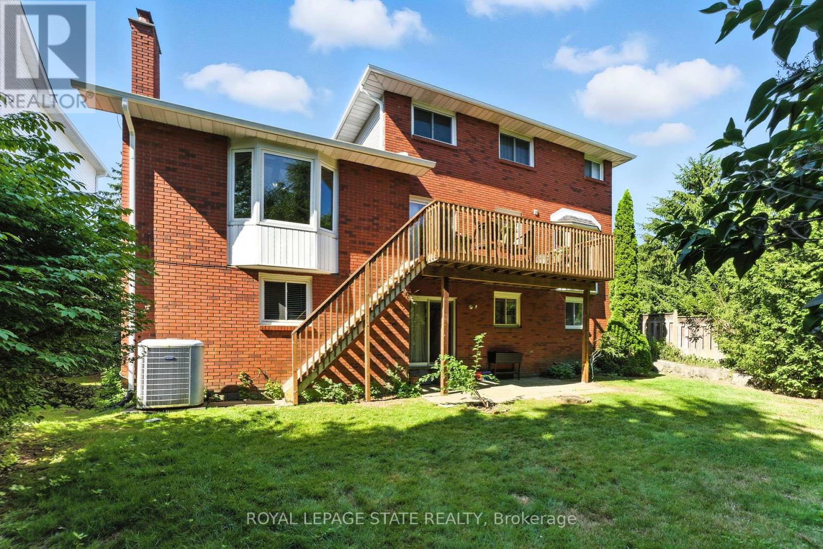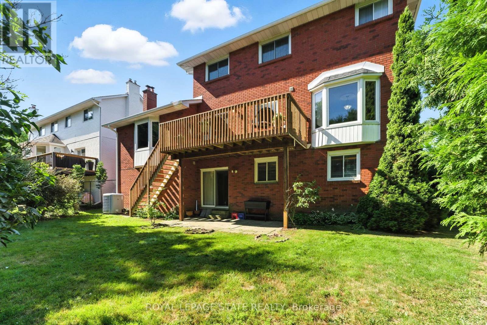 Nestled on a mature, tree-lined street in Ancaster's most desirable neighbourhood, this 4 bedroom, 3.5 bathroom home offers the ideal blend of classic design, thoughtful layout, and unbeatable location. Built by Tandi Homes, this original owner residence features a timeless centre hall plan with generous principal rooms and a natural flow conducive to modern family life. Hardwood floors anchor the main level, where you'll find a spacious dining room and living room, and a den that is a great office or quiet retreat. At the heart of the home, the family room impresses with its vaulted ceilingsgs and oversized windows that brighten the space. The adjacent kitchen offers granite counters, and features handy access to the formal dining room as well as the breakfast room, plus garden doors to the deck that overlooks the private, treed back yard. Upstairs you'll find four spacious bedrooms with low maintenance vinyl flooring, and a master bedroom with an ensuite and walk in closet. The fully finished basement offers a full walkout to the back yard, and has a full kitchen, bedroom with large window, rec room and 3pc updated bathroom. Located close to top schools, parks, trails, and all major amenities, this home offers comfort, character, and enduring value in a coveted location. (id:51158)