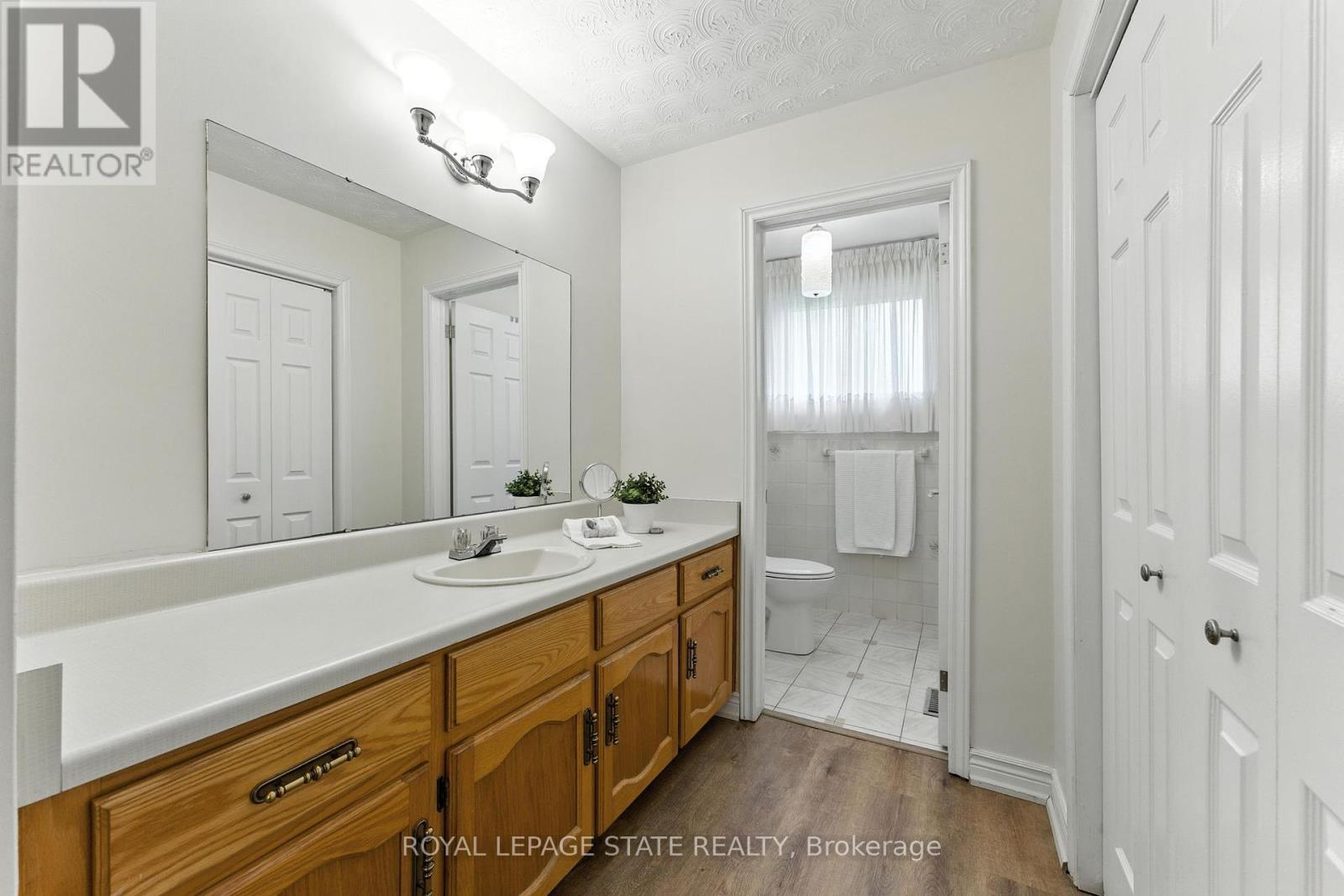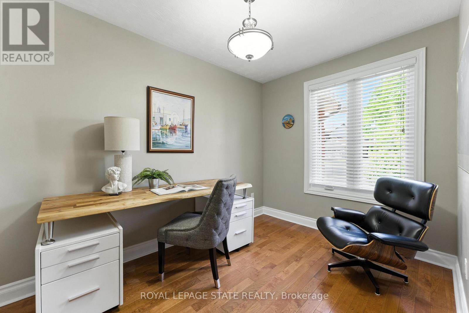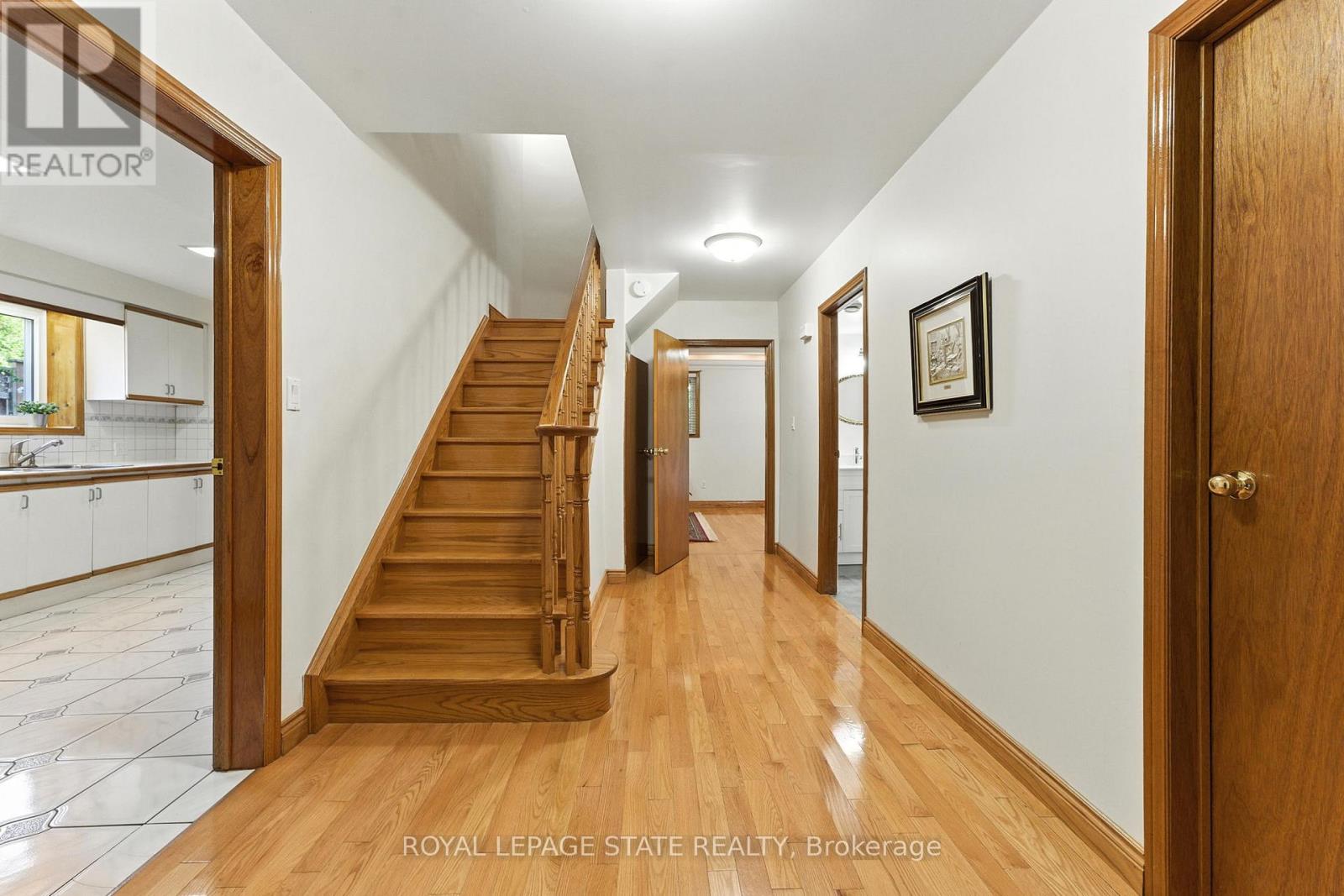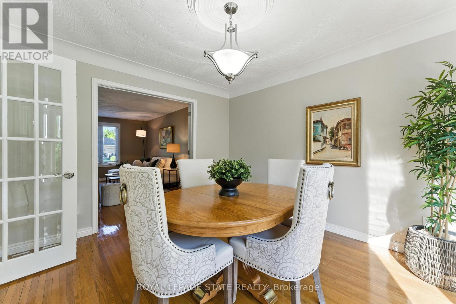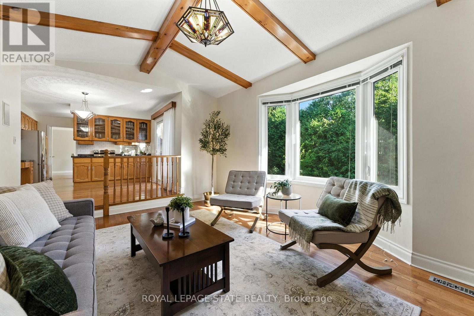 Nestled on a mature, tree-lined street in Ancaster's most desirable neighbourhood, this 4 bedroom, 3.5 bathroom home offers the ideal blend of classic design, thoughtful layout, and unbeatable location. Built by Tandi Homes, this original owner residence features a timeless centre hall plan with generous principal rooms and a natural flow conducive to modern family life. Hardwood floors anchor the main level, where you'll find a spacious dining room and living room, and a den that is a great office or quiet retreat. At the heart of the home, the family room impresses with its vaulted ceilingsgs and oversized windows that brighten the space. The adjacent kitchen offers granite counters, and features handy access to the formal dining room as well as the breakfast room, plus garden doors to the deck that overlooks the private, treed back yard. Upstairs you'll find four spacious bedrooms with low maintenance vinyl flooring, and a master bedroom with an ensuite and walk in closet. The fully finished basement offers a full walkout to the back yard, and has a full kitchen, bedroom with large window, rec room and 3pc updated bathroom. Located close to top schools, parks, trails, and all major amenities, this home offers comfort, character, and enduring value in a coveted location. (id:51158)