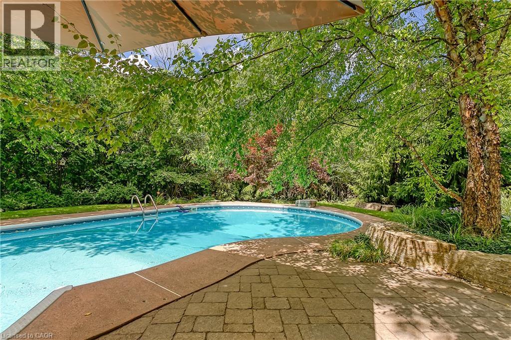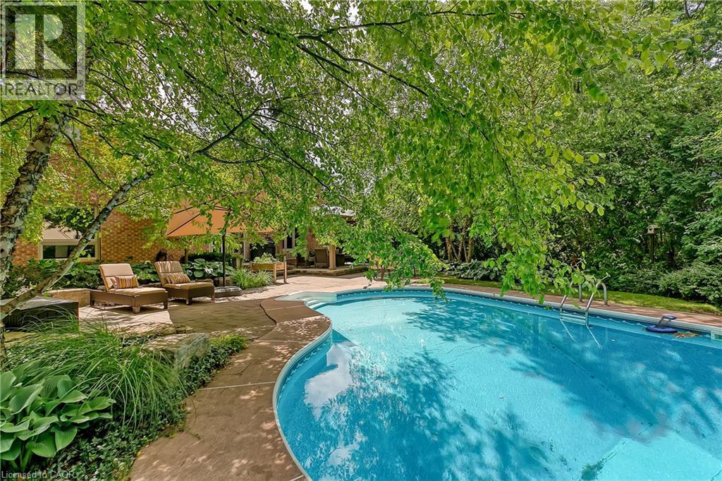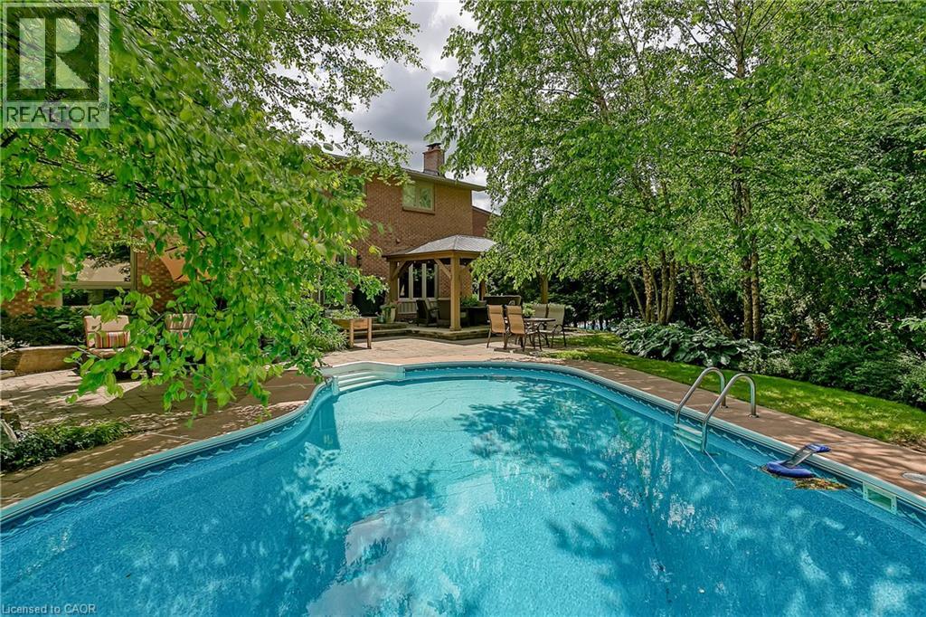 An outstanding and truly irreplaceable property backing onto 16 Mile Creek and the world-renowned Glen Abbey Golf Course. The gorgeous, private lot features an in-ground pool and charming cabana—an ideal setting for outdoor entertaining and family gatherings. This impeccably maintained four-bedroom family home has been thoughtfully updated throughout. The stunning cream kitchen features stainless steel appliances, granite countertops, and an oversized island, seamlessly opening to a warm and inviting family room with a wood-burning fireplace. Maple hardwood flooring runs throughout. Elegant formal dining room, complemented by a bright living room with a charming bay window. The upper level offers four generously sized bedrooms, an updated main bath, and a delightful reading nook. The primary retreat includes a walk-in closet and a beautifully renovated, spa-inspired ensuite with a freestanding soaker tub and separate shower. The fully finished basement provides exceptional additional living space with a wood-burning fireplace, recreational area, and an additional three-piece bathroom. (id:51158)