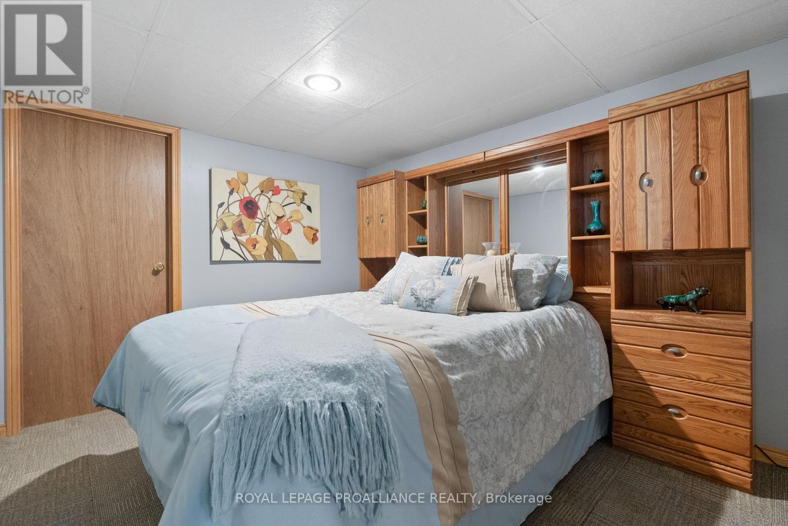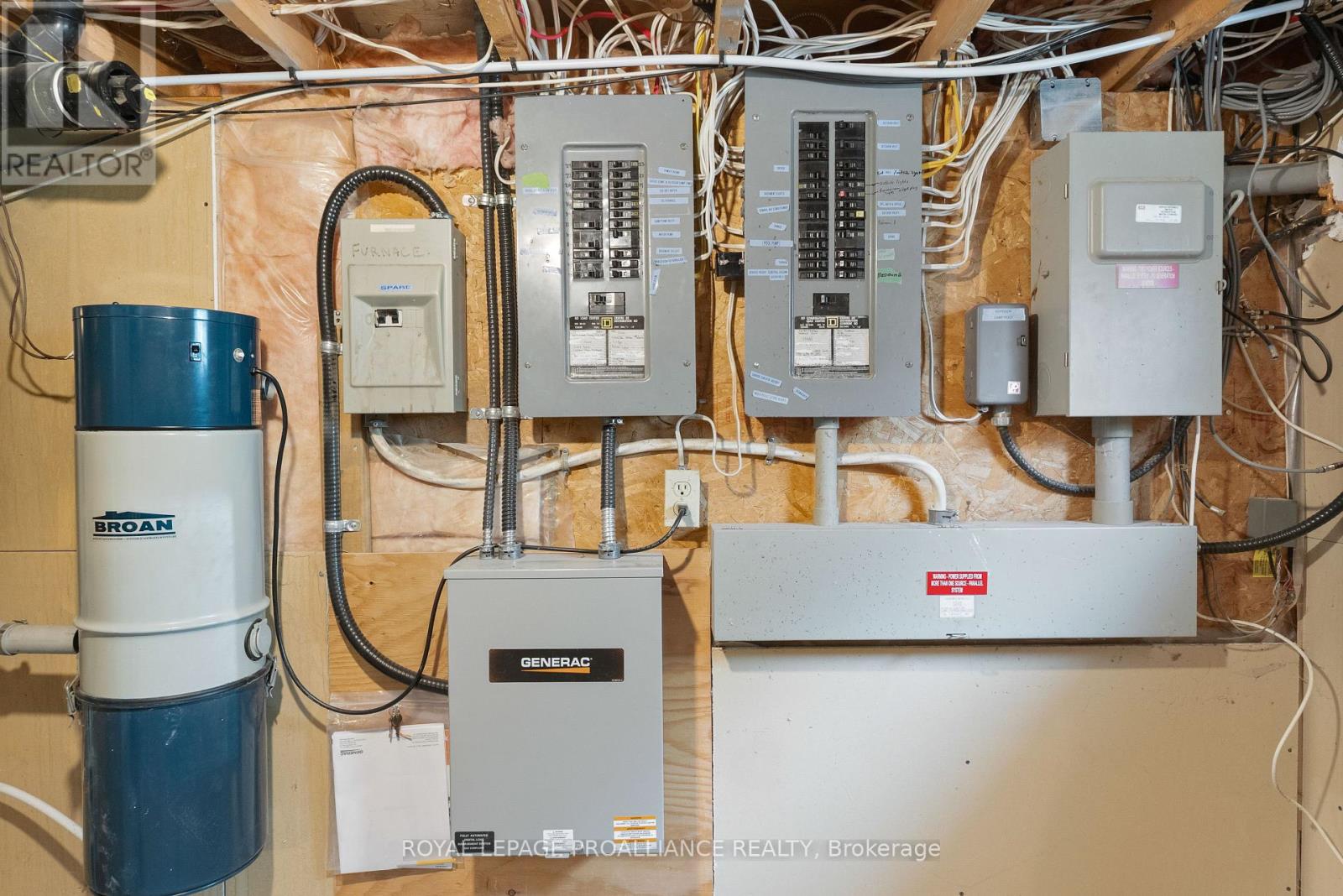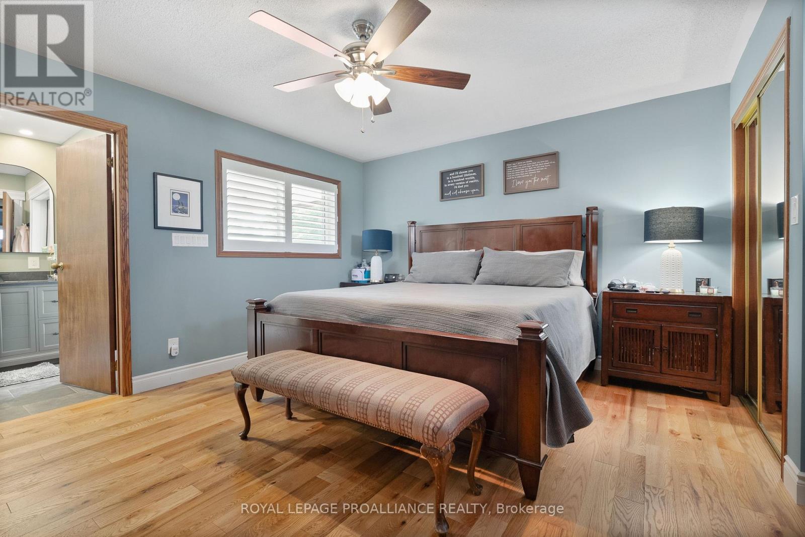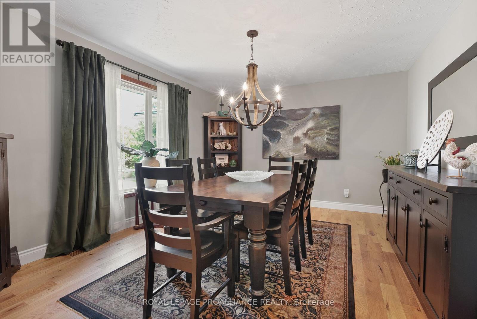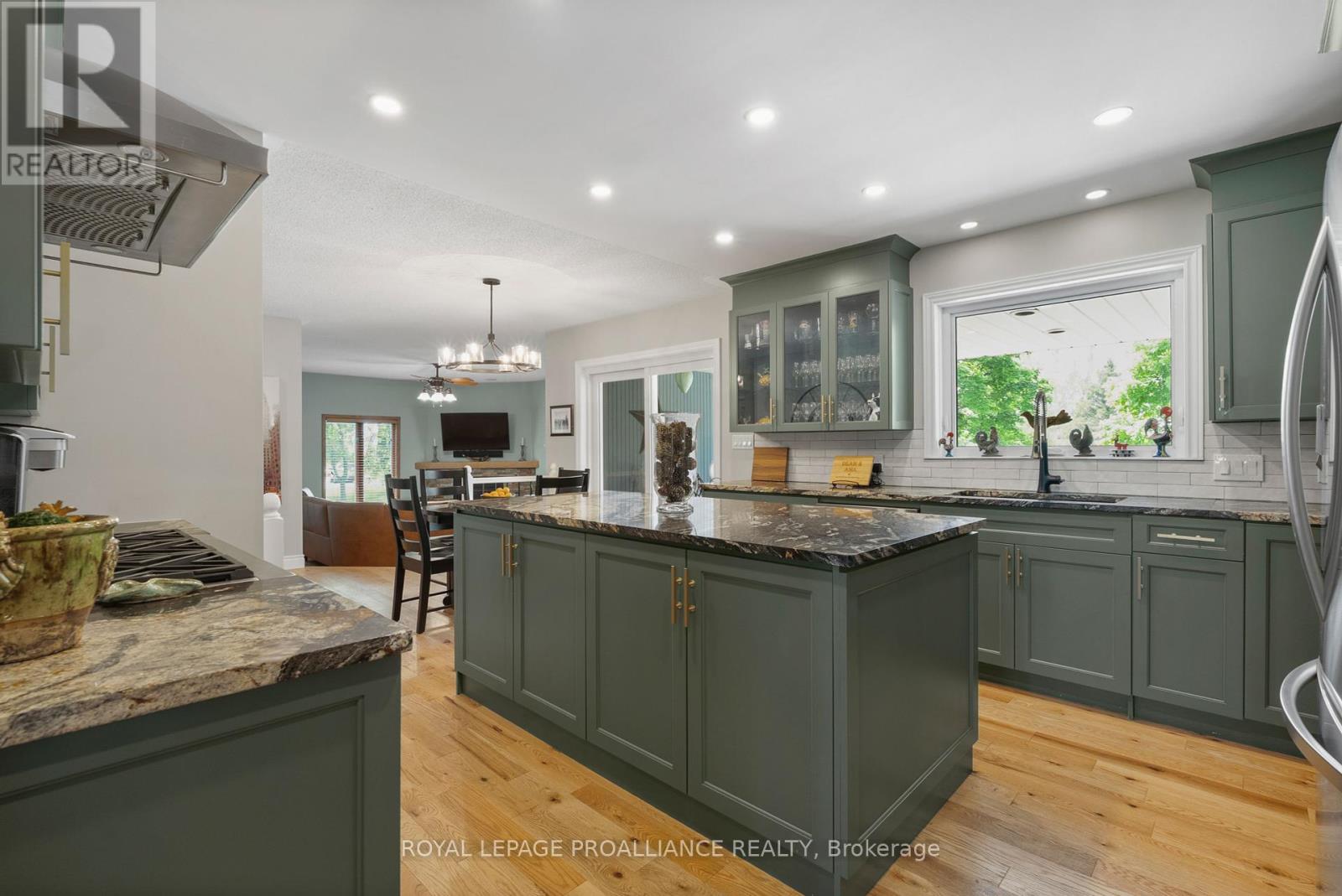 Welcome to this beautifully updated bungalow nestled on 1.46 acres at the edge of town where modern comfort meets relaxed country living. This move-in ready home is bursting with upgrades and features that make it perfect for families, professionals, and anyone who craves space and style. Inside, you'll find three spacious bedrooms and two and a half bathrooms, including a renovated primary ensuite with generous storage. The dedicated office or den offers a bright space to work from home, while the upgraded main bathroom and powder room add style and function. The main-floor laundry adds convenience, and the cozy family room with a gas fireplace is perfect for movie nights and quiet evenings. Gorgeous hardwood flooring runs throughout the main level, tying it all together with warmth and character.The heart of the home is the fully renovated kitchen, complete with modern cabinetry, granite countertops, a center island, and a new sink and faucet. It comes equipped with brand new stainless steel appliances, including a fridge, built-in oven, microwave, countertop stove, and dishwasher. The kitchen opens to a sunny breakfast nook with views of the backyard and connects to a formal dining room, ideal for entertaining. Sliding patio doors lead to a covered deck and fenced-in saltwater pool area your own private summer retreat with a direct gas line for the BBQ. Downstairs, the fully finished basement adds even more living space with a pellet stove for extra warmth, a guest room or office, a fitness or hobby area, and plenty of storage. Outside, the property continues to impress. Beyond the pool area, the expansive yard features a fire pit and two sheds for added functionality. A metal roof was installed in 2014 and comes with a 50 year transferable warranty, offering long-term peace of mind. The solar panels keeps your hydro costs to a bare minimum and the generator is a great feature for backup power. (id:51158)