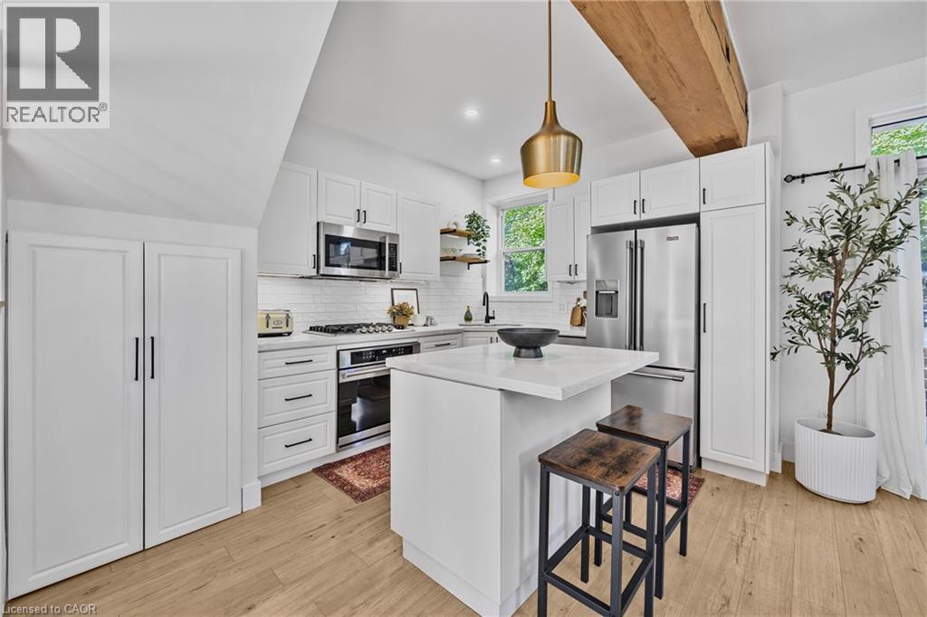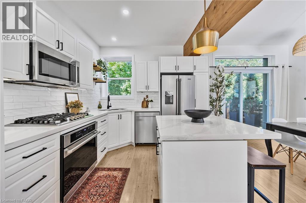 Completely renovated and move-in ready, this stunning 2+1 bedroom, 2 bath home in Hamilton’s sought-after St. Clair neighbourhood looks like it belongs in a magazine. Step inside to find designer finishes, quality craftsmanship, and a bright, open-concept living space with a striking exposed beam that adds warmth and character. The professionally designed kitchen features quartz countertops, stylish cabinetry, and a seamless flow to the backyard through sliding doors—an entertainer’s dream! Upstairs, two spacious bedrooms with plenty of closet space offer comfort and style, while the finished lower level provides an additional bedroom or versatile living space. The chic, private backyard is ideal for gatherings or quiet evenings, making outdoor living just as enjoyable as inside. This home includes 2 parking spaces for convenience. The detached garage, complete with hydro, offers incredible potential for an ADU, workshop, or studio. A first-time home buyer’s dream, this property is just steps to Gage Park, scenic trails, schools, and amenities, blending style, comfort, and investment opportunity in one. Don’t miss your chance to own a fully updated gem in one of Hamilton’s most sought-after communities! (id:51158)