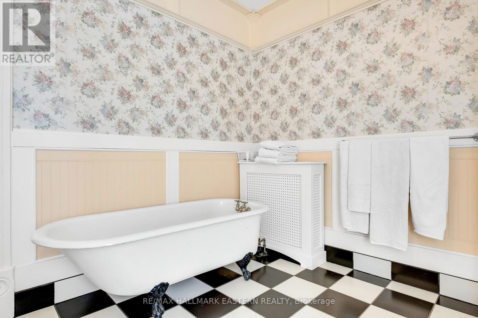 VICTORIAN ELEGANCE MEETS MODERN LUXURY IN MARMORA Discover An Extraordinary Residence in The Heart of Marmora, Where Timeless Victorian Architecture Meets Refined Modern Living. This Landmark Property, Set on Over Half an Acre of Landscaped Grounds, features a Stately Covered Porch Entrance, Intricate Trim, and a Warm, Inviting Interior Filled with Rich Wood Details and Thoughtfully Designed Gathering Spaces. Currently Operated as an Inn and Bed & Breakfast, This Home Offers an Abundance of Lifestyle Possibilities - From a Private Luxury Estate to a Boutique Hospitality Retreat. The Main Level Includes a Full-Service Chefs Kitchen, Elegant Dining Areas, and Seamless Access to an Outdoor (Presently Licensed) Patio Perfect for Entertaining in Style. A Year-Round Indoor Heated Pool Adds a Touch of Resort-Inspired Indulgence, While the Large Double Garage Provides Ample Storage and Utility. Upstairs, Uniquely Appointed Guest Rooms, Many with Private or En-Suite Baths Offer Both Comfort and Character, Making This Property Ideal for Hosting Extended Family, Friends, or Private Events. The Possibilities Are Limitless, Whether You Envision it as a Grand Single-Family Home, a Luxury Weekend Escape, or a Showpiece Investment! Situated Midway Between Toronto and Ottawa in a Welcoming Small-Town Setting with Easy Access to Scenic Countryside, Shops, and Recreation, This One-Of-A-Kind Property Blends Historic Grace with Modern Sophistication for a Truly Unmatched Living Experience. APARTMENT (FLAT) has 1 Bedroom, 4-Piece Bath, Full Kitchen in Great Room, Private Entrance & Deck (id:51158)