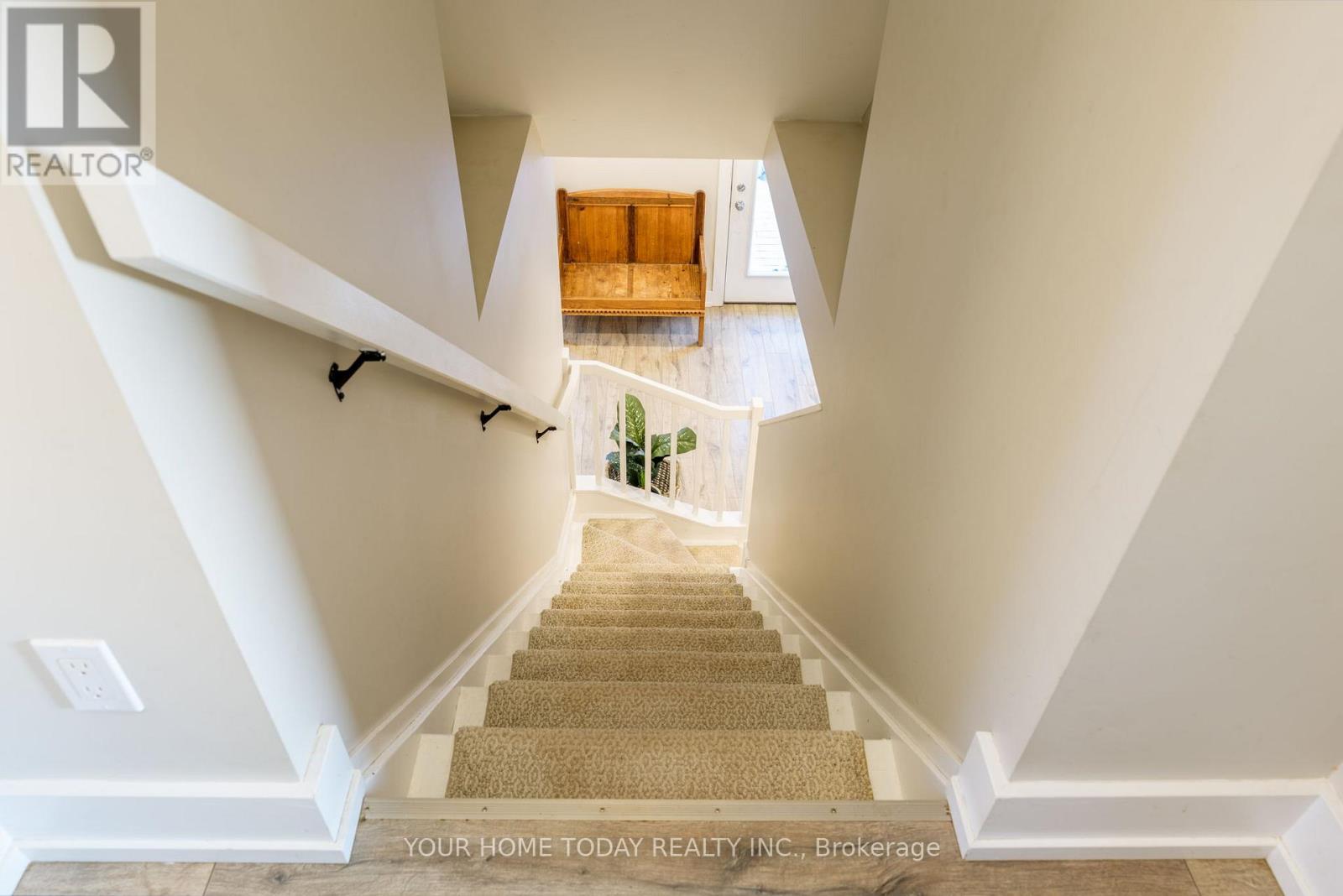 Amazing Pie-Shaped Lot in Prime Georgetown Location with Potential to Sever or add Additional Dwelling Unit!Set on an expansive lot with access from two roads, this fully renovated property offers unlimited possibilities with tons of parking and a separate garage - perfect for hobbyists or extra storage. Inside, the main and upper levels have been fully redone in 2021 with attention to detail, quality finishes and a designer flair. The home features two sleek bathrooms - a 4-piece on the main level and a 2-piece upstairs. The sun-filled living room is warm and inviting, with access to the deck and fenced in yard - ideal for weekend BBQs or morning coffee. The sharp kitchen with eat-in area boasts neutral white cabinetry, quartz counters, stainless steel appliances with two bright windows. Throughout the home, you'll find stylish vinyl plank flooring that enhances the modern appeal. The main floor includes a convenient primary bedroom, while the upper level offers two cozy bedrooms with gently sloped ceilings and charming knee walls. A main-floor laundry adds everyday convenience. All this in a fabulous location - walking distance to everything Georgetown has to offer, including schools, parks, shops, the GO Station, and more. (id:51158)
