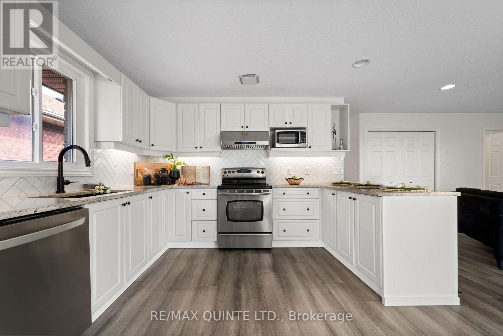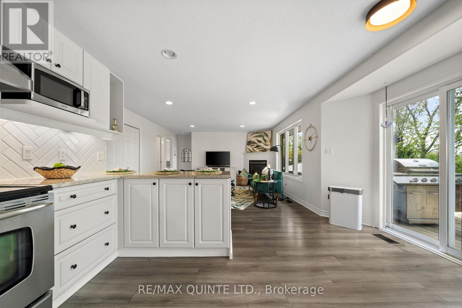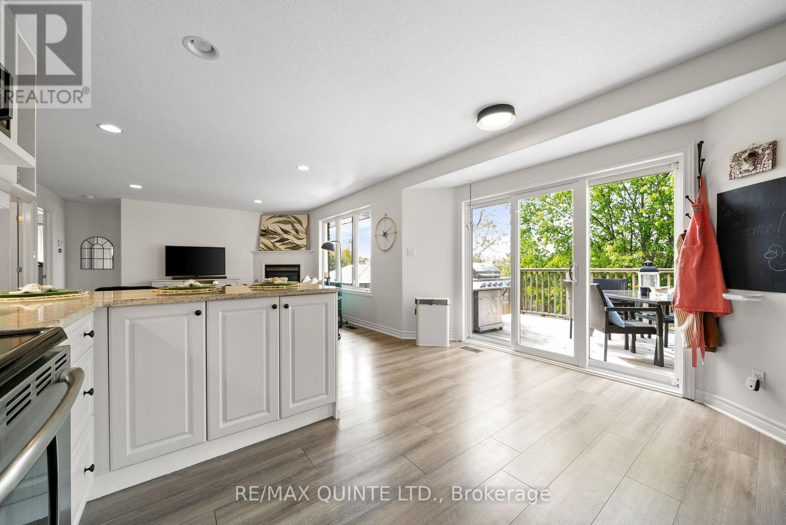 Welcome to 29 Northview Lane. This stunning 5-bedroom, 3-bathroom bungalow sits on a picturesque ravine lot and offers almost 3,000 sq ft of total living space. Nestled in a quiet neighbourhood just minutes from the 401 and CFB Trenton, this home combines style, space, and location. Step inside to discover a bright and spacious layout featuring luxury vinyl flooring, fresh professional paint, and a modern updated kitchen with tile backsplash and granite countertops. The main floor family room with a natural gas fireplace provides the perfect spot to relax, and the eat-in kitchen opens to a large deck with a gas BBQ hook-up ideal for entertaining and enjoying the fenced backyard and scenic ravine views. The primary bedroom includes ensuite with a double vanity, and the upstairs bathroom was fully updated in Spring 2023. With economical natural gas heating, central air, and an attached garage, this home offers comfort and convenience. A perfect blend of modern updates and peaceful surroundings don't miss your chance to call this one home. (id:51158)