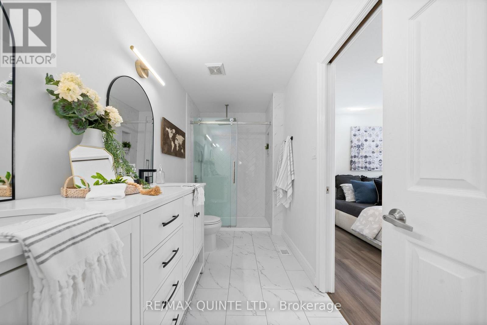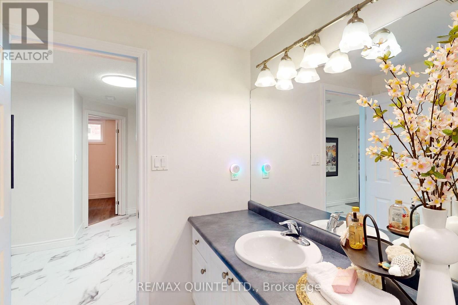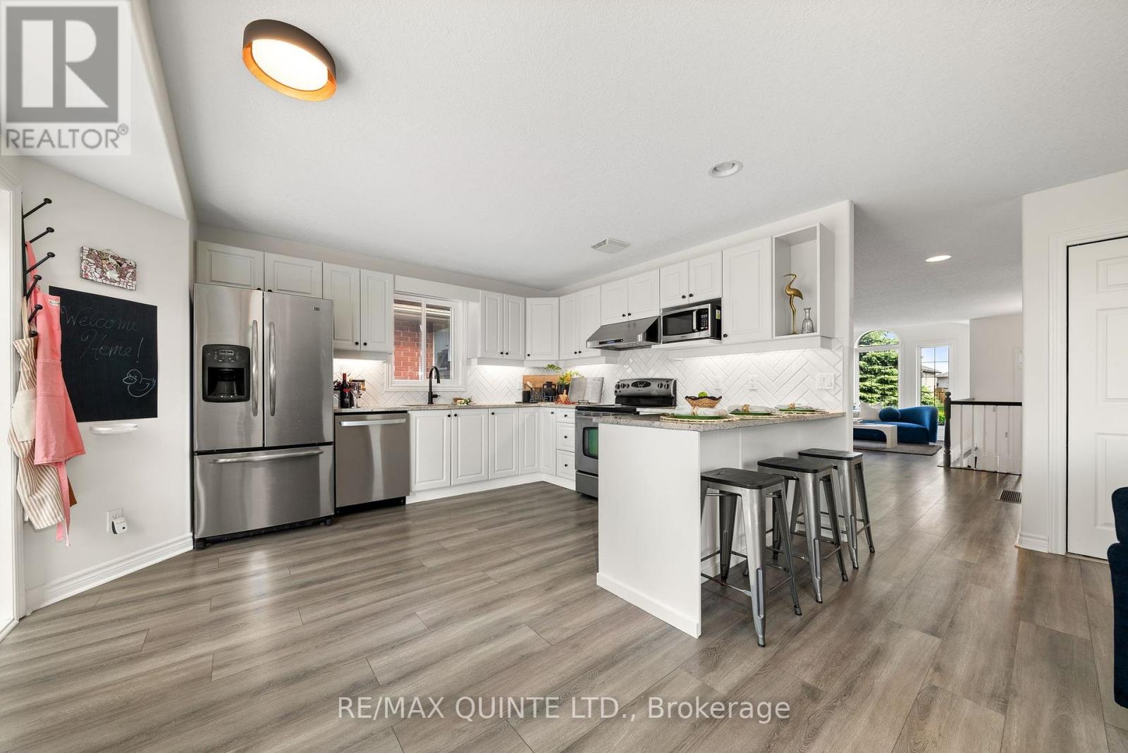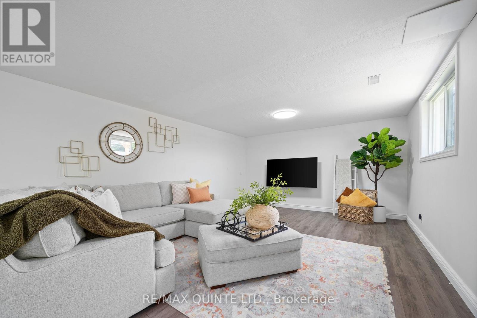 Welcome to 29 Northview Lane. This stunning 5-bedroom, 3-bathroom bungalow sits on a picturesque ravine lot and offers almost 3,000 sq ft of total living space. Nestled in a quiet neighbourhood just minutes from the 401 and CFB Trenton, this home combines style, space, and location. Step inside to discover a bright and spacious layout featuring luxury vinyl flooring, fresh professional paint, and a modern updated kitchen with tile backsplash and granite countertops. The main floor family room with a natural gas fireplace provides the perfect spot to relax, and the eat-in kitchen opens to a large deck with a gas BBQ hook-up ideal for entertaining and enjoying the fenced backyard and scenic ravine views. The primary bedroom includes ensuite with a double vanity, and the upstairs bathroom was fully updated in Spring 2023. With economical natural gas heating, central air, and an attached garage, this home offers comfort and convenience. A perfect blend of modern updates and peaceful surroundings don't miss your chance to call this one home. (id:51158)