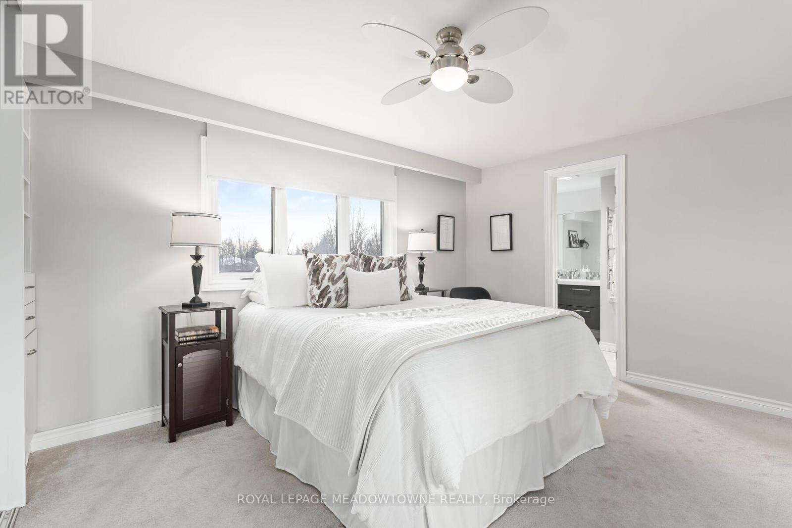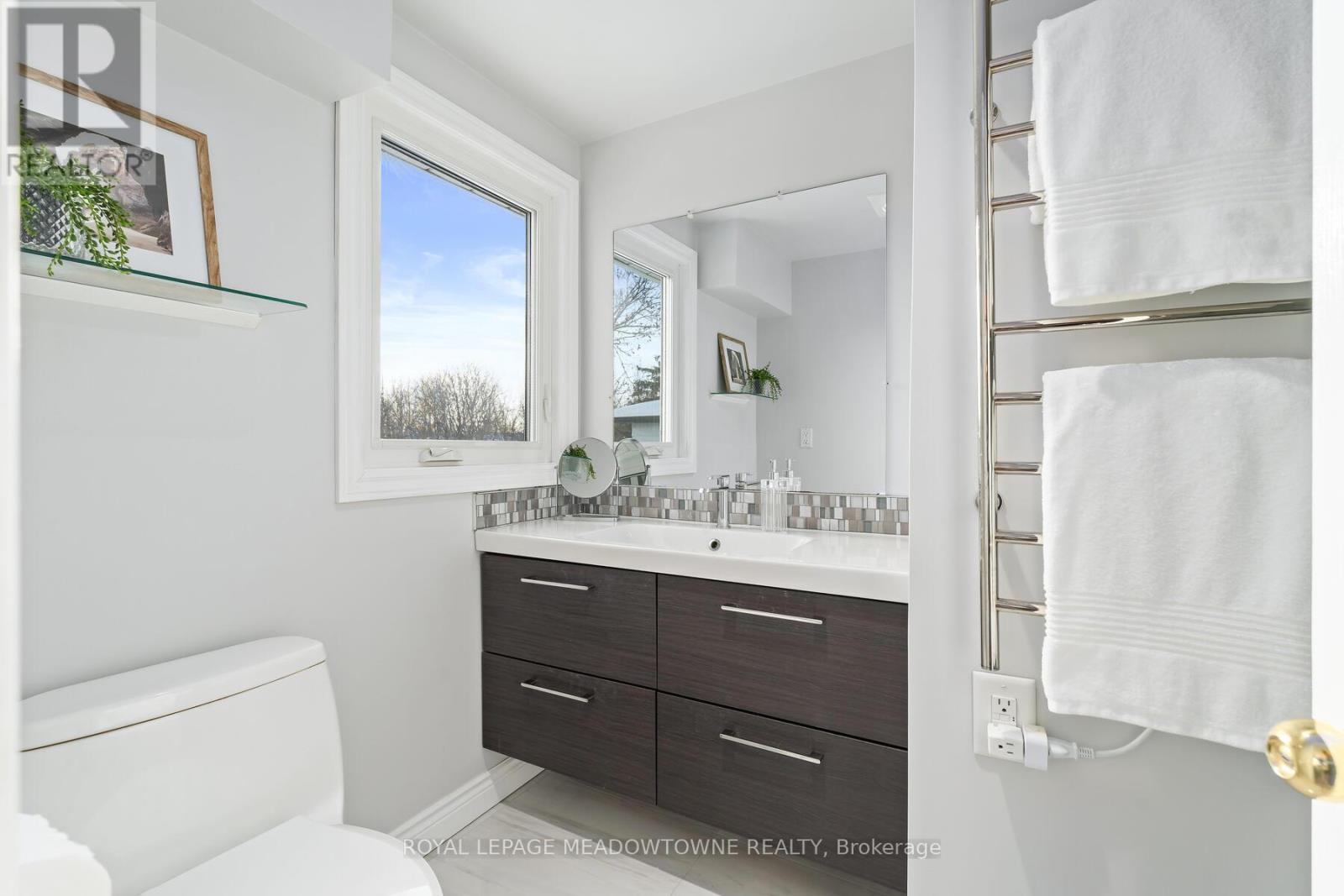 Stunning RAVINE lot on quiet crescent! The views are incredible. Enjoy your morning coffee in the fabulous kitchen or on the gorgeous deck looking out onto the breathtaking Hungry Hollow ravine. 1/5th of an acre in town with beautiful gardens and tons of privacy. The house is in mint condition and offers four bedrooms and 2.5 bathrooms plus a walkout lower level. The chef's kitchen is one of the nicest kitchens you'll see with loads of counter space, a computer nook, quartz counters, a huge breakfast bar, ample cupboard space, stainless steel appliances plus a gas stove top and built-in oven! The bathrooms are all updated and there is even a lovely 3-pc ensuite. There are two gas radiant heat fireplaces, ideal as a backup heat source, that offer a warmth and glow to the living room and rec room. The walkout offers a workshop space, office nook, laundry area and a rec room. Tons of upgrades: shingles 2025, furnace 2017, air conditioner 2017, windows 2021, attic insulated to R60, electrical 2013. Fully fenced yard, pretty garden waterfall, garage and double driveway. Walk to parks, schools, shops and the incredible trail system in your backyard. A nature lover's haven! Pride of ownership ... shows to perfection and it has all been done for you! Just move in and enjoy the view! (id:51158)