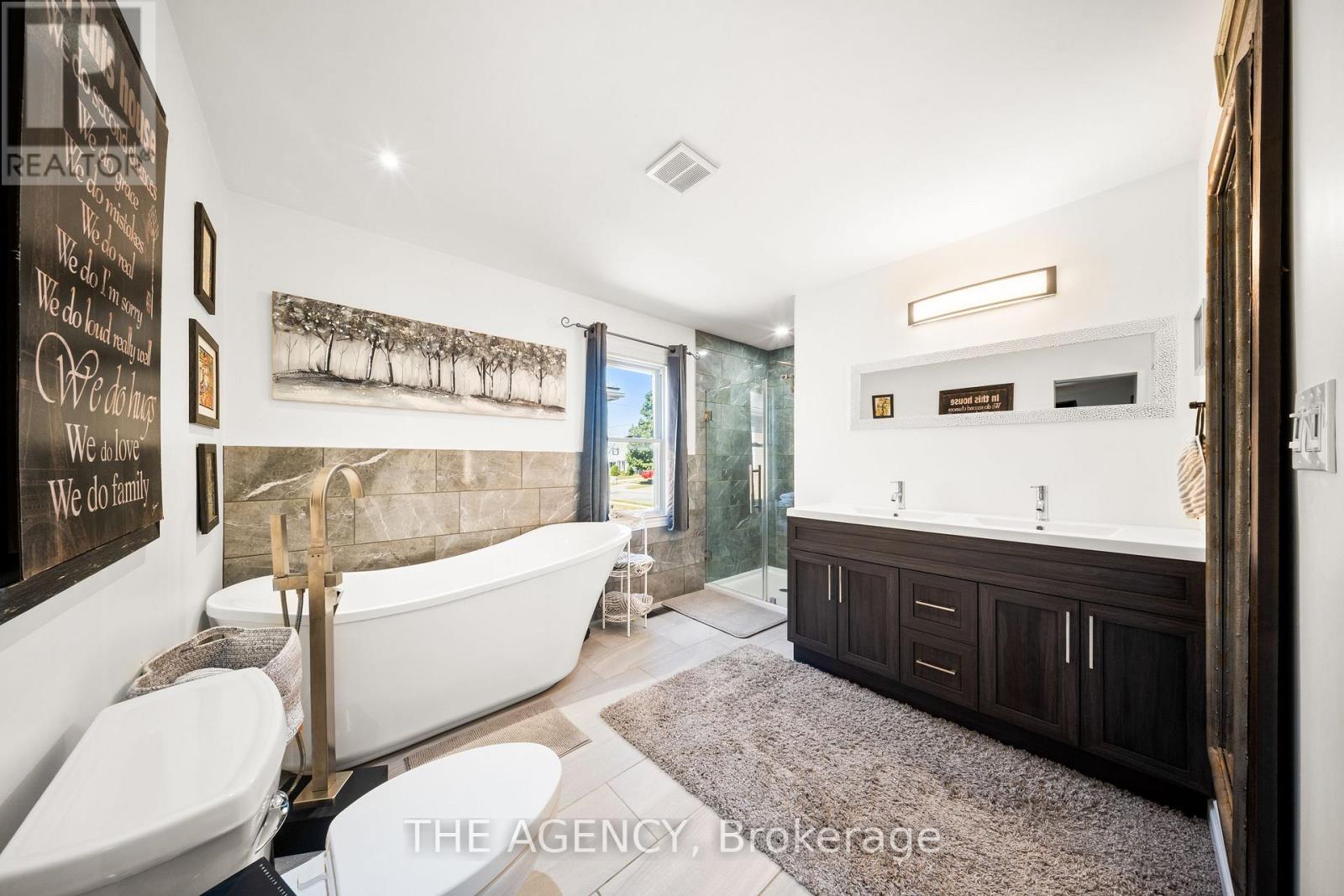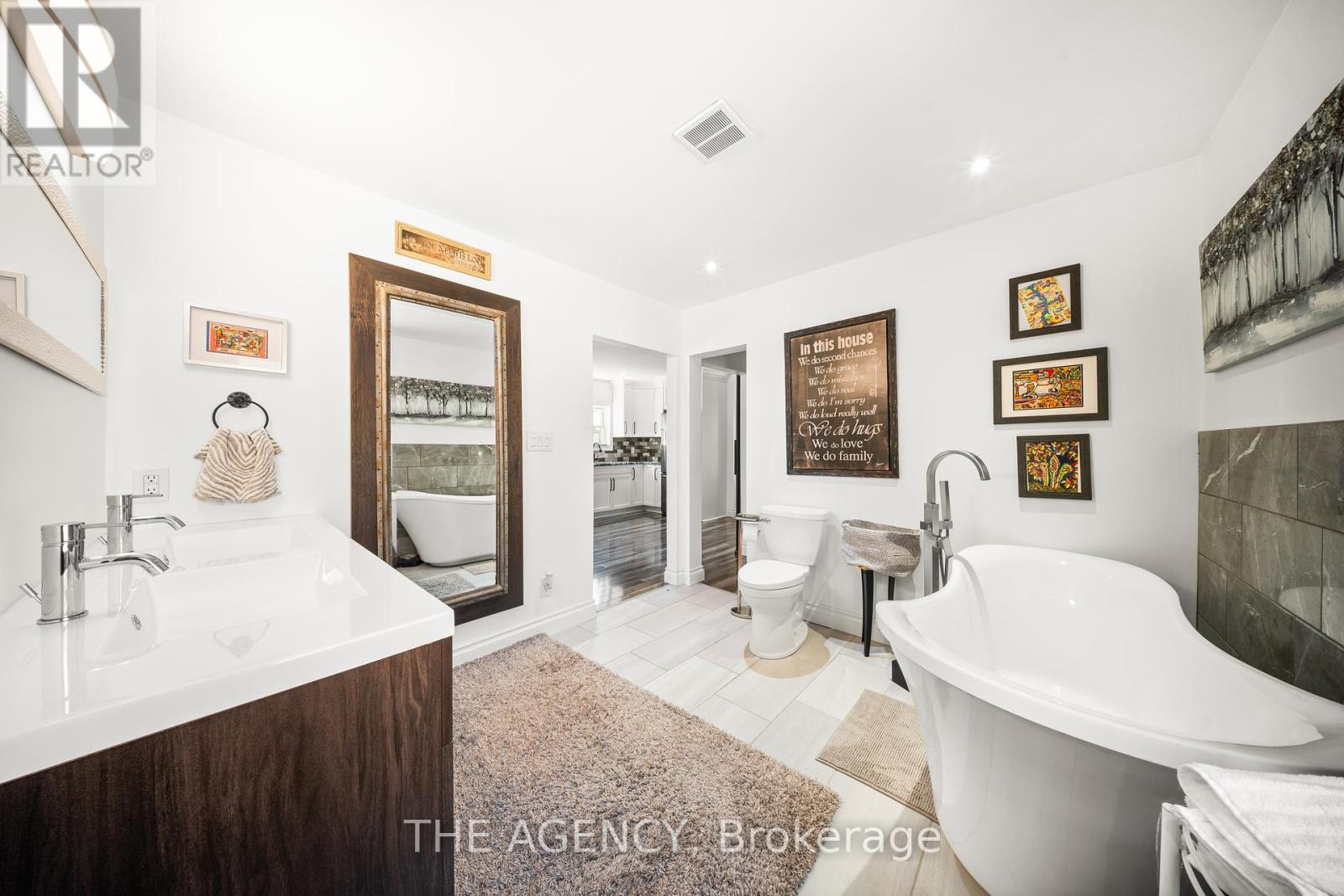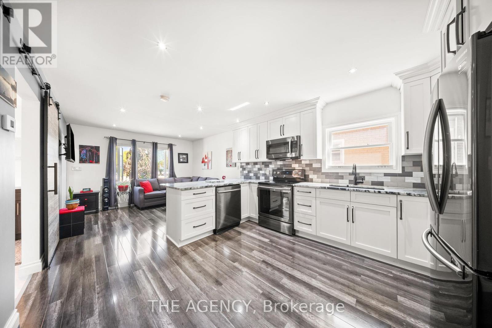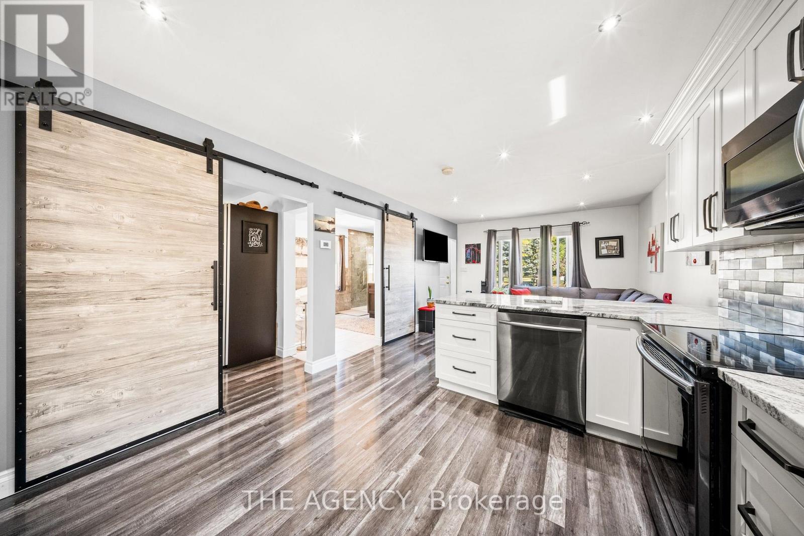 Welcome to this stunning, fully renovated bungalow in Kitchener's highly sought-after Northward neighborhood. This home has been thoughtfully updated from top to bottom. The bright, open-concept main floor features a brand-new white kitchen with granite countertops, chrome appliances, pot lights, complete with a barn door that adds a touch of farmhouse charm. The spacious main bathroom offers a luxurious retreat, complete with a freestanding tub, glass shower, and double vanity. The primary bedroom includes ensuite privilege, providing added comfort and convenience. Extensive renovations completed in the last seven years include a new kitchen, bathroom, updated wiring and plumbing, and spray foam insulation. The roof and windows were also replaced within the last eight years. A detached single-car garage with an attached workshop offers plenty of space for parking, storage, or hobbies. The basement includes potential for a second bedroom, adding flexibility for growing families or guests. Ideally located close to hospitals, schools, parks, Uptown Waterloo, and Downtown Kitchener, this move-in-ready home offers modern living in one of the city's most desirable neighborhoods. (id:51158)