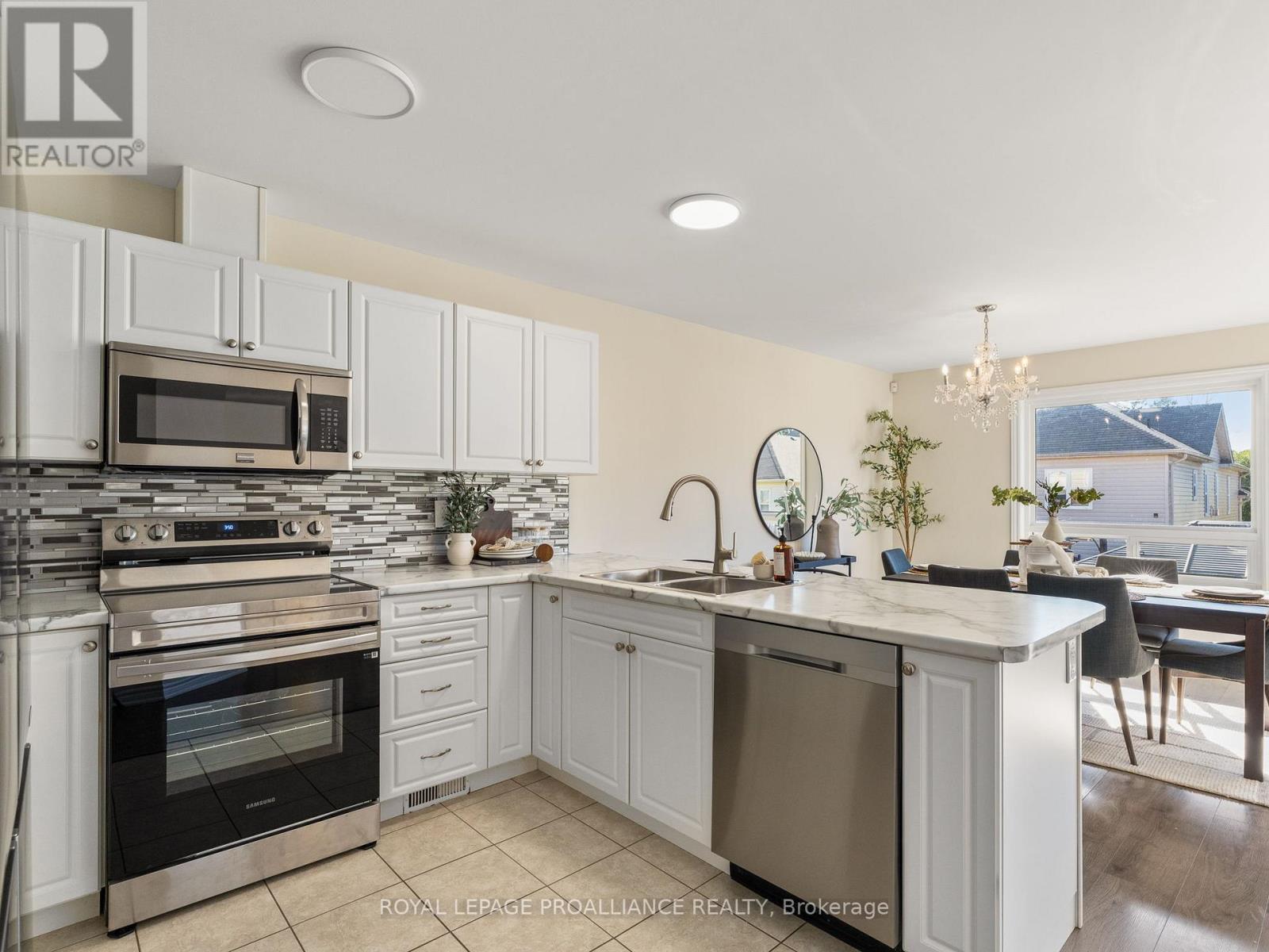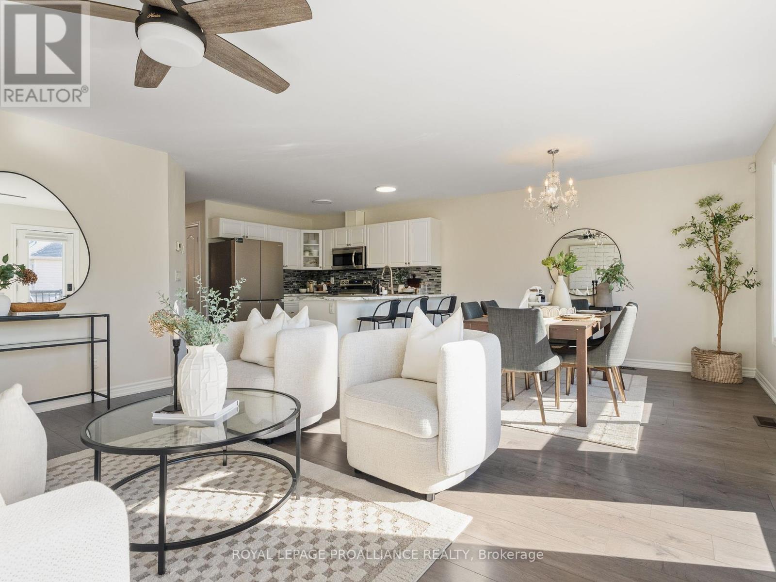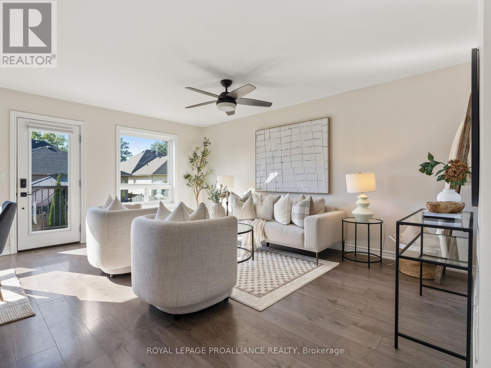 Welcome to 291 Rollings Street. Built in 2016, this 922 sq. ft. semi-detached raised bungalow combines comfort, convenience, and versatility in a sought-after neighbourhood close to schools, parks, and just a short bike ride to Downtown Cobourg and the beach. The main floor features a primary bedroom with walk-in closet and 1 bathroom, along with a bright open-concept living space finished with vinyl plank flooring and tile in the kitchen, bathroom, and entryway. A covered front porch is the perfect spot for morning coffee, while the back deck with gazebo extends your living outdoors. The fully finished lower level expands the home with a second bedroom and bathroom, plus a small kitchenette -- ideal for an in-law suite, guests, or multi-generational living. The attached garage offers convenient direct entry and custom-built storage with a built-in ladder system for easy access. This thoughtfully designed and well-kept bungalow is an excellent option for starting out, downsizing, or anyone seeking a flexible layout in a welcoming community. **Recent updates (Sept 2025): Freshly painted, new carpets on stairs, brand new fridge & stove, garage walls freshly painted & floors epoxied** (id:51158)