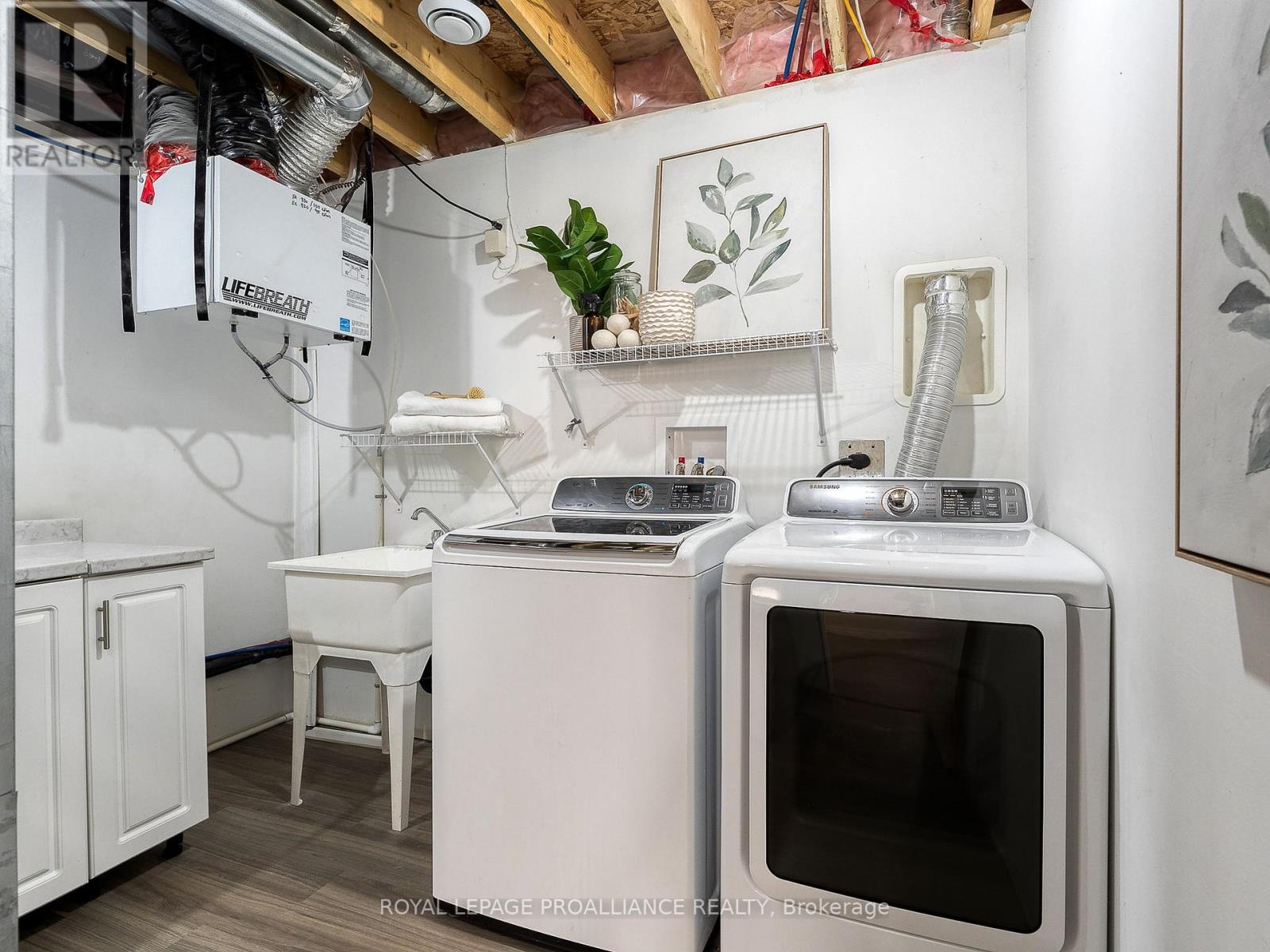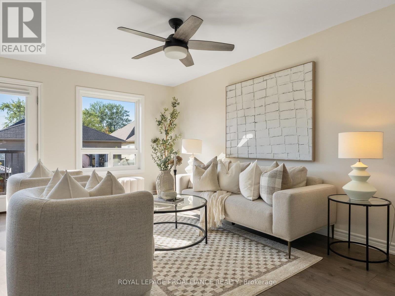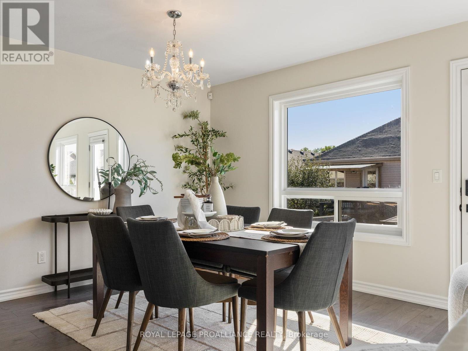 Welcome to 291 Rollings Street. Built in 2016, this 922 sq. ft. semi-detached raised bungalow combines comfort, convenience, and versatility in a sought-after neighbourhood close to schools, parks, and just a short bike ride to Downtown Cobourg and the beach. The main floor features a primary bedroom with walk-in closet and 1 bathroom, along with a bright open-concept living space finished with vinyl plank flooring and tile in the kitchen, bathroom, and entryway. A covered front porch is the perfect spot for morning coffee, while the back deck with gazebo extends your living outdoors. The fully finished lower level expands the home with a second bedroom and bathroom, plus a small kitchenette -- ideal for an in-law suite, guests, or multi-generational living. The attached garage offers convenient direct entry and custom-built storage with a built-in ladder system for easy access. This thoughtfully designed and well-kept bungalow is an excellent option for starting out, downsizing, or anyone seeking a flexible layout in a welcoming community. **Recent updates (Sept 2025): Freshly painted, new carpets on stairs, brand new fridge & stove, garage walls freshly painted & floors epoxied** (id:51158)