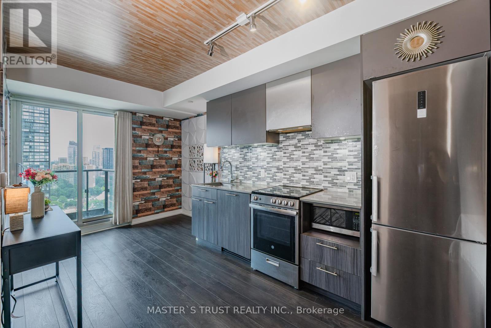 Welcome to Bright,only 3 yrs old, 1+Den unit with north-facing views and an enclosed balcony, perfect for enjoying your morning coffee or evening unwind! This beautifully unit features large 9ft.floor-to-ceiling windows that flood the space with natural light. The functional layout offers a bright living space with a versatile den ideal for a home office, study nook, or creative space. The sleek, open-concept kitchen is equipped with quartz countertops, stainless steel appliances. Located in the heart of Torontos vibrant downtown core, you're just steps from the Eaton Centre, Toronto Metropolitan University (formerly Ryerson), TTC/subway access, restaurants, and the Financial District. The building offers top-notch amenities, including a massive 16,000 sq ft rooftop terrace, a state-of-the-art gym, outdoor pool,party room, large shared office, Wifi Covered All Common Areas, etc. Don't miss this exceptional opportunity to live in a modern, move-in ready condo with walkability and lifestyle at your doorstep! ** 1 Locker included ** Ideal for both first-time buyers and those looking to invest in one of the city's most exciting neighbourhoods! (id:51158)