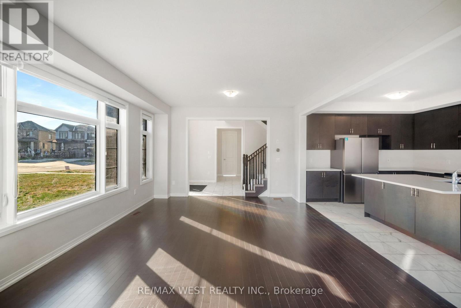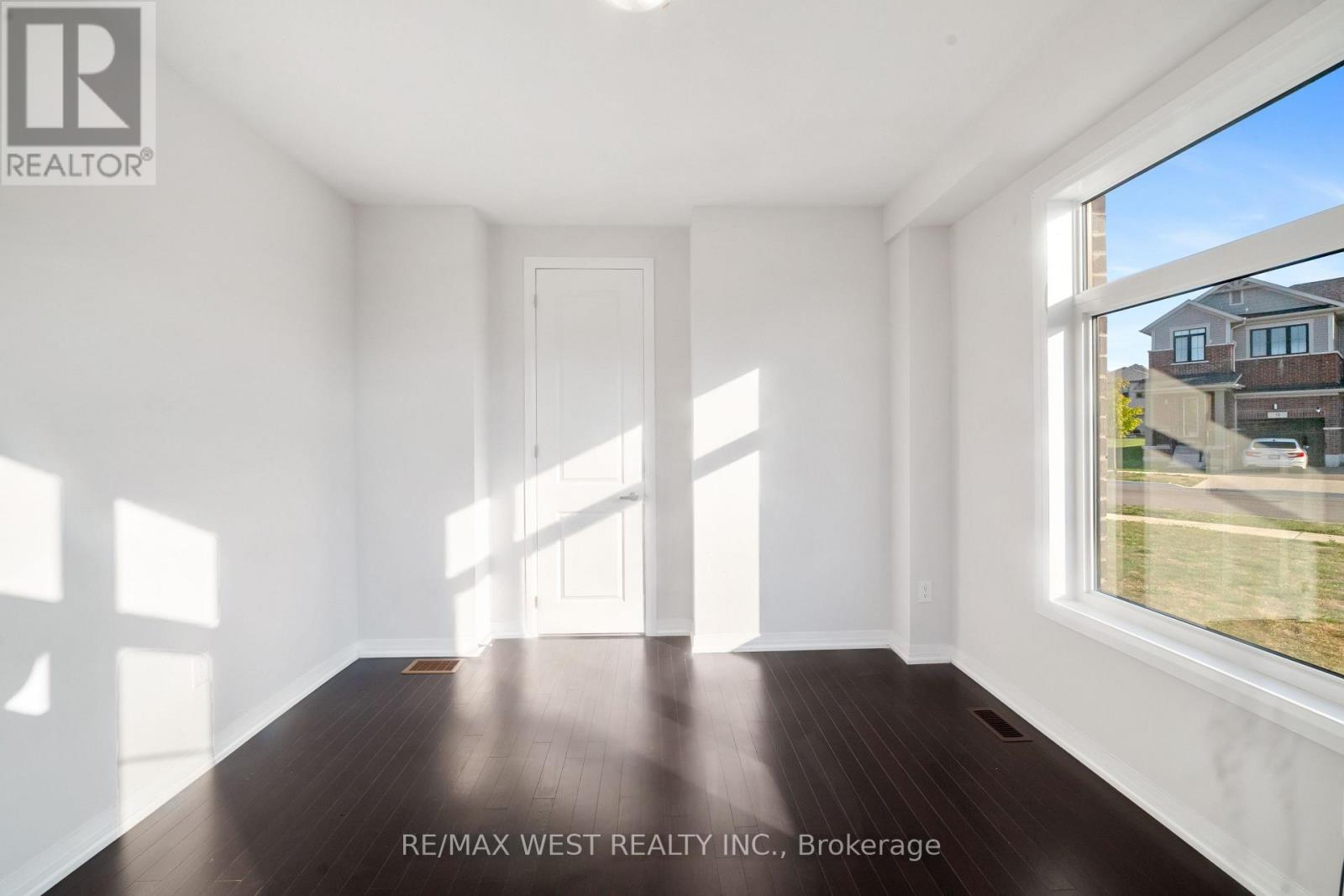 Set on one of the largest corner lots in the neighbourhood, this 4-bedroom, 3.5-bath detached home offers exceptional space and future value in a growing Cambridge community. The layout includes a family-sized eat-in kitchen with walkout to the backyard, defined living and dining areas, and a partially finished basement ideal for additional living space or a home office. The upper level features four generously sized bedrooms, including a primary suite with ensuite bath and walk-in closet. Positioned just steps from Bismark Park with a splash pad, playground, and sports courts. This home is well-suited for families, especially those with young children. The lot sits across from the future Westwood lake project, offering potential water views once complete. A new school and retail plaza are also planned nearby, adding long-term convenience and community appeal. With driveway parking, direct garage access, and excellent access to schools, shopping, and commuter routes, this property offers both space and smart positioning in a family-oriented setting. (id:51158)