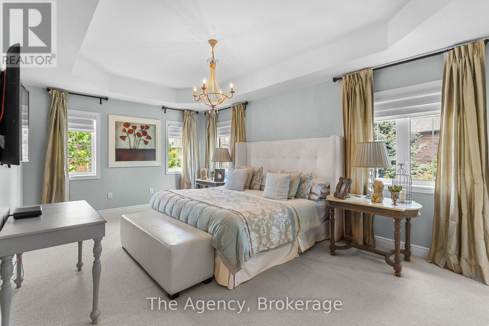 Introducing the Rosehaven Cantley model an exceptional four-bedroom, three-bathroom residence that exemplifies luxurious living, set on a premium corner lot in the prestigious Lakeshore Woods community of southwest Oakville. With an elegant stone and brick exterior, enhanced by additional side windows that flood the interior with natural light, this home offers unmatched curb appeal and sophistication. Nestled in one of Oakville's most coveted lakeside neighbourhoods, this family-friendly enclave is just steps from the lake, scenic parks, wooded trails, a dog park, tennis and pickleball courts, splash pads, and sports fields. Enjoy endless outdoor adventures, with miles of walking and biking trails connecting to Nautical and Shell Parks, local beaches, and the vibrant waterfront charm of Bronte Village, with its yacht club, boutique shops, cafes, and fine dining. Inside, this meticulously designed home blends elegance and comfort. The chefs kitchen is a true centre piece, featuring premium commercial-grade appliances, an oversized centre island, crown molding, pot lights, and rich hardwood flooring. The adjoining family room and kitchen offer views of the professionally landscaped backyard complete with custom iron gates, clay street pavers, an in-ground sprinkler system, and integrated outdoor speakers perfect for entertaining or relaxing in your private oasis. Thoughtful upgrades are found throughout, including crown molding, custom wainscoting, a fully integrated security system with cameras, and custom California Closets built-ins. Designer window coverings from Hunter Douglas and Housewarmings add refined style and functionality. The main floor mudroom is both practical and elegant, with custom cabinetry, drying racks, and convenient garage access. A rare opportunity to own an exquisite home that seamlessly blends luxury, lifestyle, and location in one of Oakville's most desirable communities. (id:51158)