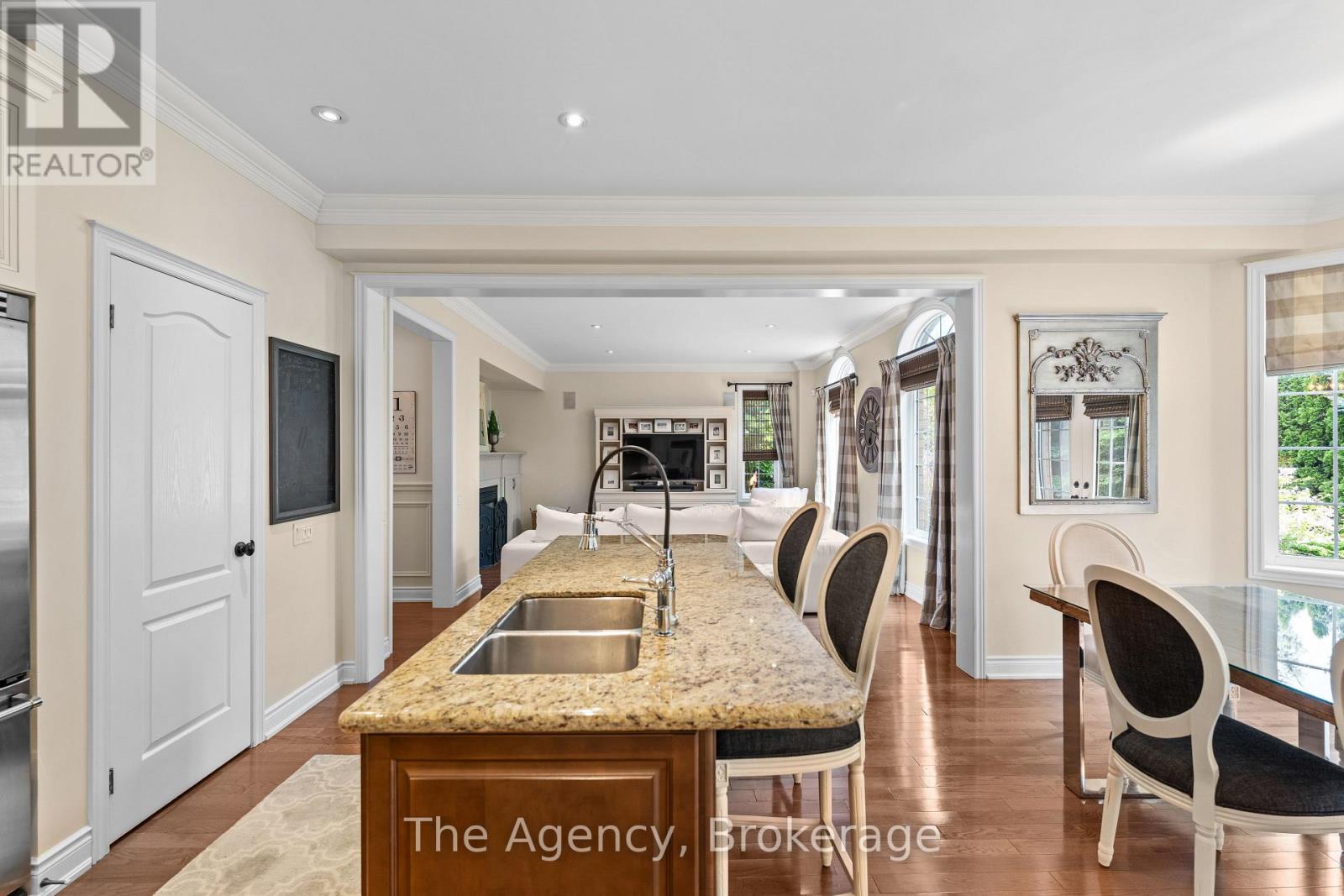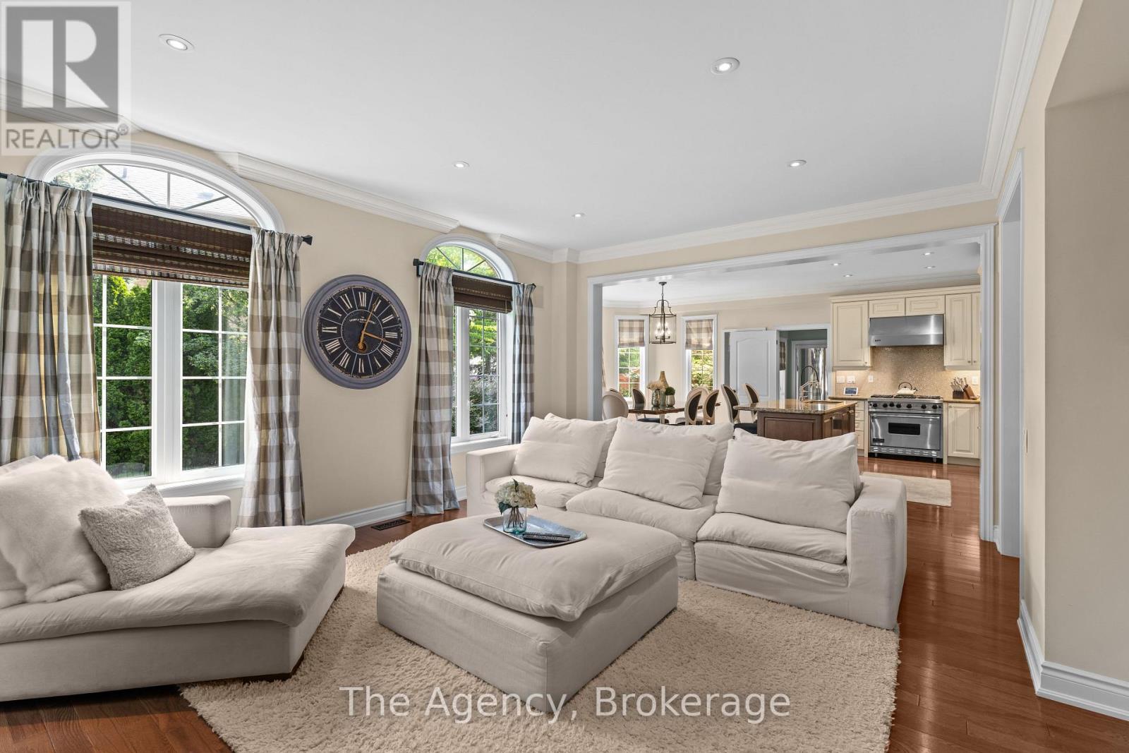 Introducing the Rosehaven Cantley model, an exceptional four-bedroom, three-bathroom residence that exemplifies luxurious living, set on a premium corner lot in the prestigious Lakeshore Woods community of southwest Oakville. With an elegant stone and brick exterior, enhanced by additional side windows that flood the interior with natural light, this home offers unmatched curb appeal and sophistication. Inside, this meticulously designed home blends elegance and comfort. The chef's kitchen is a true centerpiece, featuring premium commercial-grade appliances, an oversized center island, crown molding, pot lights, and rich hardwood flooring. The adjoining family room and kitchen offer views of the professionally landscaped backyard complete with custom iron gates, clay street pavers, an in-ground sprinkler system, and integrated outdoor speakers perfect for entertaining or relaxing in your private oasis. Thoughtful upgrades are found throughout, including crown molding, custom wainscoting, a fully integrated security system with cameras, and custom California Closets built-ins. Designer window coverings from Hunter Douglas and Housewarmings add refined style and functionality. The main floor mudroom is both practical and elegant, with custom cabinetry, drying racks, and convenient garage access. Nestled in one of Oakville's most coveted lakeside neighborhoods, this family-friendly enclave is just steps from the lake, scenic parks, wooded trails, a dog park, tennis and pickleball courts, splash pads, and sports fields. Enjoy endless outdoor adventures, with miles of walking and biking trails connecting to Nautical and Shell Parks, local beaches, and the vibrant waterfront charm of Bronte Village, with its yacht club, boutique shops, cafes, and fine dining. A rare opportunity to own an exquisite home that seamlessly blends luxury, lifestyle, and location in one of Oakville's most desirable communities. (id:51158)