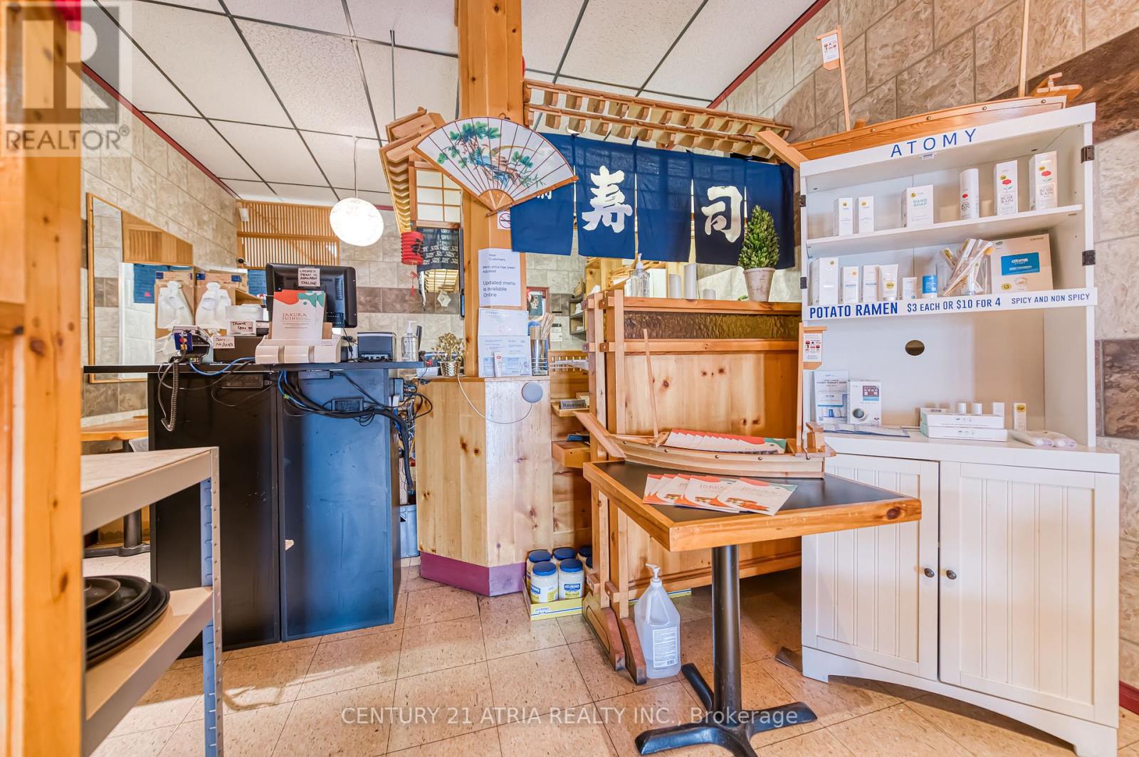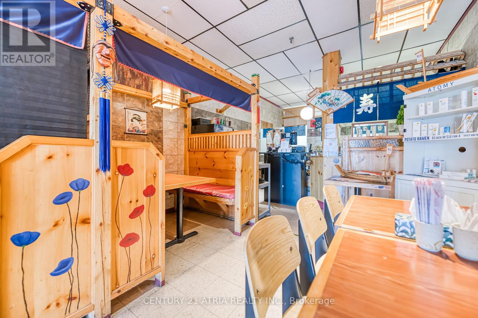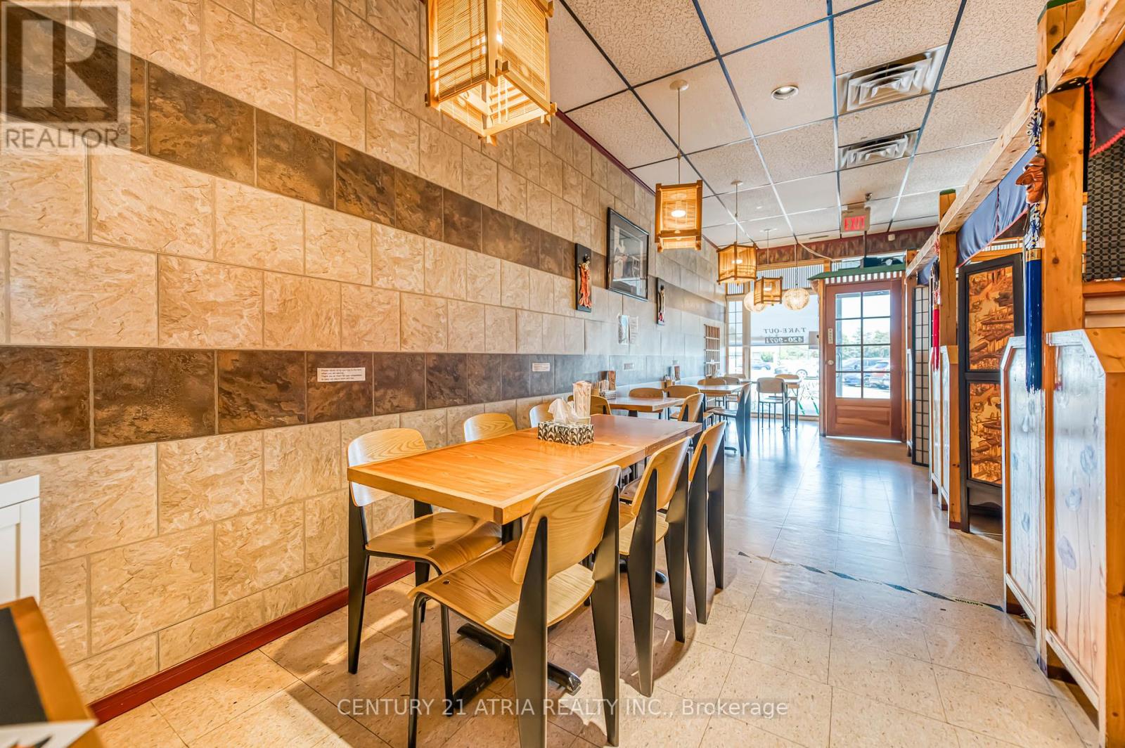 Established Japanese Restaurant for Sale in Pickering. Same owner for over 19 years now planning for retirement. This is your opportunity to take over a well-established and much-loved Japanese restaurant with a strong base of loyal customers. Fully equipped kitchen and easy-to-manage operations. Owner willing to assist with transition and training. Ample plaza parking for customers. Located directly across from a major 55-acre mixed-use development by CentreCourt (condos, retail, shops, and more) - excellent future growth potential. Dont miss out on this rare chance to own a turnkey restaurant in a high-traffic, high-potential location. (id:51158)