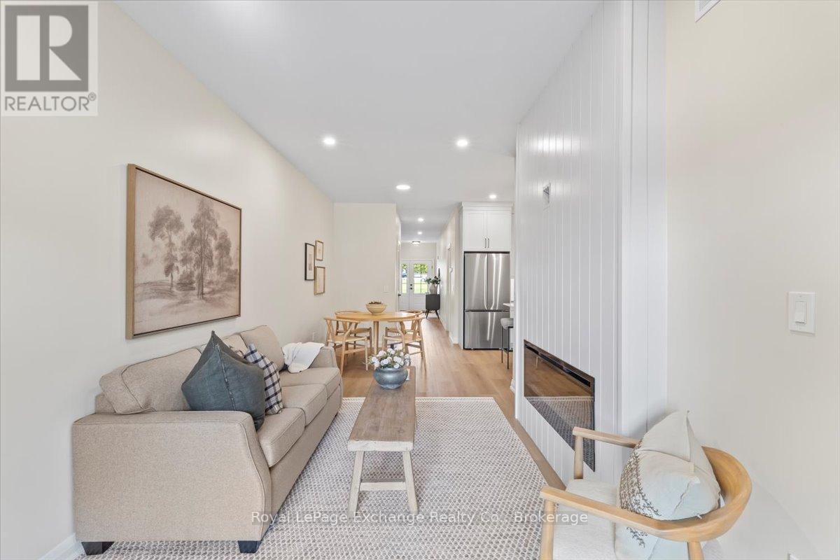 You've just found Paisleys best kept secret - The Paisley Pines! These newly built freehold bungalow townhomes showcase premium craftsmanship inside and out, ideal for first-time buyers, retirees, or anyone seeking a brand-new home at an exceptional price. Nestled on the edge of Paisley and backing onto serene forest views, this location is ideal being steps from the Saugeen River, local park, downtown shops and only a short drive to the beach town of Port Elgin. The exterior boasts a freshly paved driveway, single-car garage, and three covered porches perfect for those who like to sit and enjoy the outdoors. Inside, the main level offers everything you need; a laundry/mudroom, guest bath, stylish kitchen with quartz countertops and included appliances, a bright living and dining area with a shiplap fireplace, and a spacious primary bedroom complete with walk-in closet and a stunning ensuite. The walk-out lower level is a rare find, flooded with natural light, and features two additional bedrooms, a third bathroom, and a mechanical/storage room. This home truly is the complete package. Forest views, luxury finishes, 7-year warranty, walking distance to everything, what more could you want? Come and see for yourself! (id:51158)