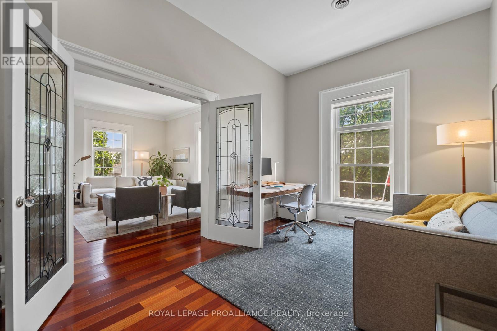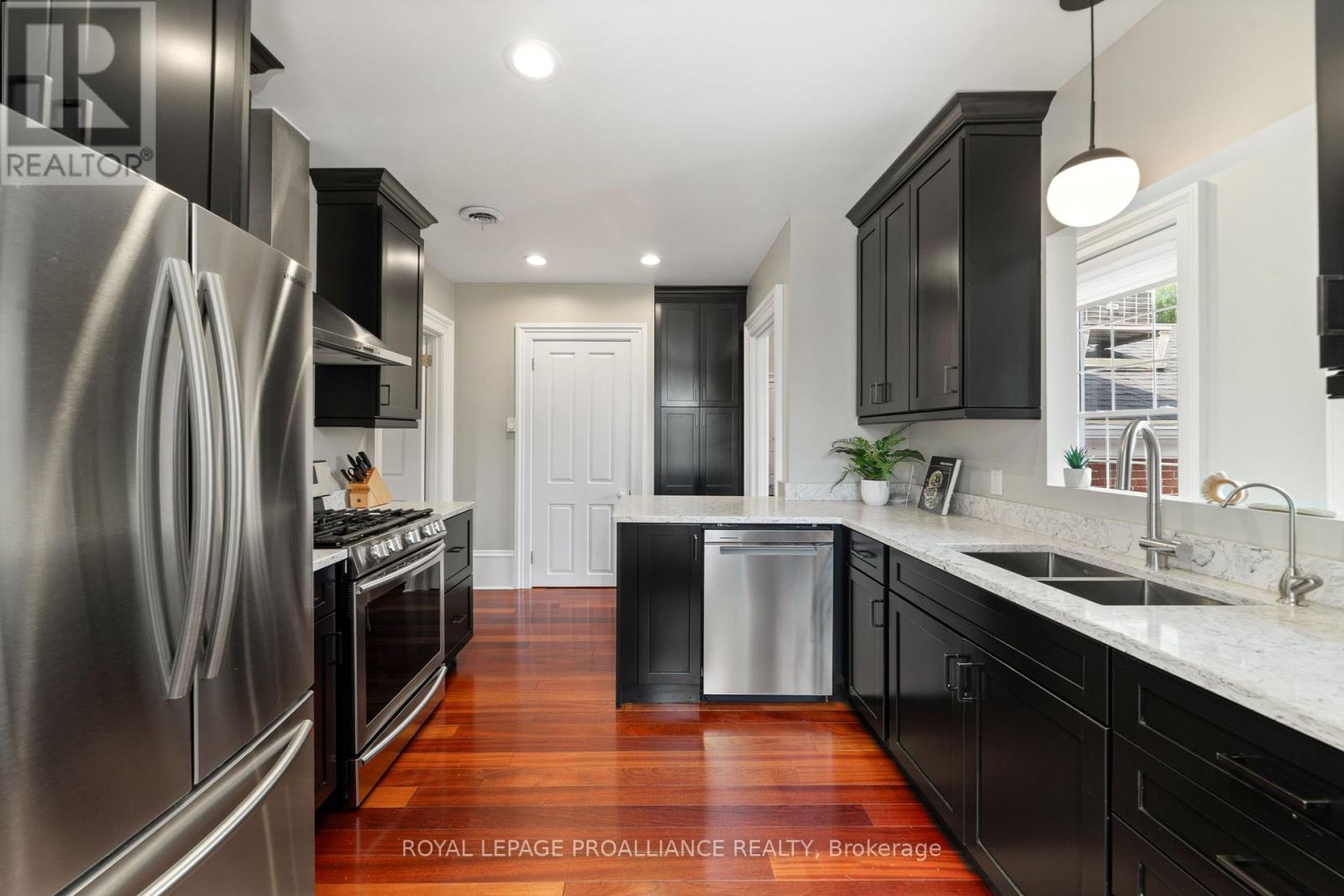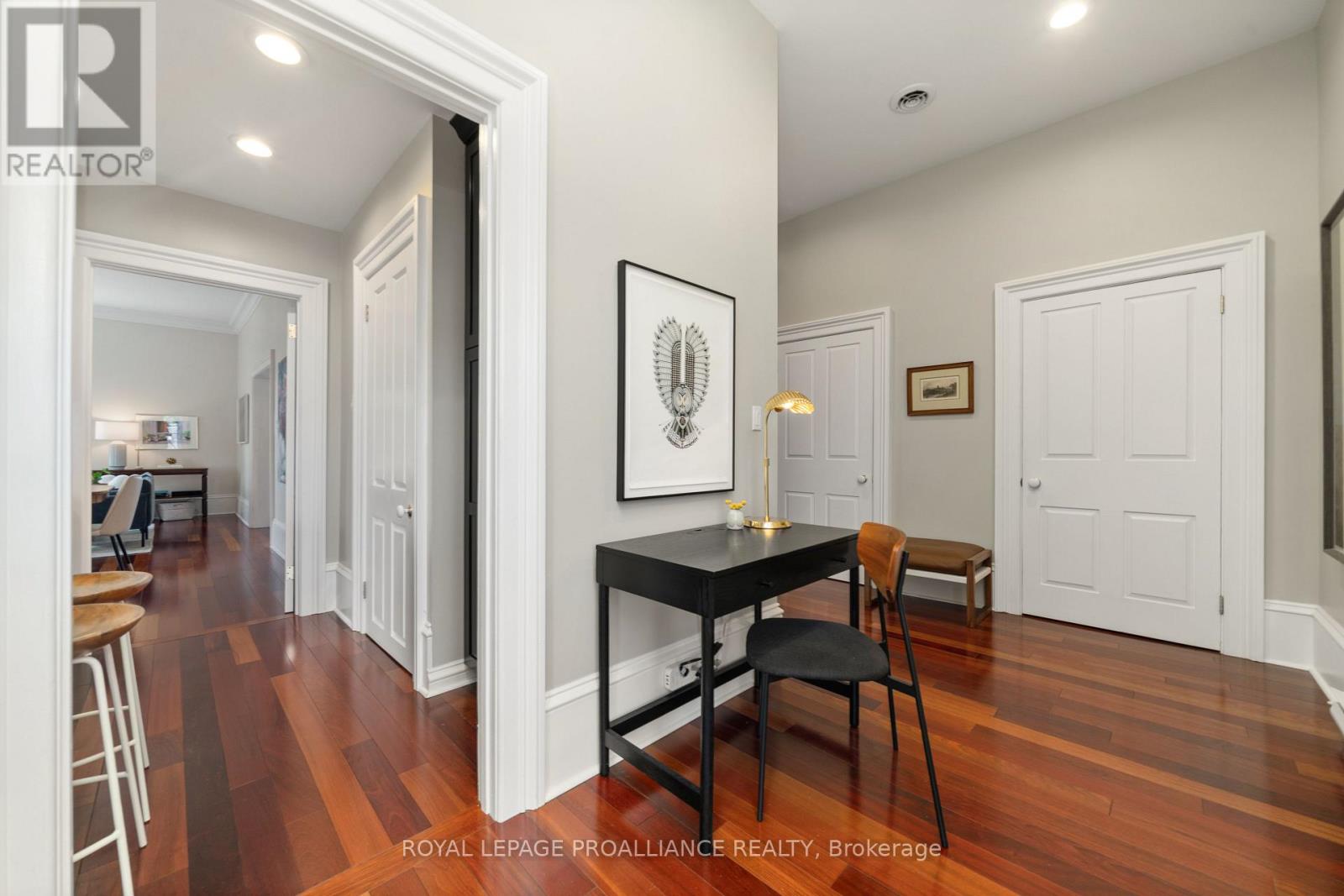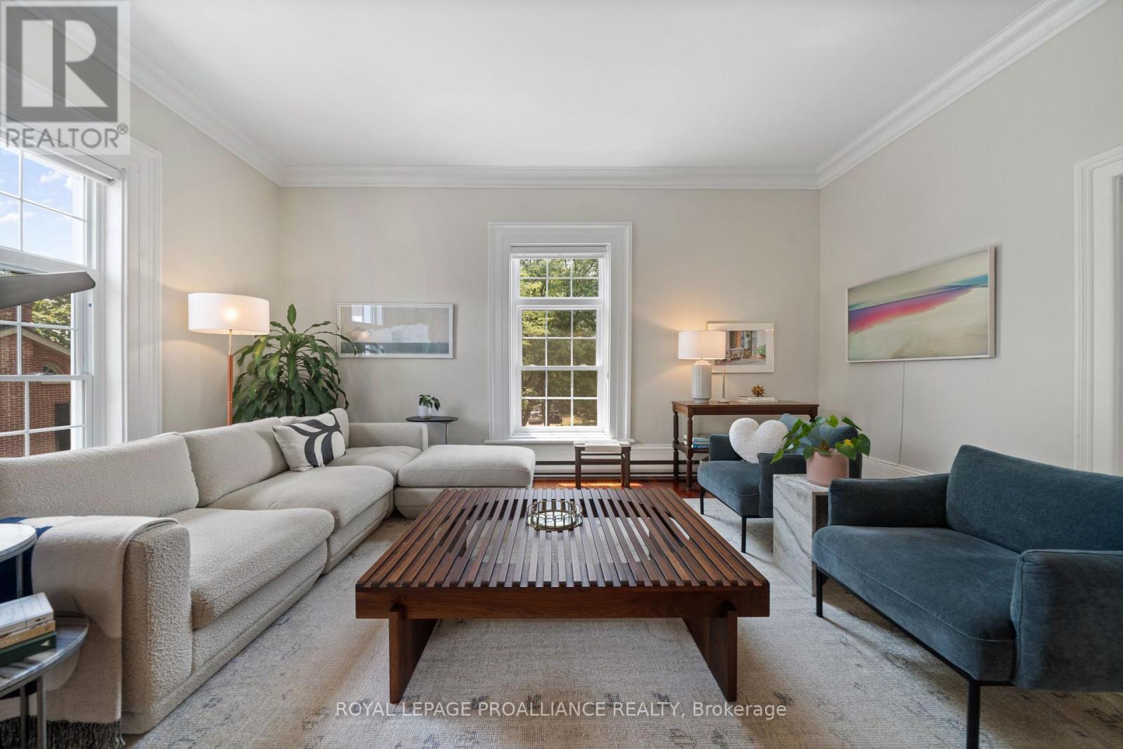 $108.20 MonthlyWelcome to Faulkenbridge Estate - a luxury enclave of five condo units nestled in the heart of the desirable Old East Hill historic neighbourhood. Live away from the bustle of the city, within walking distance of the farmers market, downtown, and scenic waterfront trails - yet only a five-minute drive to the VIA Rail station, offering effortless connections to Toronto, Montreal, and Ottawa for work or play. Just across the Bay Bridge lies Prince Edward County (hailed by Vogue as Canada's Hudson Valley), home to incredible farm-to-table restaurants, award-winning wineries, and beaches that rival the Caribbean. Your lazy Saturday begins with coffee on your private deck - affectionately known as the Adult Treehouse - before wandering down to the vibrant farmers market and grabbing a second coffee from a local caf. You stroll home along the pristine waterfront trail hugging the Bay of Quinte, then hop in the car to meet friends for lunch at one of Prince Edward County's renowned restaurants. The day winds down with ice cream and a sunset walk along Sandbanks Beach, before you return to your exclusive condo and pour a glass of wine picked up from a favourite winery on your way home. Live in the Penthouse - the crown jewel of this historic home - where soaring ceilings, elegant crown moulding, and cozy gas fireplaces blend seamlessly with the clean lines and conveniences of modern design. Immaculately maintained and featuring over $40K in upgrades over the past four years, this is the lifestyle you've been dreaming of - with everything you love within reach. (id:51158)
