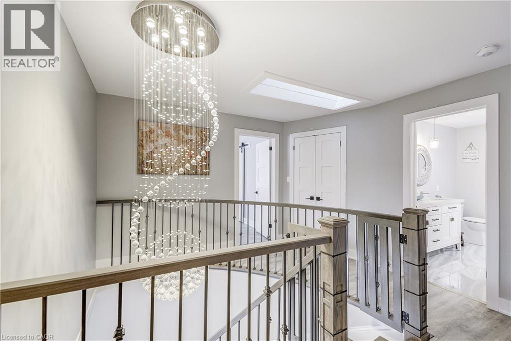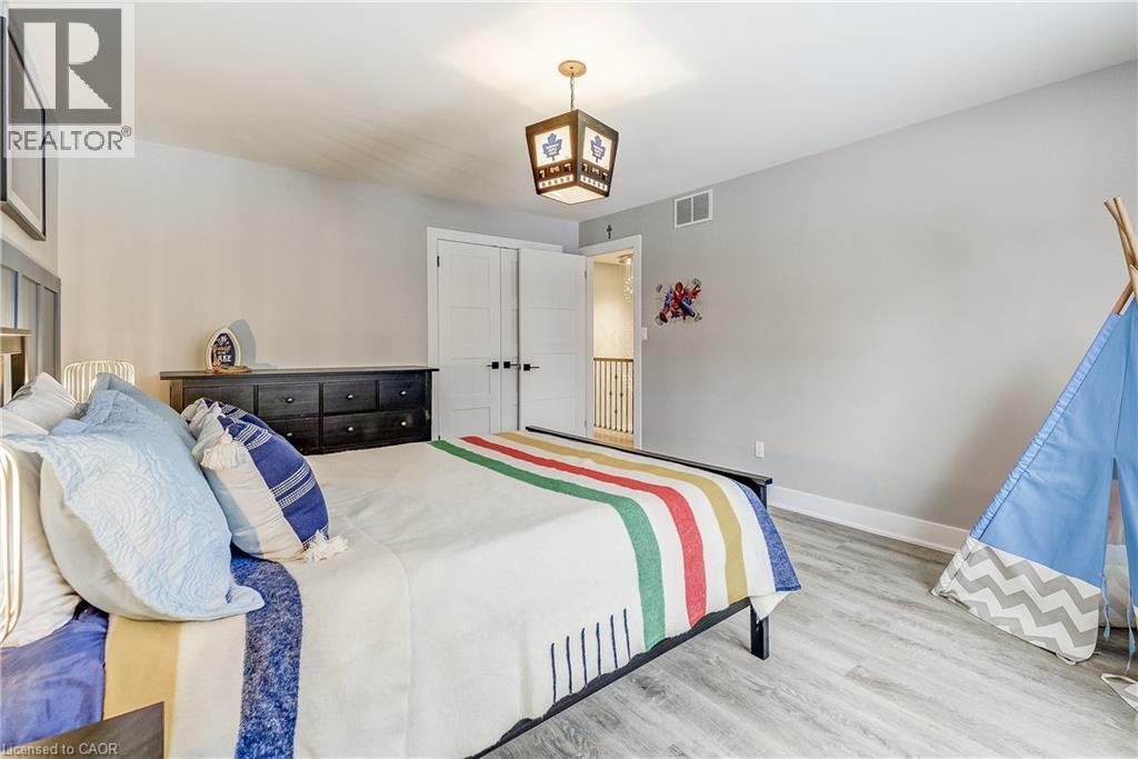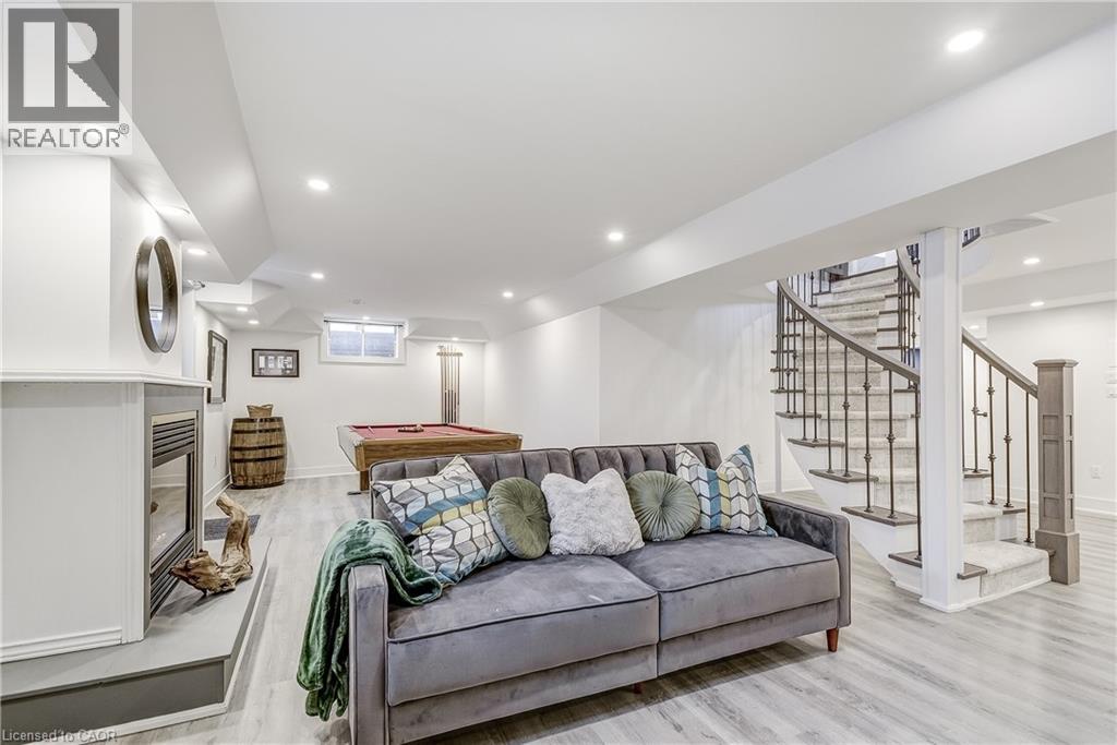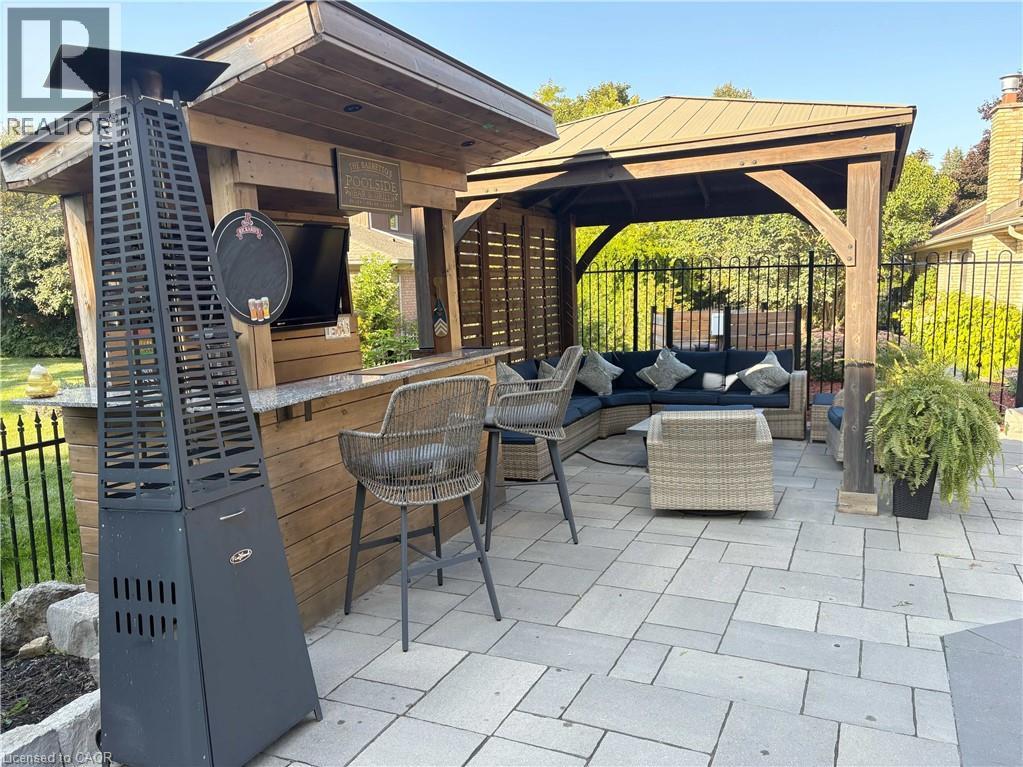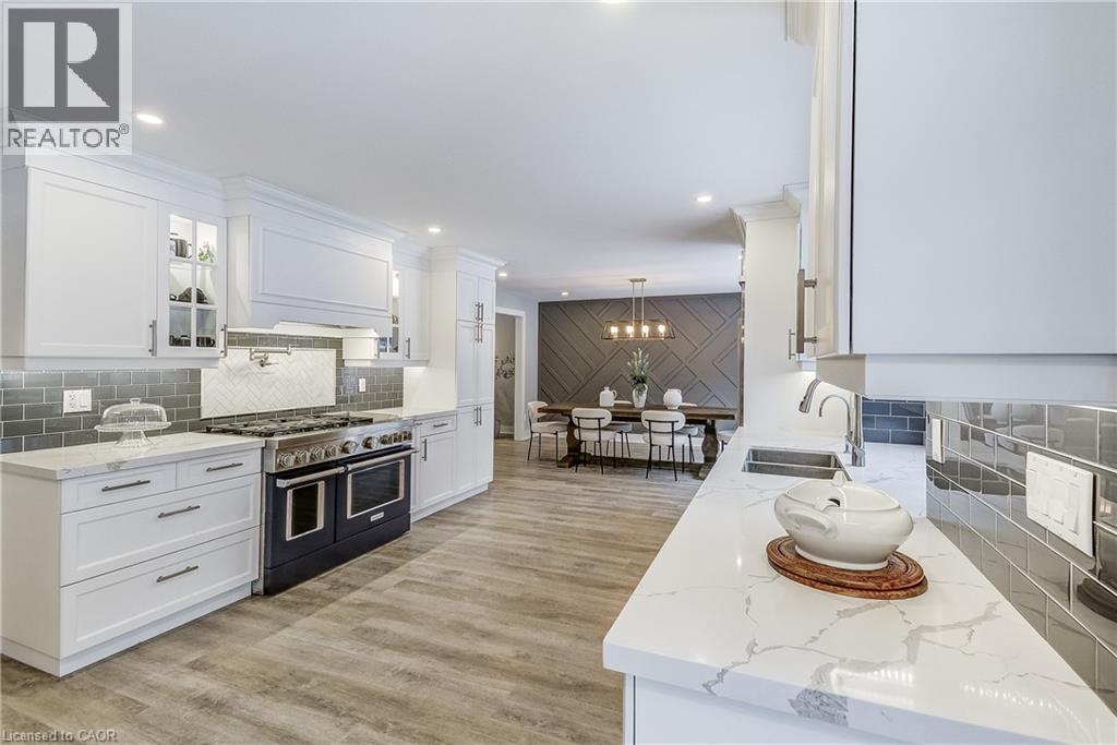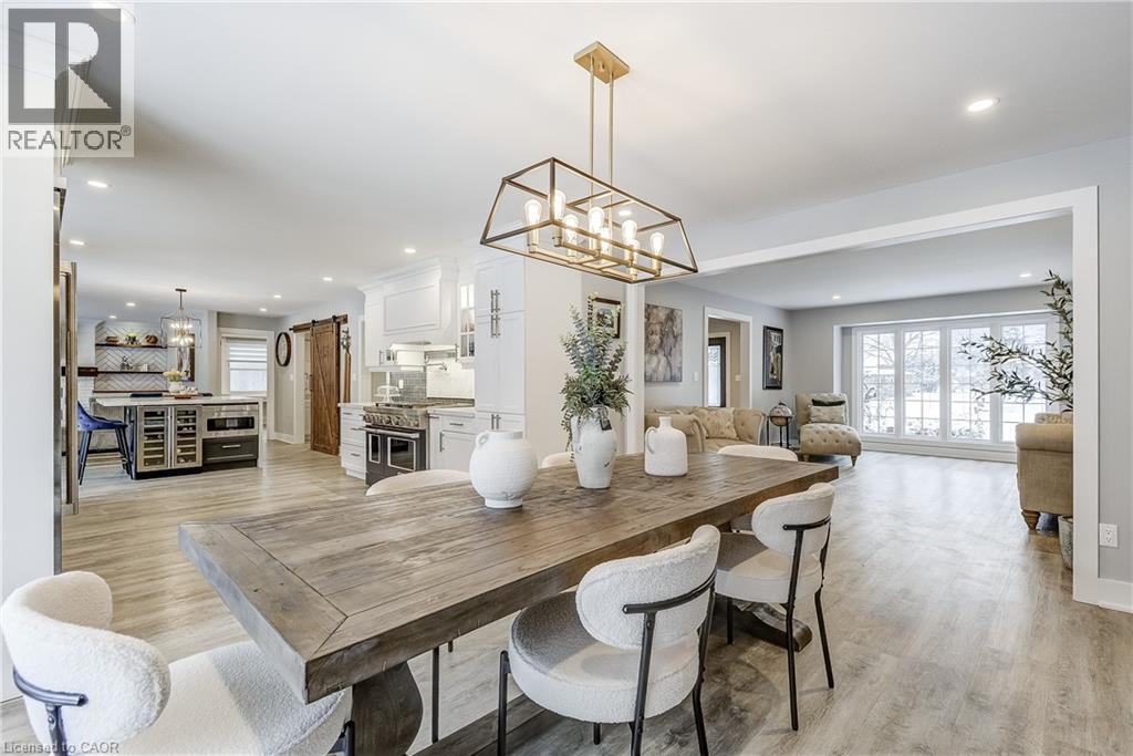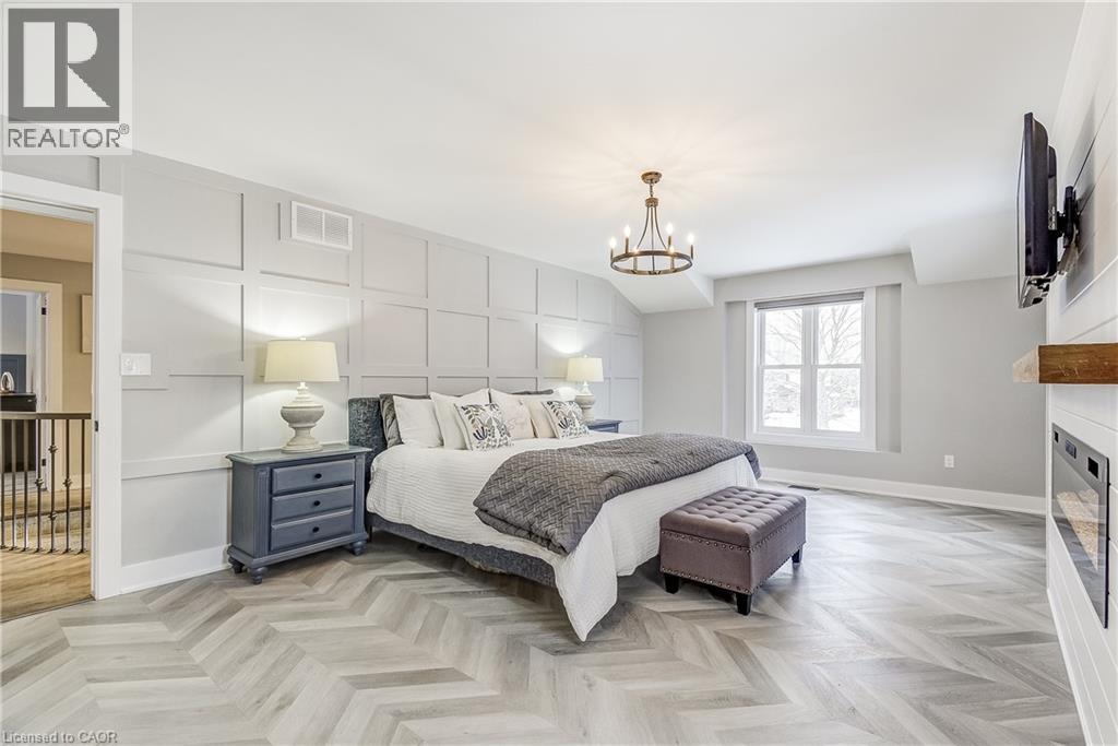Beautifully renovated 3,145 sq. ft. family home nestled on a quiet court in the highly desirable community of Carlisle, situated on a peaceful half-acre lot. Bright, immaculate, and thoughtfully designed, this home offers an ideal layout for everyday living and entertaining. The main floor showcases a chef-inspired kitchen with quartz countertops, an expansive island, an oversized gas stove with electric oven, a full-size 48 refrigerator, and a built-in microwave, seamlessly open to the family room with a warm gas fireplace. Formal living and dining rooms, along with a private office, complete the main level. The upper level features four spacious bedrooms, highlighted by an impressive primary suite with a large walk-in closet, spa-style ensuite, and electric fireplace. The finished basement includes a separate entrance and excellent in-law potential, offering a generous rec room with gas fireplace, a fifth bedroom, full bathroom, sauna, utility room, and cold room. Step outside to a private backyard retreat featuring an on-ground pool and tiki bar, perfect for hosting and relaxing. Move-in ready, impeccably maintained, and privately set, this exceptional home presents a rare opportunity in one of Carlisle’s most sought-after locations. Welcome Home! (id:51158)