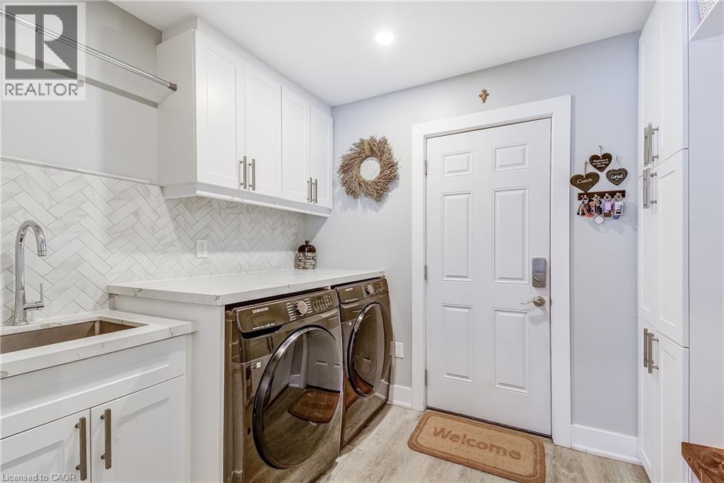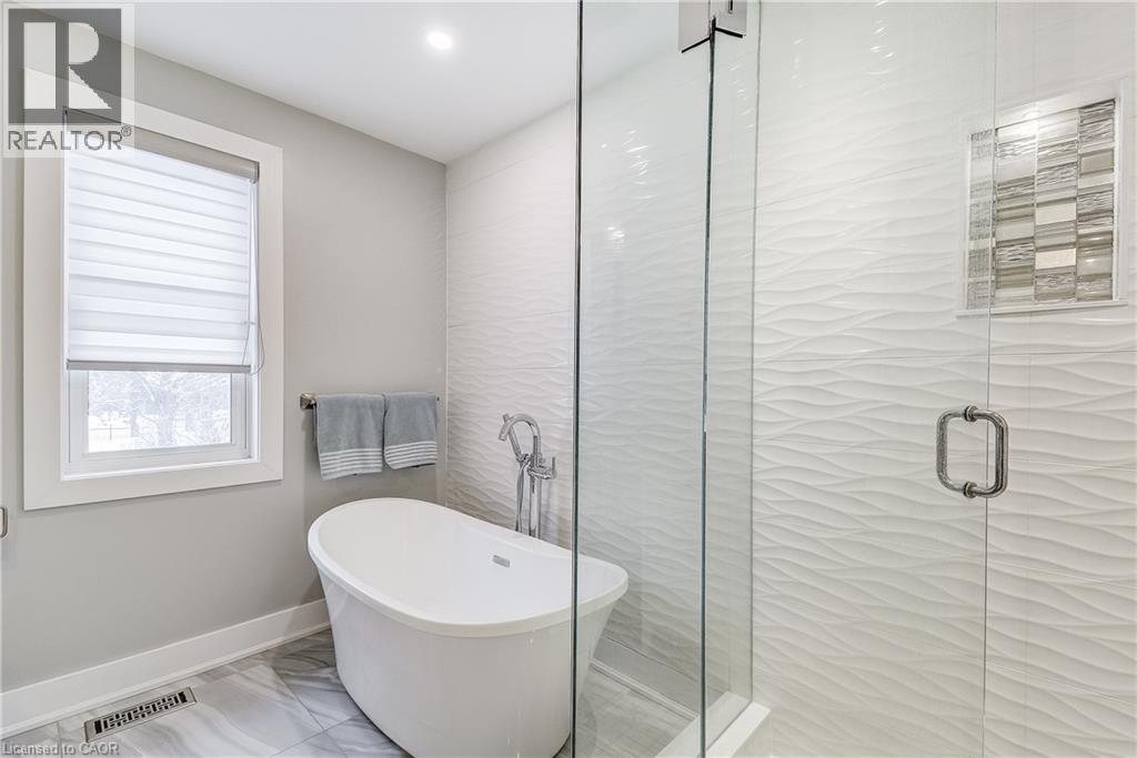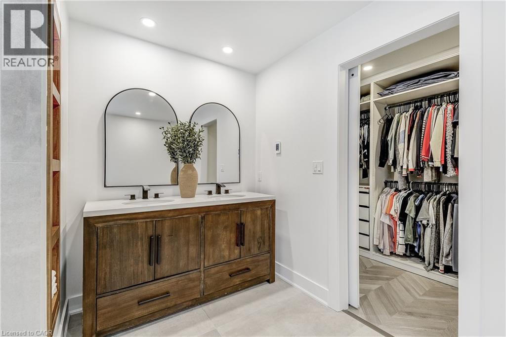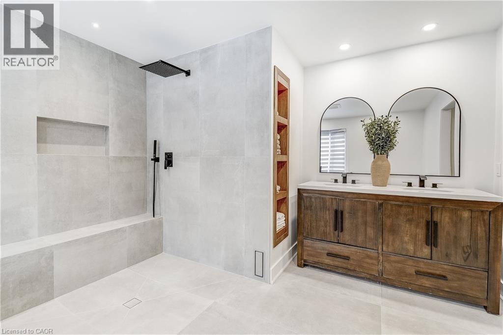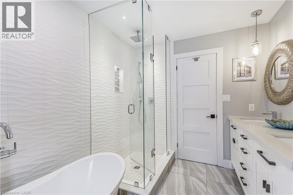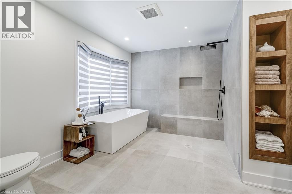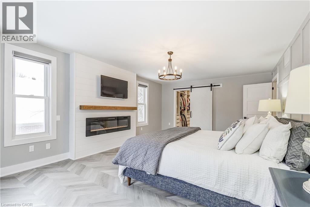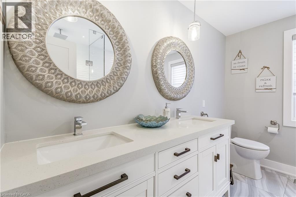 Beautifully renovated 3,145 sq. ft. family home nestled on a quiet court in the highly desirable community of Carlisle, situated on a peaceful half-acre lot. Bright, immaculate, and thoughtfully designed, this home offers an ideal layout for everyday living and entertaining. The main floor showcases a chef-inspired kitchen with quartz countertops, an expansive island, an oversized gas stove with electric oven, a full-size 48 refrigerator, and a built-in microwave, seamlessly open to the family room with a warm gas fireplace. Formal living and dining rooms, along with a private office, complete the main level. The upper level features four spacious bedrooms, highlighted by an impressive primary suite with a large walk-in closet, spa-style ensuite, and electric fireplace. The finished basement includes a separate entrance and excellent in-law potential, offering a generous rec room with gas fireplace, a fifth bedroom, full bathroom, sauna, utility room, and cold room. Step outside to a private backyard retreat featuring an on-ground pool and tiki bar, perfect for hosting and relaxing. Move-in ready, impeccably maintained, and privately set, this exceptional home presents a rare opportunity in one of Carlisle’s most sought-after locations. Welcome Home! (id:51158)