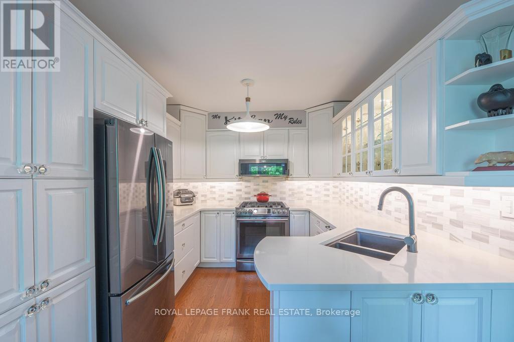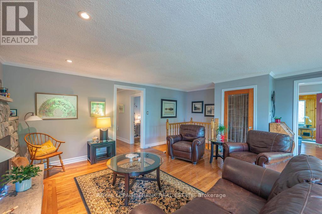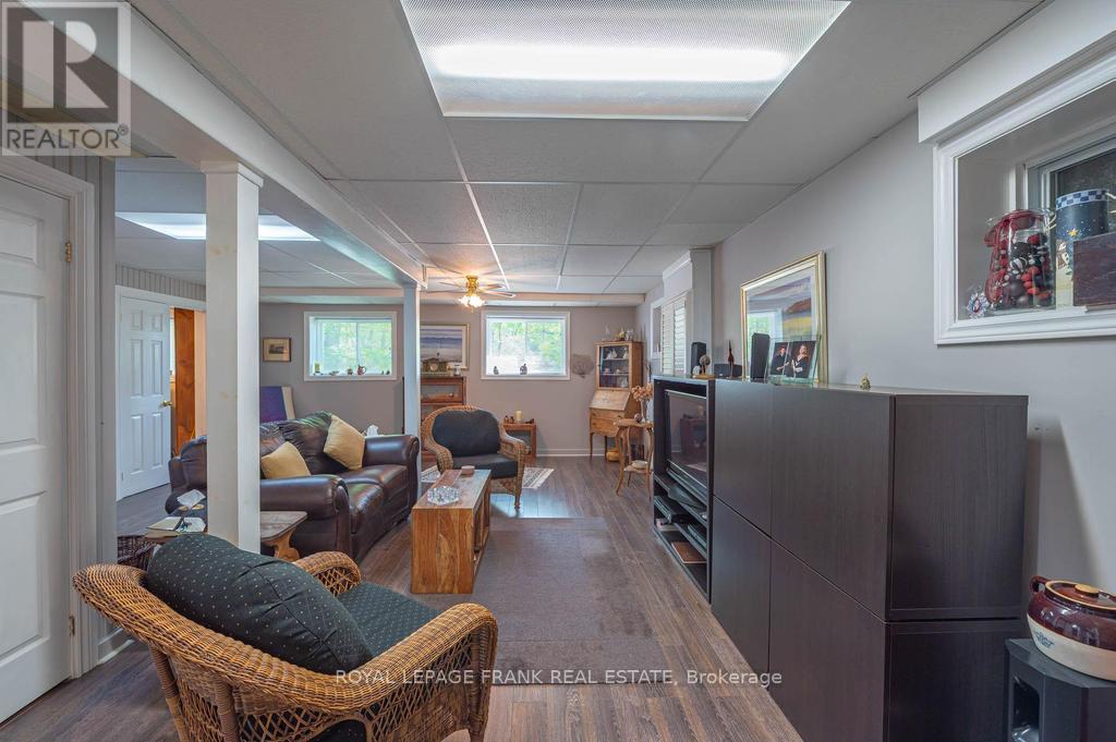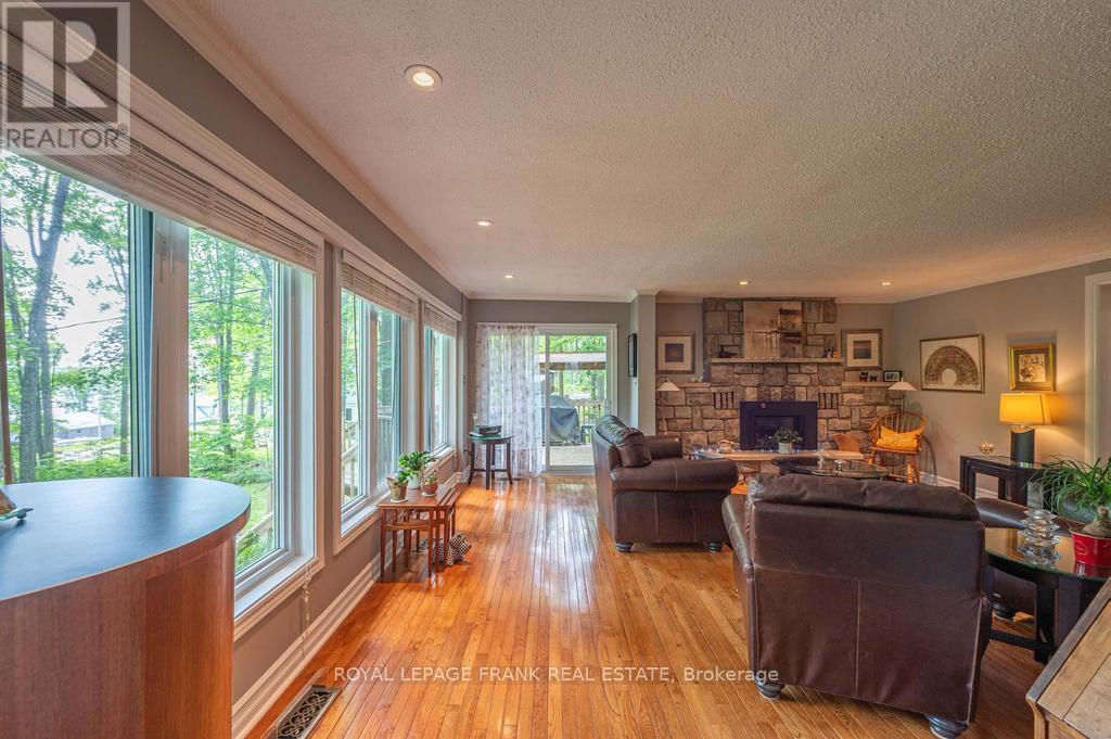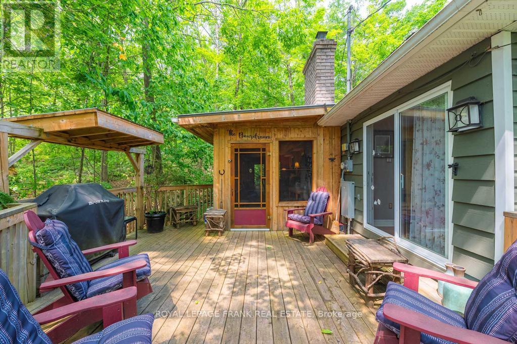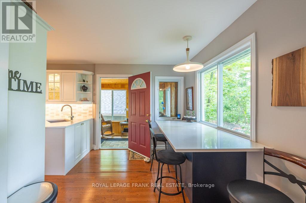 Deeded access to Buckhorn Lake. Renovated from top to bottom, this lovely home is located just 5 minutes from the town of Buckhorn. This little gem is located in a waterfront community and sits on a picturesque treed lot with obstructive lake views and sunrises. Featuring 3+1 bedrooms, 1.5 baths and a stunning functional kitchen with quartz counters, stainless appliances, and a large built in quartz table with storage beneath. Enjoy the spacious living area with an abundance of windows, hardwood floors, and a stone fireplace with propane insert. The lower level includes the 4th bedroom, rec room, and a large work area. An amazing screened in porch is perfect for large gatherings and a cozy sunroom is right off the kitchen for easy enjoyment. There is lots of decking, a hardwired generator, and a single car garage steps from the house. Located on a well-maintained year-round road just seconds to the Township road and school bus route. (id:51158)