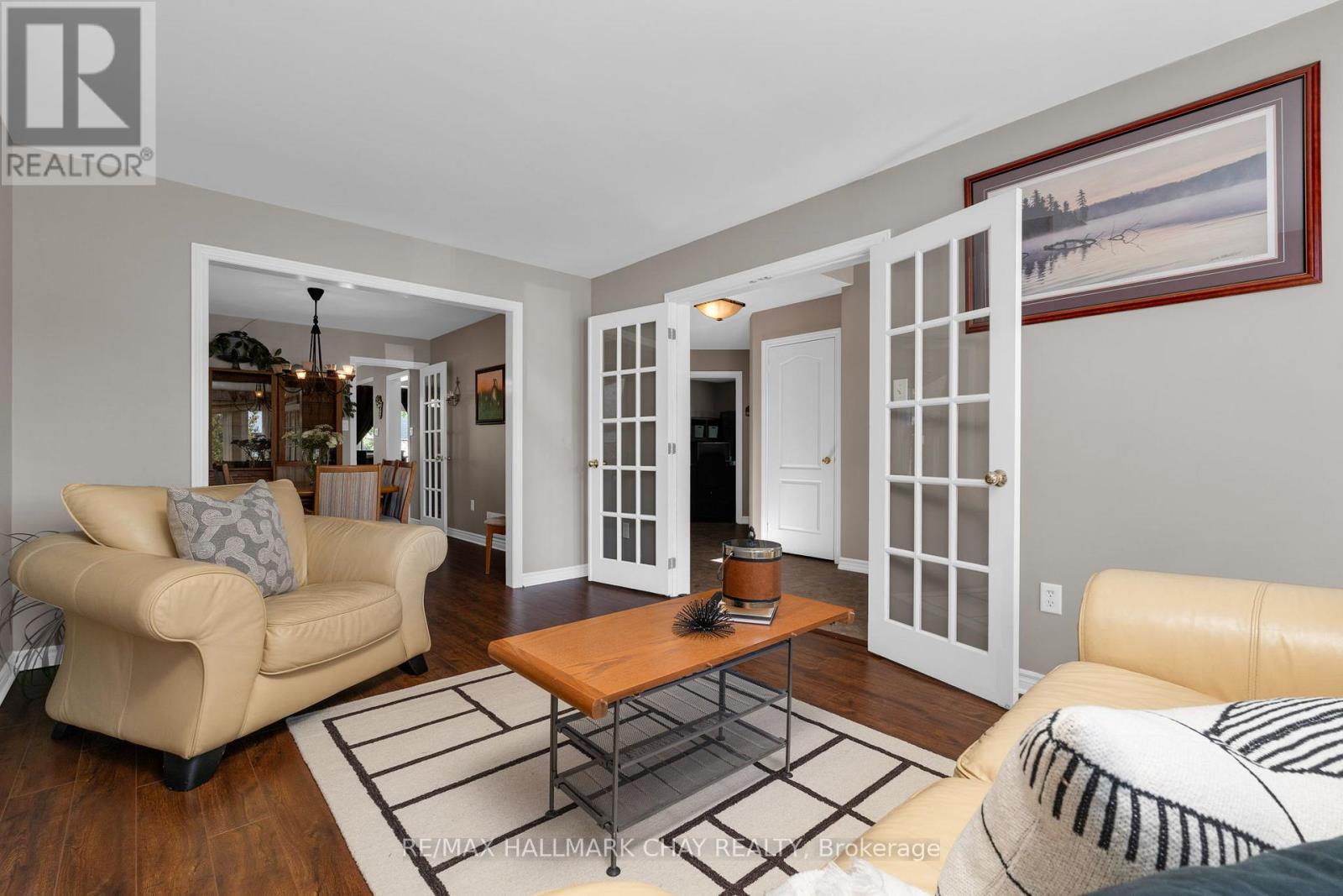 Welcome to 3 Meyer Avenue - Where Timeless Elegance Meets Family Comfort. Nestled in the heart of North East Barrie's sought-after family enclave, this exceptional residence offers over 3,000 sq. ft. of refined living space across three thoughtfully designed levels. With five spacious bedrooms, four bathrooms, and a layout tailored for modern lifestyles, this home is the perfect blend of sophistication and practicality. Step into a grand two-storey foyer with soaring 17' ceilings that set the tone for the elegant interior. The main floor features formal living and dining rooms, a private office ideal for remote work or study zone, and a stylishly remodeled kitchen with granite countertops, stainless steel appliances, and a centre island with prep sink. A dedicated beverage station and sunlit breakfast area open seamlessly to the expansive rear deck - perfect for entertaining or quiet summer evenings. The family room, anchored by a cozy gas fireplace, offers warmth and comfort for everyday living. Upstairs, the serene primary suite boasts a walk-in closet and spa-inspired ensuite, while three additional bedrooms and a full bath provide ample space for family and guests. The fully finished lower level extends the living space with a large recreation room (roughed-in for a fireplace), a fifth bedroom, and generous storage. Outside, enjoy a beautifully landscaped, fully fenced backyard with a tiered deck and in-ground sprinkler system. Additional features include main floor laundry with garage access, central vac. Double car garage and private driveway. Located minutes from top schools, parks, shopping, and commuter routes - this is where space, style, and location converge. 3 Meyer Avenue - truly a move in ready gem. (id:51158)