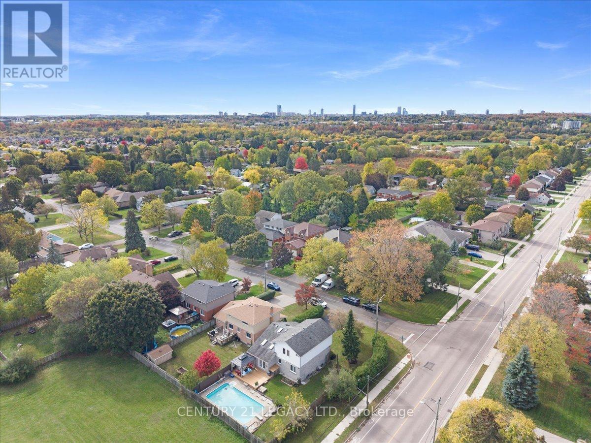 Rare to find freshly painted ,Move In Ready, This beautiful 2 Story detached house with beautiful swimming pool in back yard sitting on 59 feet wide lot situated in convenient Bridgeport on the edge of KW and just steps away from Grand river and surrounding township. This home has open Living Room, formal Dining room, convenient Kitchen with brake fast bar and Family room and Laundry on main floor. The unique second staircase is a spiral stair leading from the main floor family room to the 2nd floor loft which can be used as a 4th bedroom. The Family room and Loft/4th Bedroom have a 5 skylights that allow for a ton of sunlight to stream through and brighten the home all day long. The Main floor is carpet free with porcelain tiles and hardwood floors. The Master has an Ensuite Privilege. You can have party or enjoy your movie night in big open concept finished basement with full washroom. (id:51158)