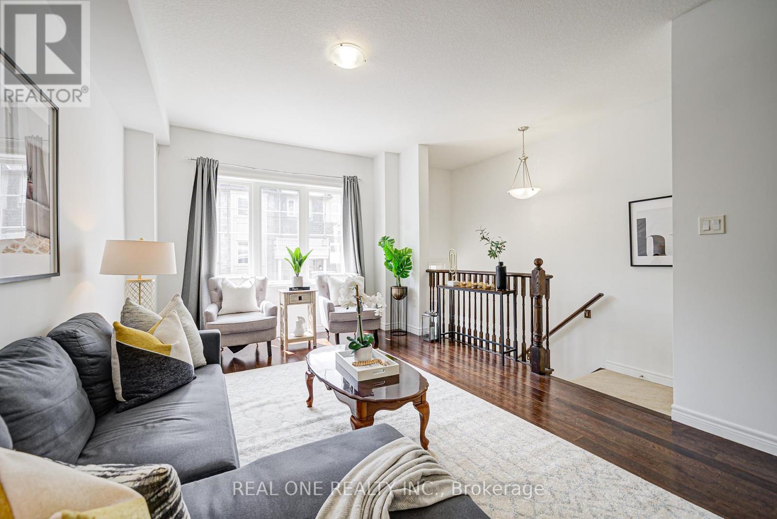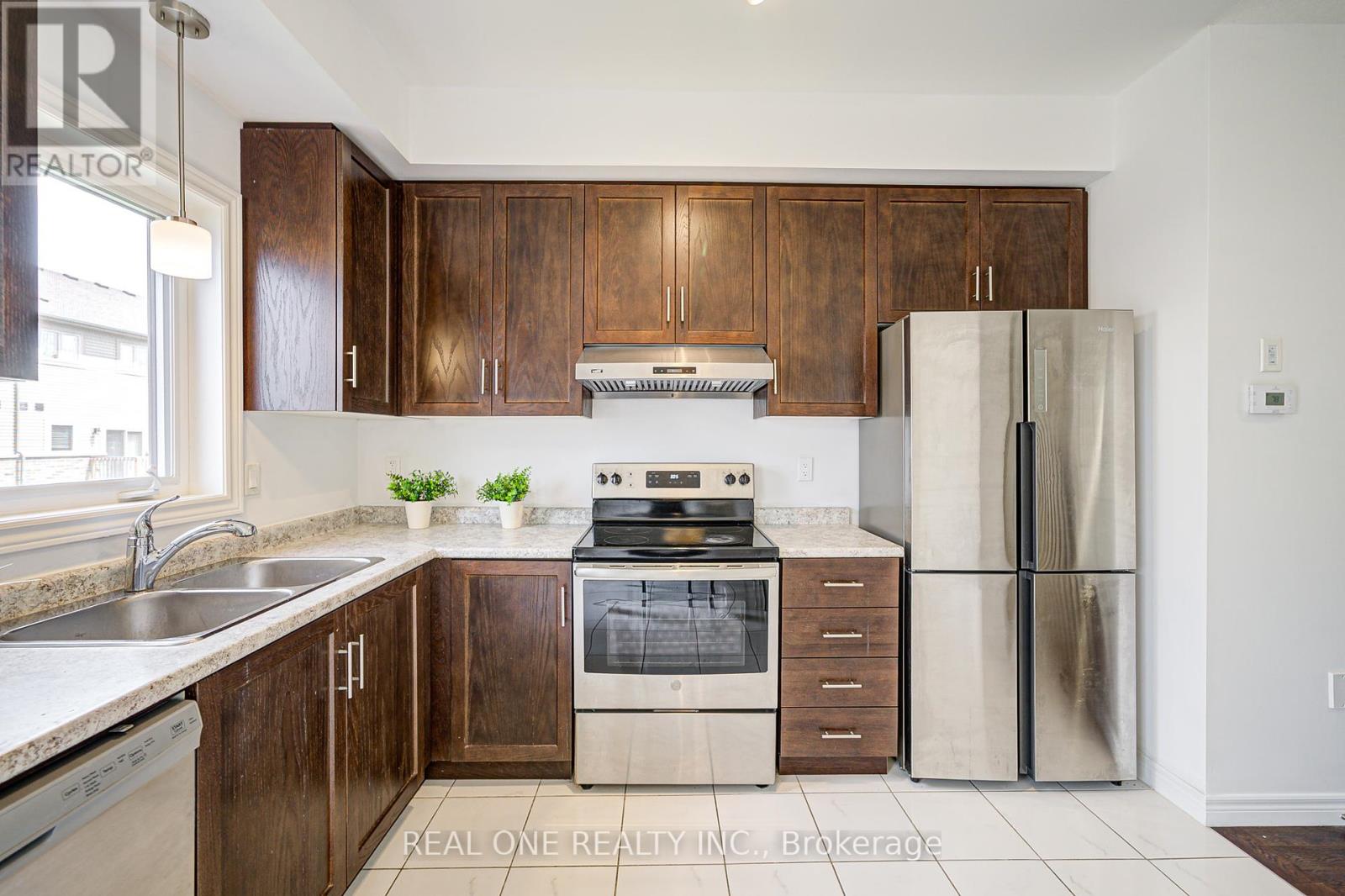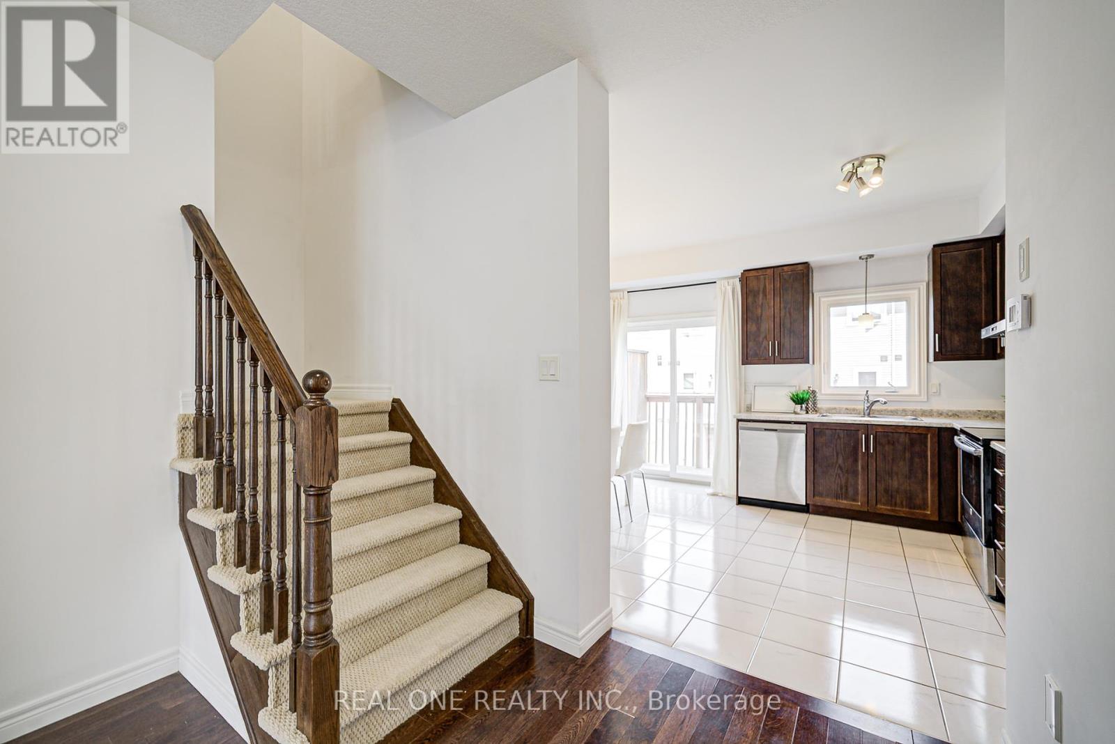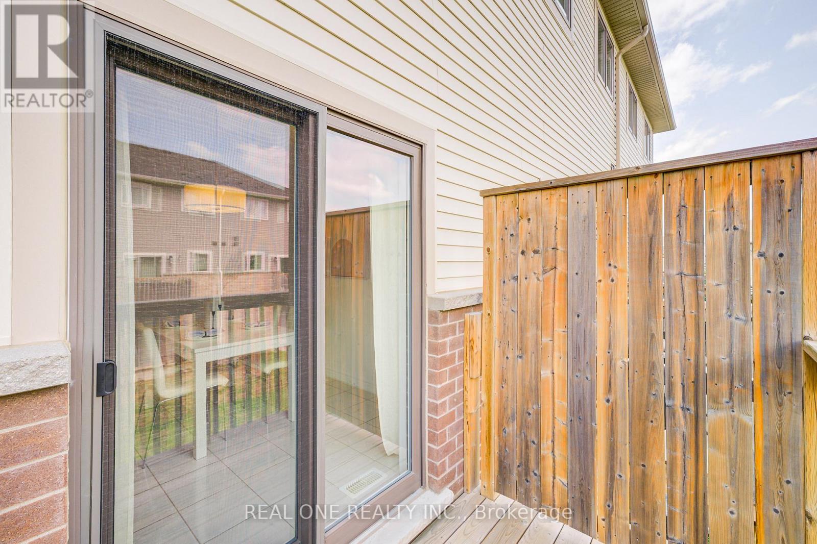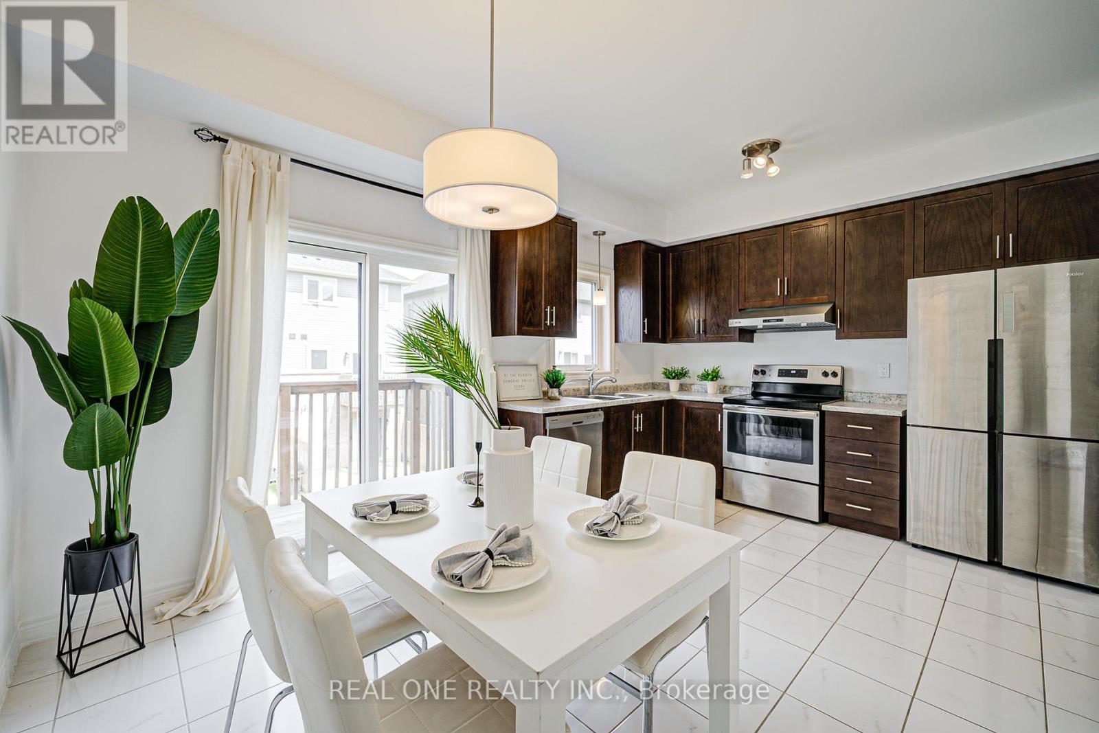 Welcome to this beautiful 3-bedroom, 2.5-bathroom freehold townhome built by Marz Homes, ideally located in the highly desirable Ancaster Meadowlands community. Spanning three levels, this sun-filled west-facing home features 9 ft ceiling, an open-concept living area w/ abundant natural light, contemporary eat-in kitchen with dark stained hardwood cabinets, stainless steel appliances, and a spacious dining room with walkout to a private balcony-perfect for enjoying your morning coffee.The primary suite offers a luxurious 4-piece ensuite and a generous walk-in closet. Two additional bedrooms share a well-appointed 4-piece bathroom. The ground-level walkout basement includes a versatile den ideal for a home office or children's playroom with direct access to the backyard.Enjoy the convenience of walking to Tiffany Hills Elementary School, a nearby neighborhood park, and being just minutes from Costco, shopping plazas, highways, and McMaster University.Low monthly road fee: $89. (id:51158)