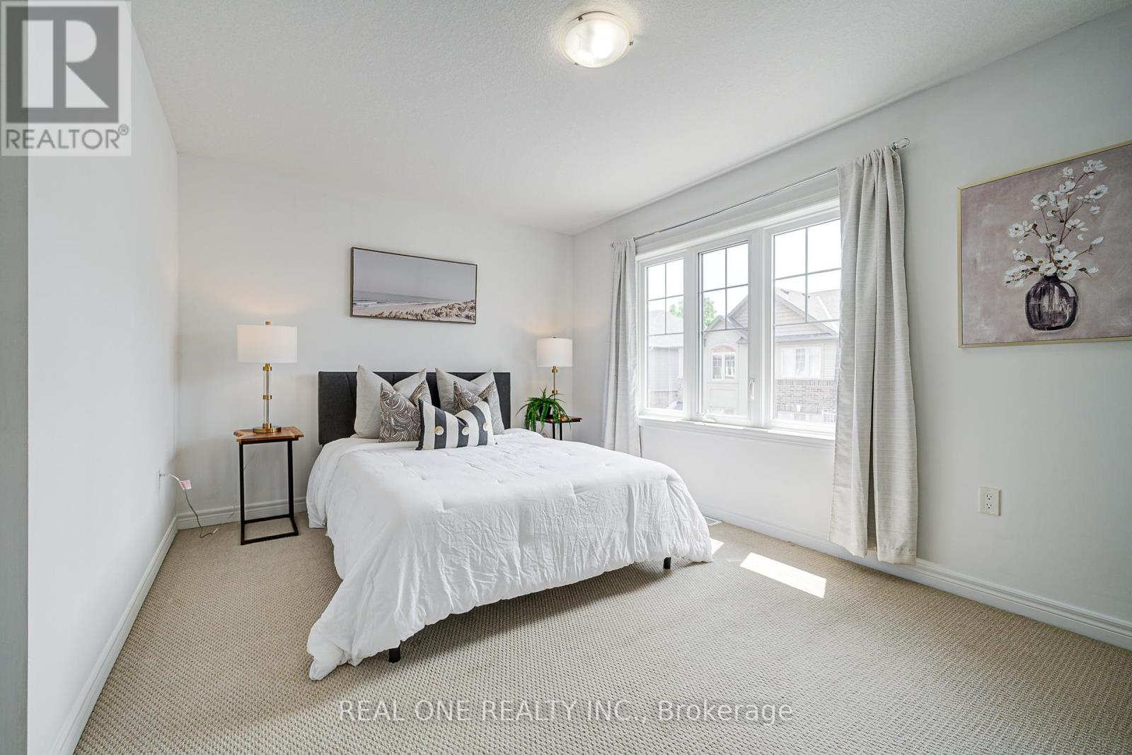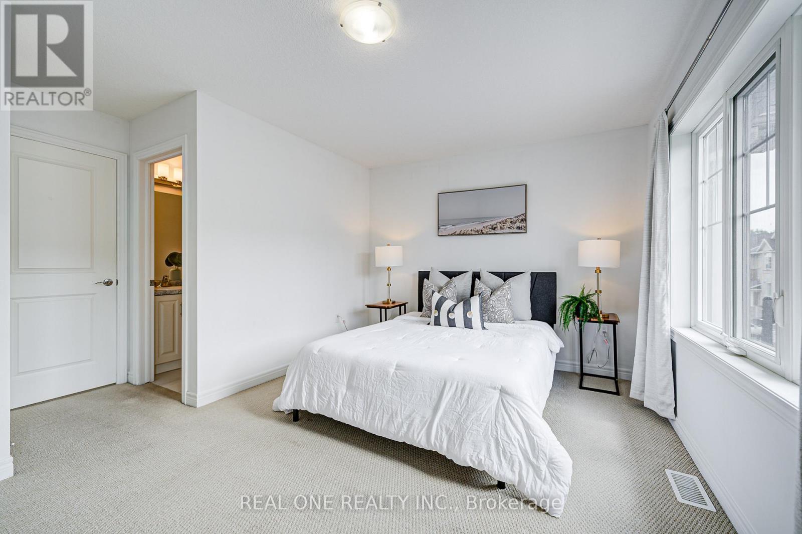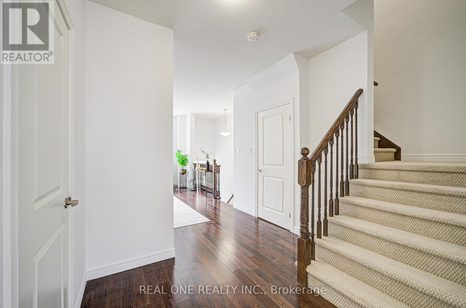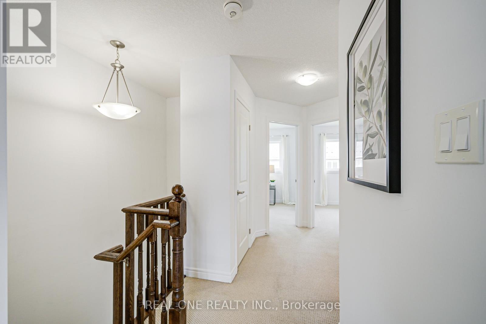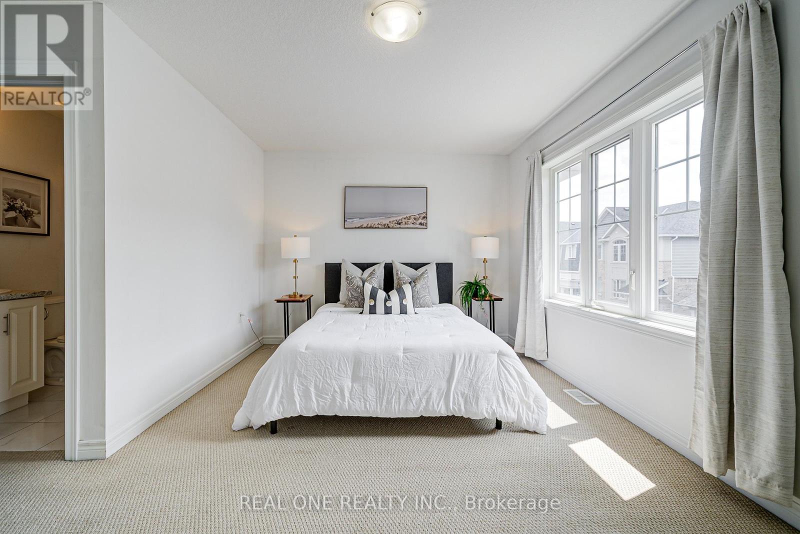 Welcome to this beautiful 3-bedroom, 2.5-bathroom freehold townhome built by Marz Homes, ideally located in the highly desirable Ancaster Meadowlands community. Spanning three levels, this sun-filled west-facing home features 9 ft ceiling, an open-concept living area w/ abundant natural light, contemporary eat-in kitchen with dark stained hardwood cabinets, stainless steel appliances, and a spacious dining room with walkout to a private balcony-perfect for enjoying your morning coffee.The primary suite offers a luxurious 4-piece ensuite and a generous walk-in closet. Two additional bedrooms share a well-appointed 4-piece bathroom. The ground-level walkout basement includes a versatile den ideal for a home office or children's playroom with direct access to the backyard.Enjoy the convenience of walking to Tiffany Hills Elementary School, a nearby neighborhood park, and being just minutes from Costco, shopping plazas, highways, and McMaster University.Low monthly road fee: $89. (id:51158)