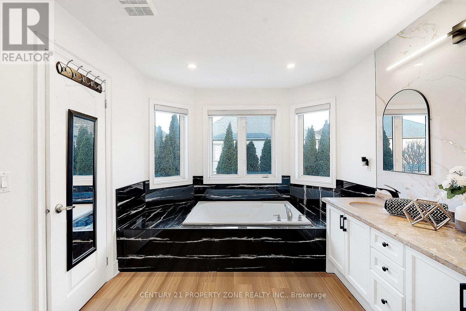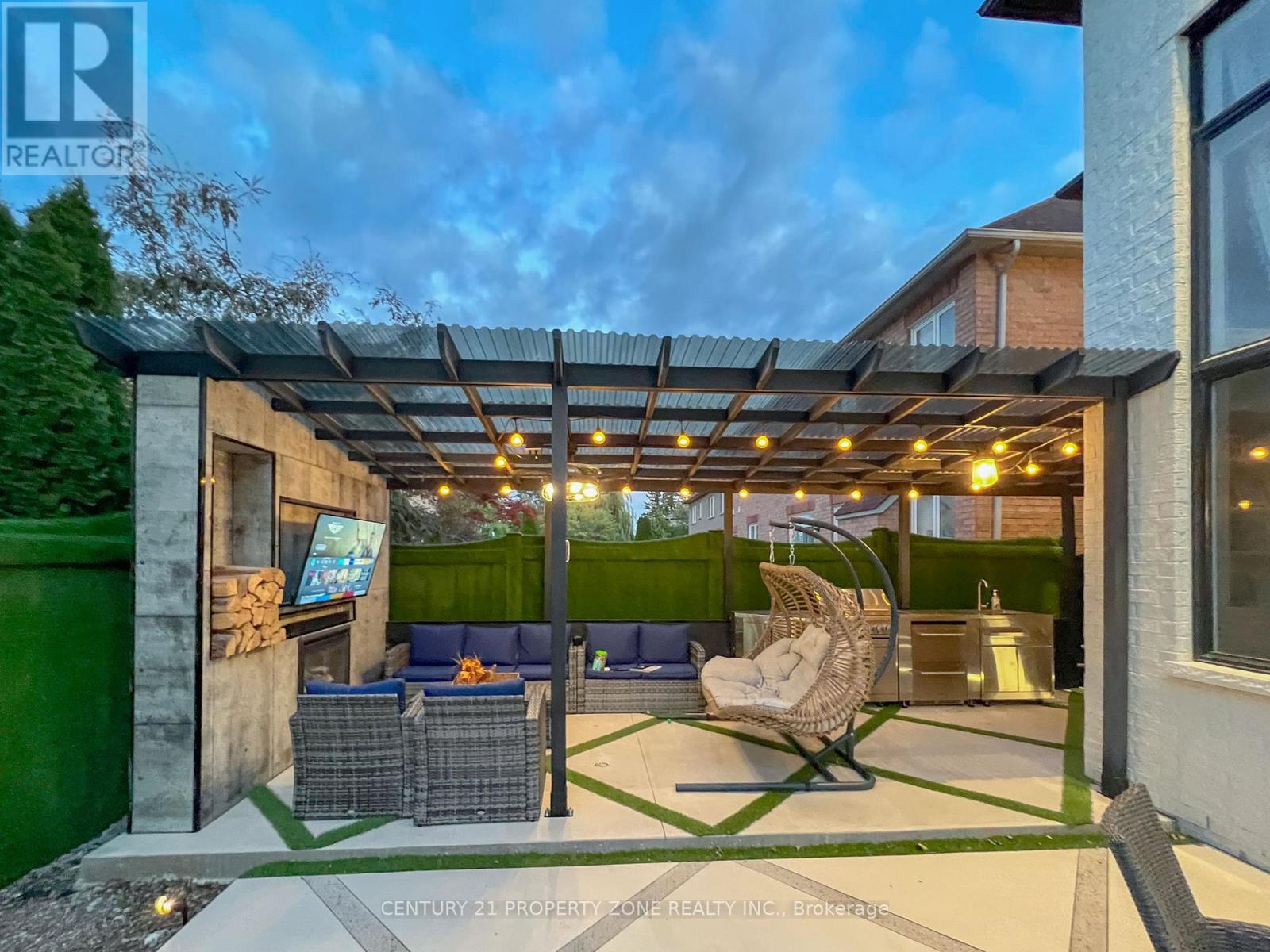A truly one-of-a-kind luxury home located in one of Brampton's most sought-after subdivisions. Fullyrenovated from top to bottom, this exceptional residence offers 5 bedrooms, 6 washrooms, a stunninghigh-ceiling family room, an elegant round staircase, and a state-of-the-art 4K home theatre in thefinished basement! With over 5,000 sq ft of total living space (approx. 3,650 sq ft above grade plusa 1,800 sq ft finished basement). Each bedroom features direct access to a bathroom, while thebasement includes both an ensuite and a powder room, making it ideal for extended family or guests.Luxury continues outdoors with a heated patio featuring a full outdoor kitchen, fireplace, gas BBQ,and pizza oven-perfect for year-round entertaining. Additional highlights include a durable metalroof, custom exterior stucco and concrete finishes, premium exterior upgrades, brand-new porcelainflooring, and stamped concrete throughout! This is a rare opportunity to own a truly exceptional home! (id:51158)