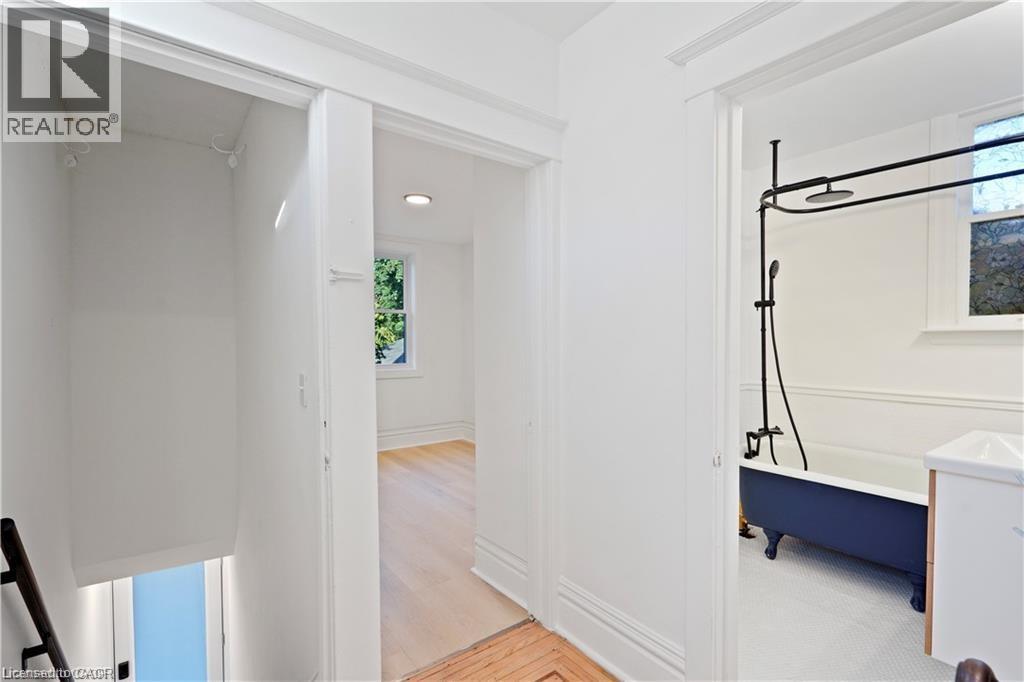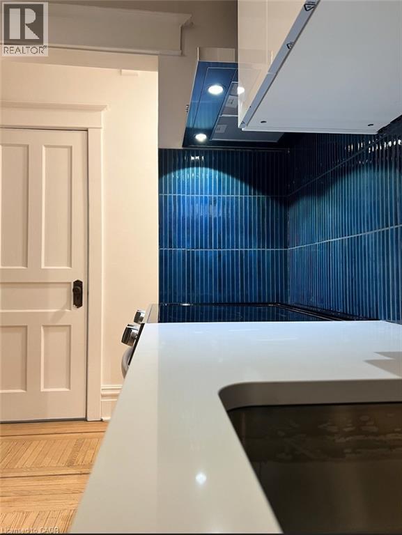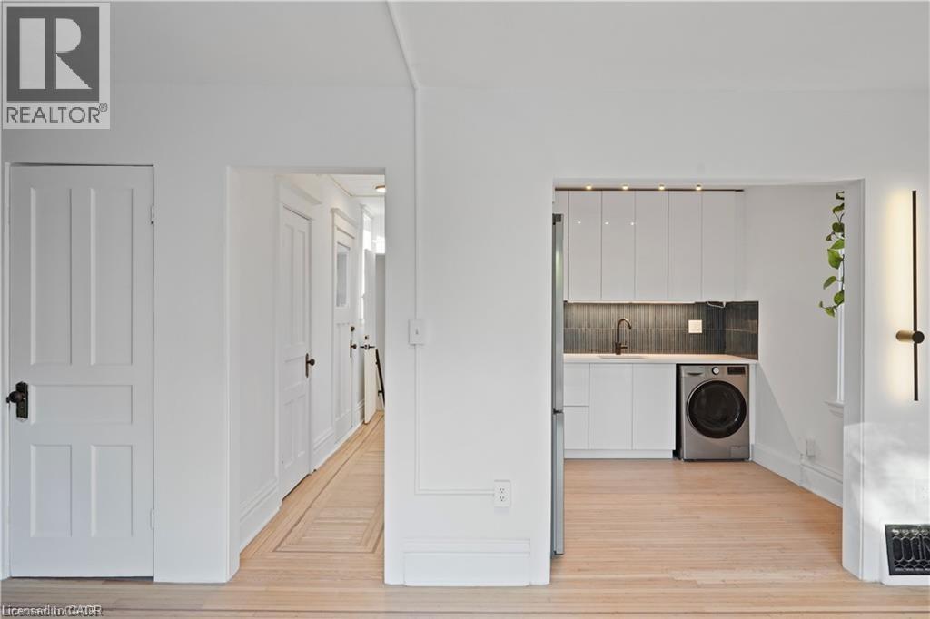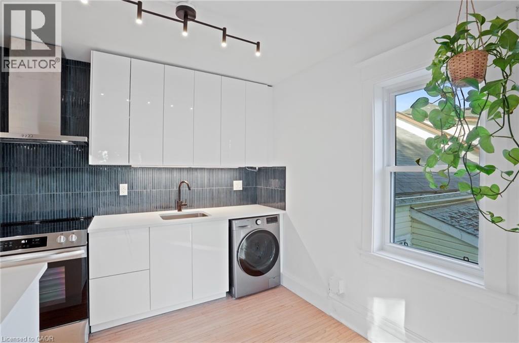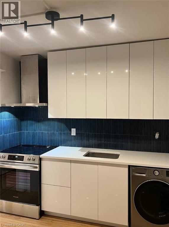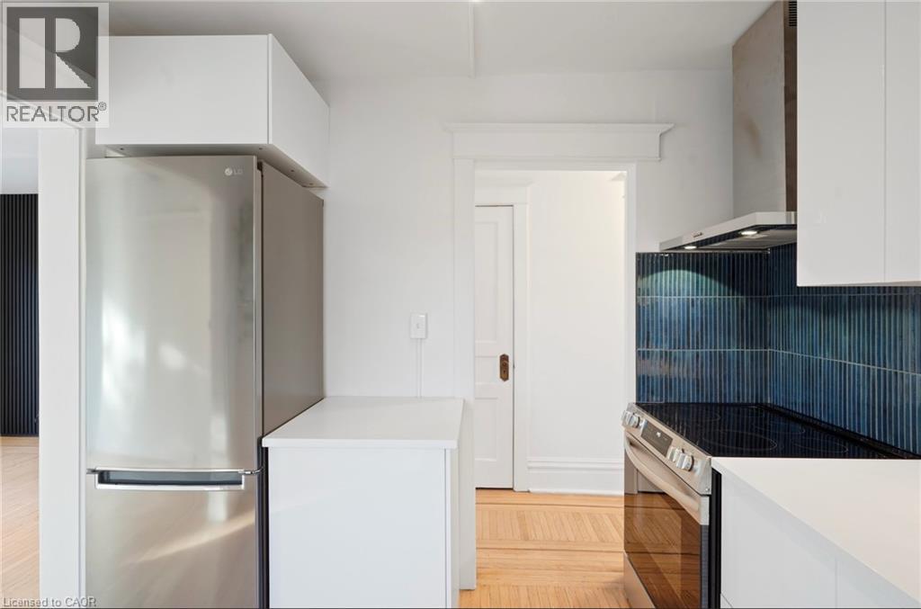 Introducing one of the most HIGH END rental experiences in WEST HAMILTON. Converted from a late 1800s building to the most modern residential living the City has to offer. Strategically located seconds to absolutely every amenity and highway access. Fully renovated from inside out, this boasts flooring reclaimed hardwoods and reclaimed claw iron tub from a century ago. accented with modern pearl washed penny tiles, modern vanity and custom backlit mirror lighting. This unit breaches century old reclaimed with modern import lighting from across the world, new imported backsplash tiles, soft close custom lacquer cabinetry, under mount sink, custom stone counters and under mount counter lighting to create a kitchen like no other. The home is completed with a living room uncontested with import felt/composite accent wall and 6ft high/10ft long floor, to ceiling living room window - architectually designed like no other int he city. The unit is completed with parking, storage, brand new high efficiency washer/dryer, fridge, stove, range and ultra modern exterior refinishing including all new doors, windows and future fully enclosed captivating rooftop terrace. Perfect for Medical/Business/Legal Professionals, Single or Couples. Call to view immediately! (id:51158)