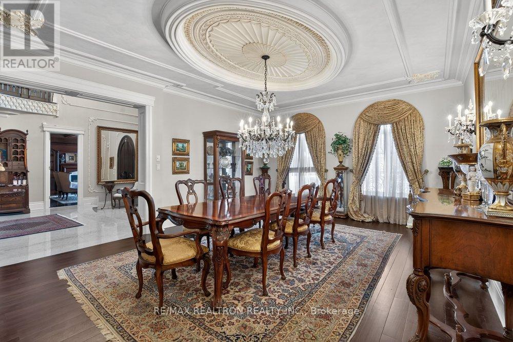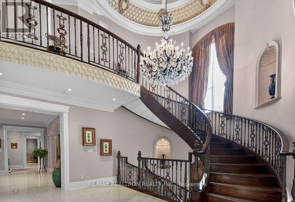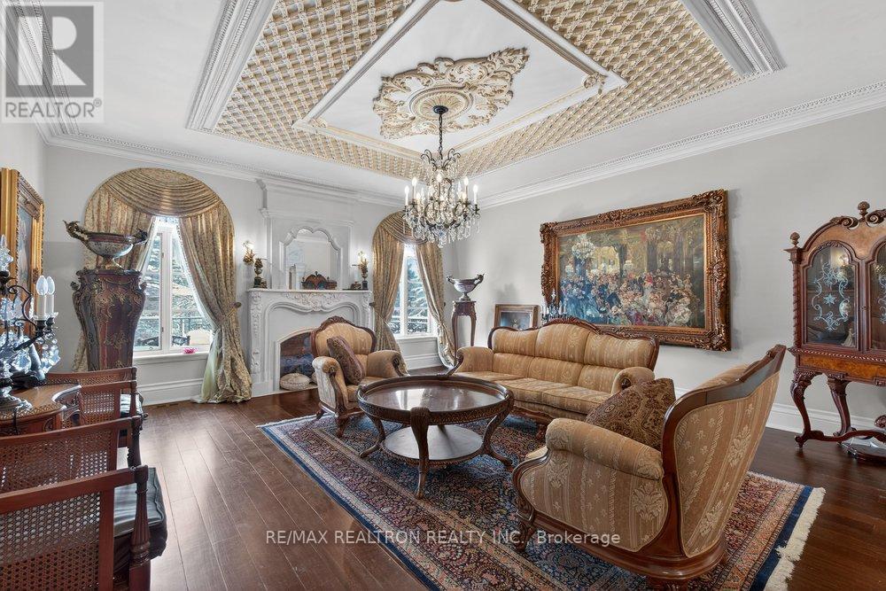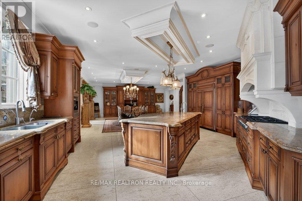 An ultra-rare gated Kleinburg estate set on an extraordinary 4.5 acres of impeccably manicured, conservation-backed grounds within one of Vaughan's most coveted estate courts. This European Castle-inspired residence offers approximately 11,000 square feet of refined living space, showcasing exceptional craftsmanship, soaring ceilings, and rich architectural detail throughout. The grand & highly functional layout is designed for elevated living and entertaining. Features include multiple kitchens, a main-floor butler's preparation kitchen, servant's staircase, private wine room, and a dramatic château-style lower-level wine cellar with tasting area. The professionally finished lower level further enhances the home's true estate caliber. Seamless indoor-outdoor living opens to storybook grounds with fairytale views, expansive terraces, an outdoor kitchen, saltwater pool with indoor cabana, and resort-style amenities. A heated six-car garage, multiple laundry centres, and top-tier finishes complete this world-class offering where privacy, luxury, and tranquility converge. Ideally located just steps to Kleinburg Village, schools, shops, and amenities, with convenient access to downtown Toronto and the airport. A truly irreplaceable residence. (id:51158)