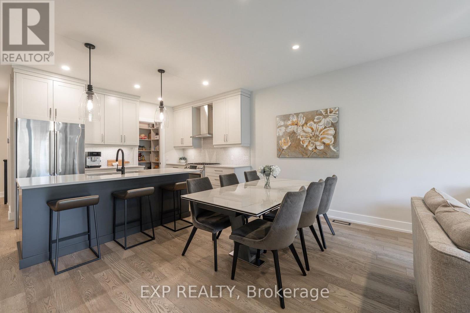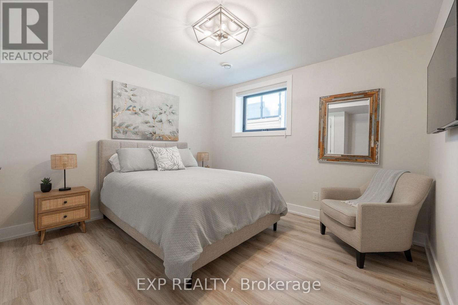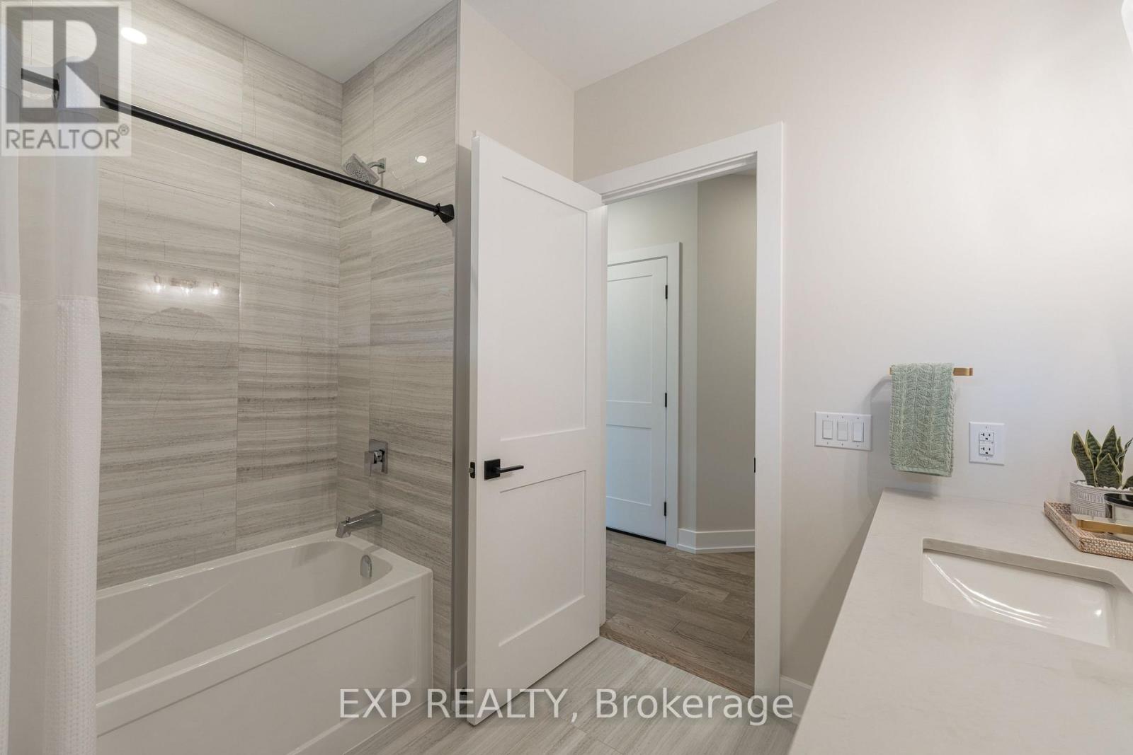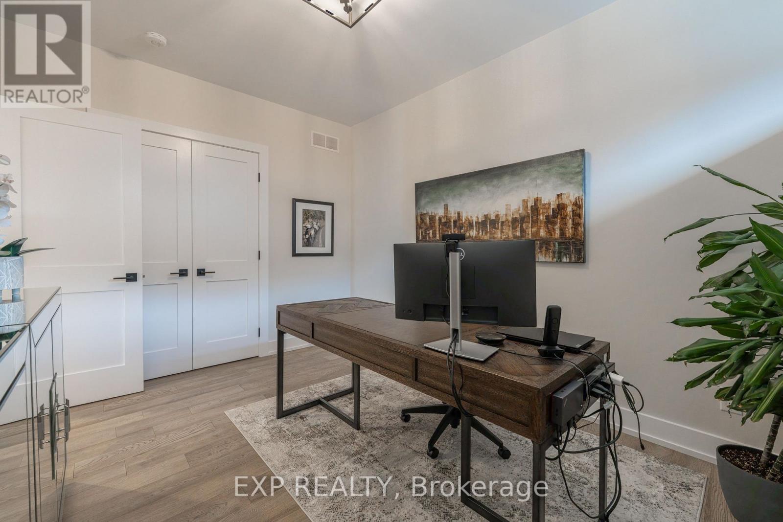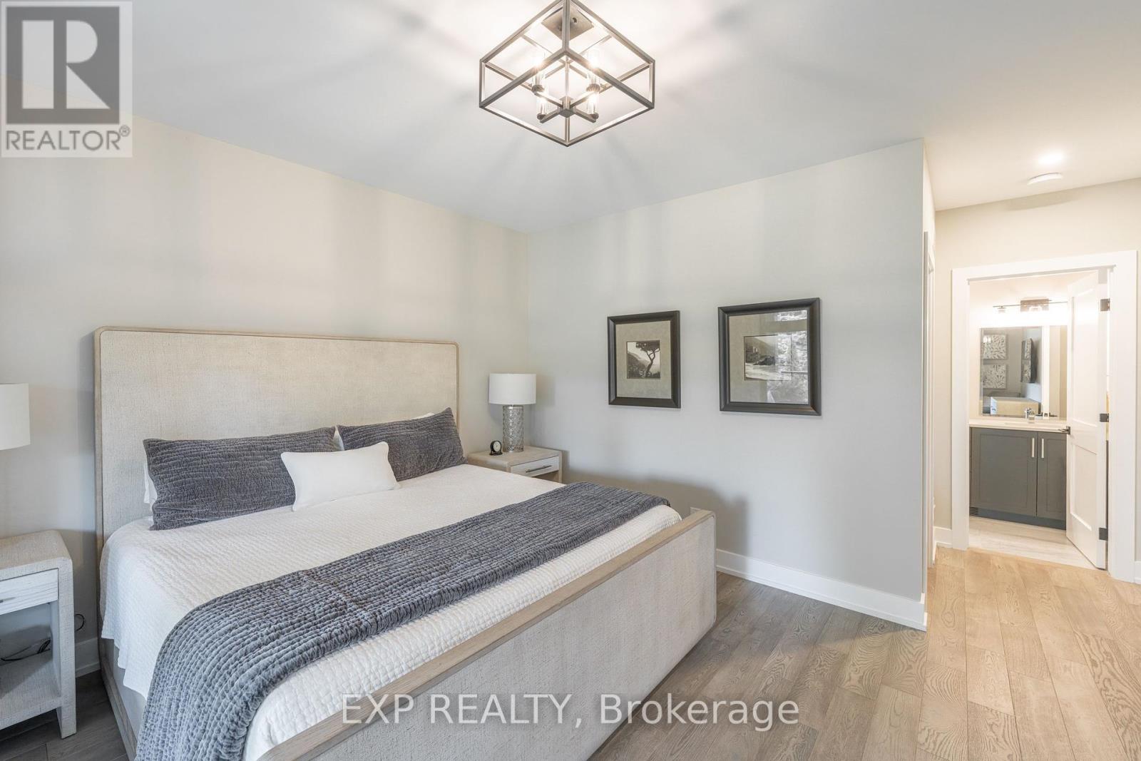 MLS# X12241302 – FOR SALE : 30 Peach Tree Common 437 – Lakeshore St. Catharines – 4 Beds, 3 Baths Row / Townhouse ** Luxury bungalow townhome located in “The Orchard”, an exclusive community built by Rinaldi Homes. This exceptionally built & designed end unit in the desirable North End of St. Catharines is only a few minutes walk to Lake Ontario, beautiful water/walking trails & the quaint Port Dalhousie. The private backyard is serene – with views of mature trees you feel as though you are nestled in your own secluded retreat. Views of the lush greenery can be seen from the main living area, primary bedroom or outdoors on the private covered composite-wood back deck & lower-level interlock terrace. You can also take in the tranquil setting from the spacious covered front porch. Inside, an expansive & elegantly tiled foyer leads to an open concept kitchen, dining & living room space. The kitchen is a dream – with a walk-in chefs pantry, quartz countertops, high-end stainless-steel appliances & large island. The living room features a stunning floor to ceiling tiled gas fireplace. The primary bedroom is appointed with a custom designed walk-in closet & elegant ensuite with quartz countertop, double sinks & tiled glass shower. The main floor also has an efficiently designed laundry room, additional bedroom/office space, 4-piece bathroom & white-oak engineered hardwood & tile flooring throughout. The basement is designed for entertaining & relaxing; enjoy a custom designed wet bar, recreation area, cozy fireplace, two additional bedrooms, 3-piece bathroom & large storage room. Additional features include whole home water & air purification systems, window shades that can be controlled via remote, double car garage, separate gas hookups to BBQ & fire pit. Located just a short stroll or drive to numerous & convenient amenities, QEW Highway & the charming Niagara-on-the-Lake with its renowned wineries, restaurants, shops & Shaw Festival Theatre. This is a rare opportun ** 30 Peach Tree Common 437 – Lakeshore St. Catharines **