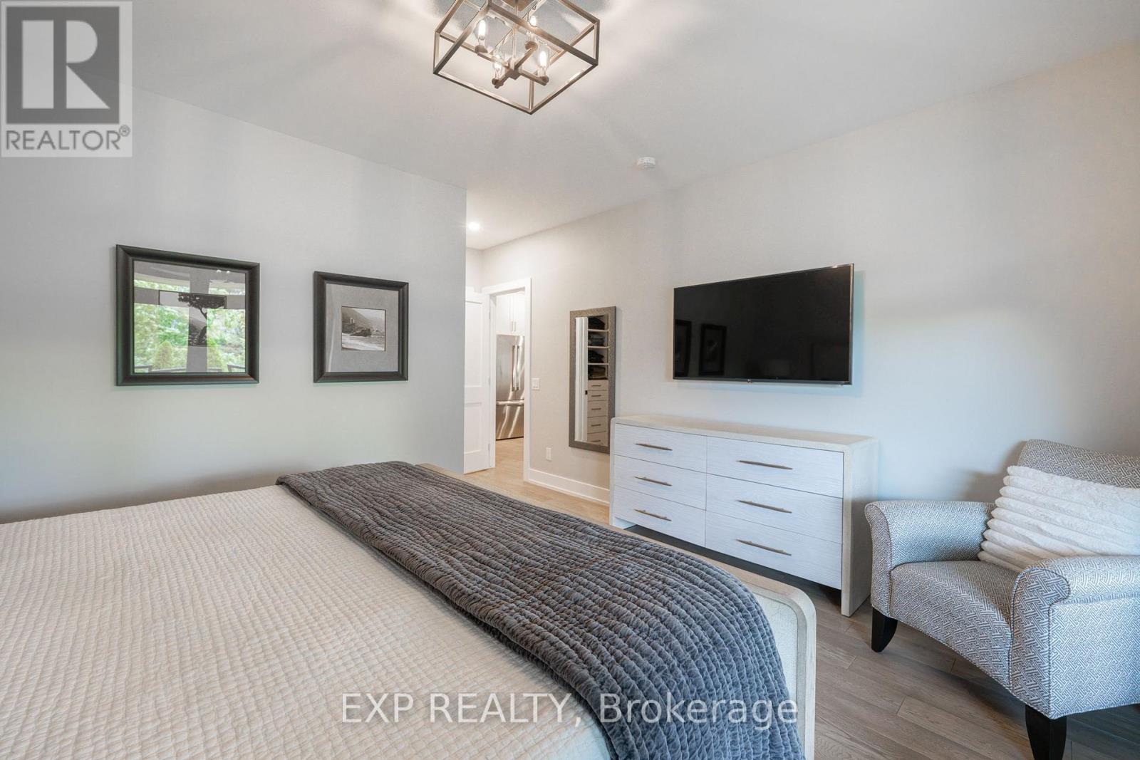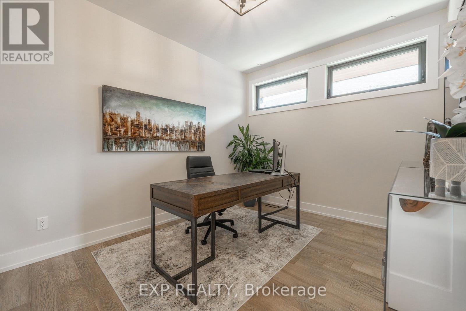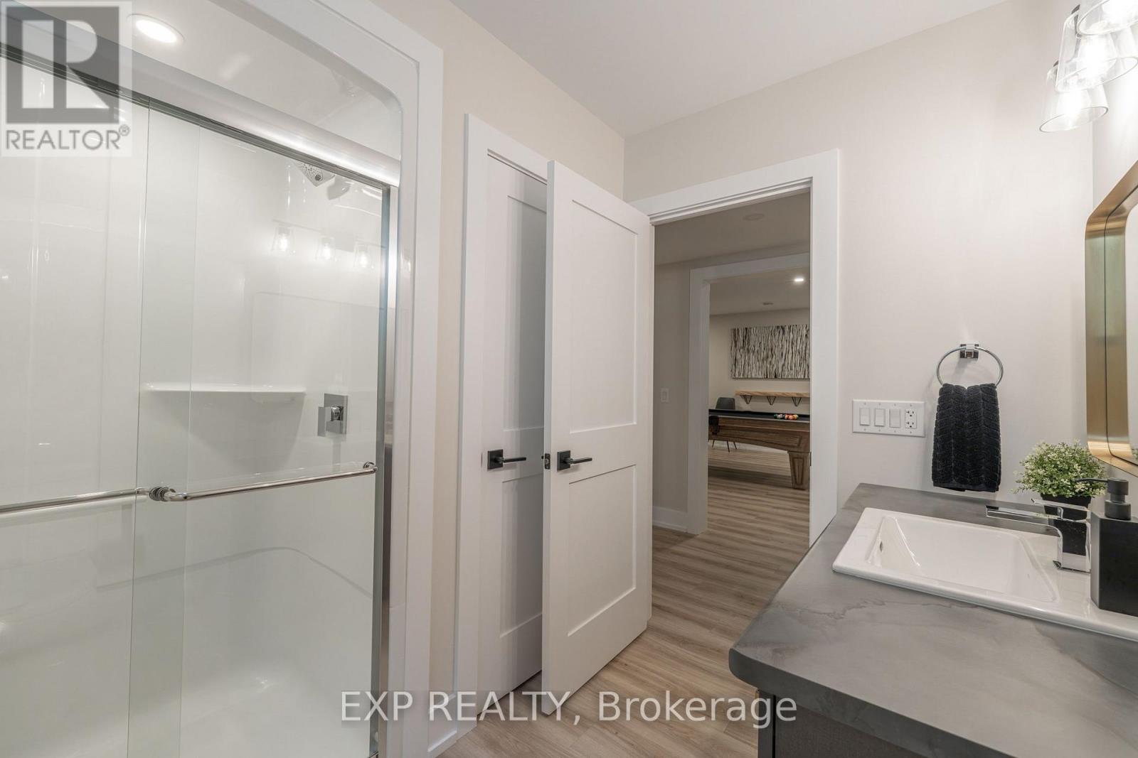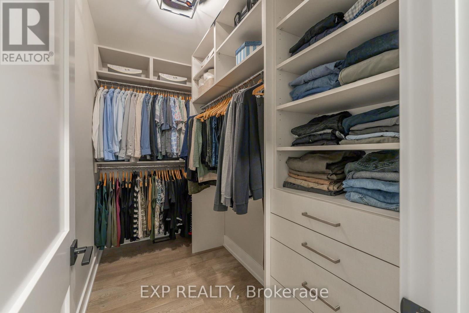 MLS# X12241302 – FOR SALE : 30 Peach Tree Common 437 – Lakeshore St. Catharines – 4 Beds, 3 Baths Row / Townhouse ** Luxury bungalow townhome located in “The Orchard”, an exclusive community built by Rinaldi Homes. This exceptionally built & designed end unit in the desirable North End of St. Catharines is only a few minutes walk to Lake Ontario, beautiful water/walking trails & the quaint Port Dalhousie. The private backyard is serene – with views of mature trees you feel as though you are nestled in your own secluded retreat. Views of the lush greenery can be seen from the main living area, primary bedroom or outdoors on the private covered composite-wood back deck & lower-level interlock terrace. You can also take in the tranquil setting from the spacious covered front porch. Inside, an expansive & elegantly tiled foyer leads to an open concept kitchen, dining & living room space. The kitchen is a dream – with a walk-in chefs pantry, quartz countertops, high-end stainless-steel appliances & large island. The living room features a stunning floor to ceiling tiled gas fireplace. The primary bedroom is appointed with a custom designed walk-in closet & elegant ensuite with quartz countertop, double sinks & tiled glass shower. The main floor also has an efficiently designed laundry room, additional bedroom/office space, 4-piece bathroom & white-oak engineered hardwood & tile flooring throughout. The basement is designed for entertaining & relaxing; enjoy a custom designed wet bar, recreation area, cozy fireplace, two additional bedrooms, 3-piece bathroom & large storage room. Additional features include whole home water & air purification systems, window shades that can be controlled via remote, double car garage, separate gas hookups to BBQ & fire pit. Located just a short stroll or drive to numerous & convenient amenities, QEW Highway & the charming Niagara-on-the-Lake with its renowned wineries, restaurants, shops & Shaw Festival Theatre. This is a rare opportun ** 30 Peach Tree Common 437 – Lakeshore St. Catharines **