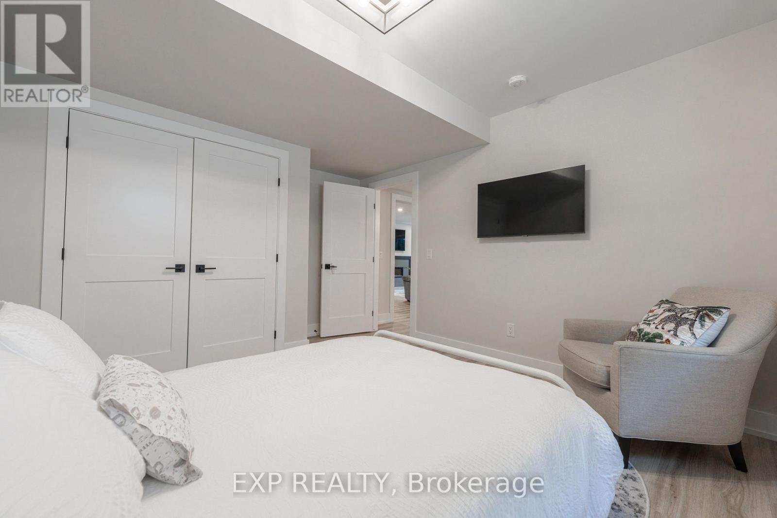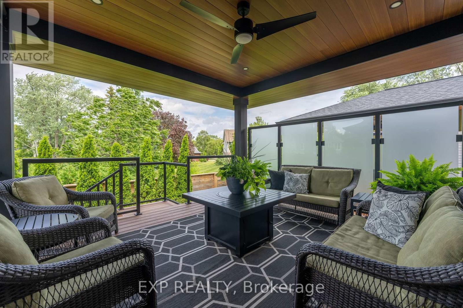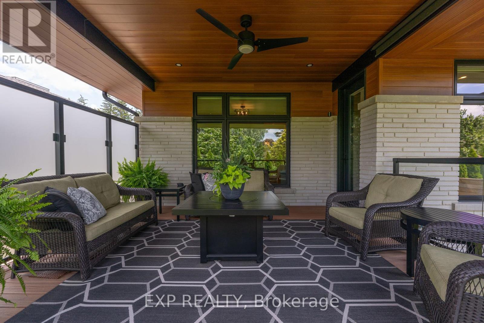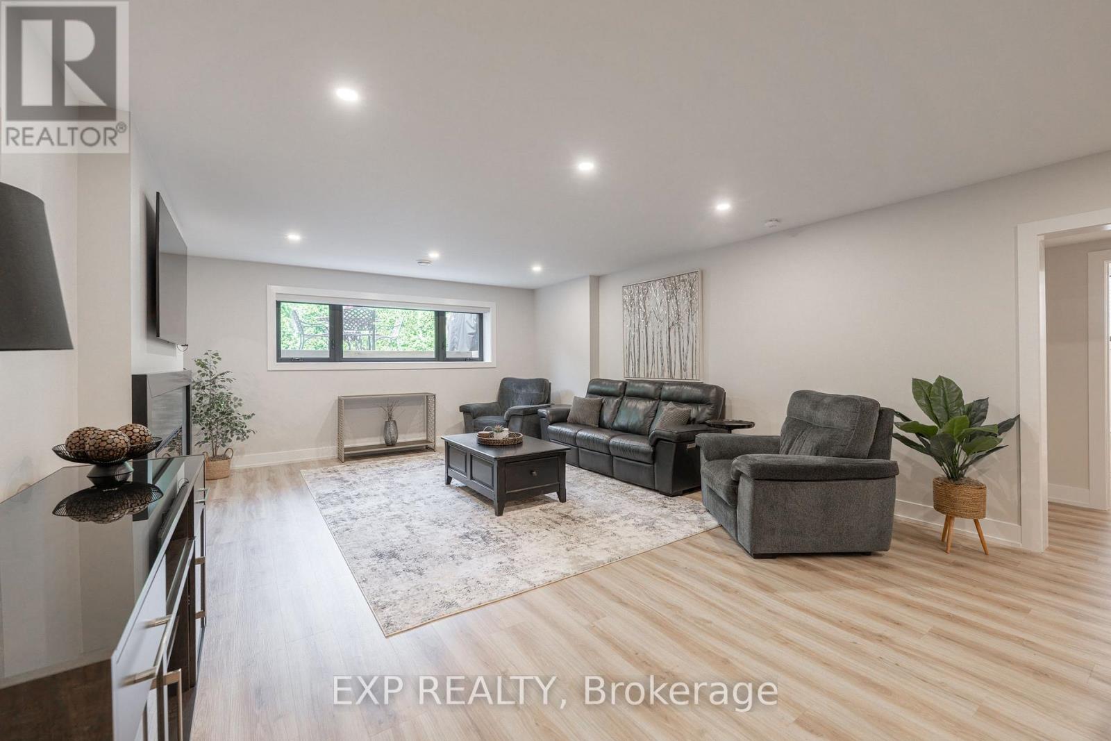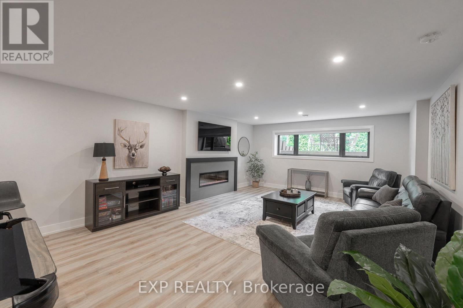 Luxury bungalow townhome located in "The Orchard", an exclusive community built by Rinaldi Homes. This exceptionally built & designed end unit in the desirable North End of St. Catharines is only a few minutes walk to Lake Ontario, beautiful water/walking trails & the quaint Port Dalhousie. The private backyard is serene - with views of mature trees you feel as though you are nestled in your own secluded retreat. Views of the lush greenery can be seen from the main living area, primary bedroom or outdoors on the private covered composite-wood back deck & lower-level interlock terrace. You can also take in the tranquil setting from the spacious covered front porch. Inside, an expansive & elegantly tiled foyer leads to an open concept kitchen, dining & living room space. The kitchen is a dream - with a walk-in chefs pantry, quartz countertops, high-end stainless-steel appliances & large island. The living room features a stunning floor to ceiling tiled gas fireplace. The primary bedroom is appointed with a custom designed walk-in closet & elegant ensuite with quartz countertop, double sinks & tiled glass shower. The main floor also has an efficiently designed laundry room, additional bedroom/office space, 4-piece bathroom & white-oak engineered hardwood & tile flooring throughout. The basement is designed for entertaining & relaxing; enjoy a custom designed wet bar, recreation area, cozy fireplace, two additional bedrooms, 3-piece bathroom & large storage room. Additional features include whole home water & air purification systems, window shades that can be controlled via remote, double car garage, separate gas hookups to BBQ & fire pit. Located just a short stroll or drive to numerous & convenient amenities, QEW Highway & the charming Niagara-on-the-Lake with its renowned wineries, restaurants, shops & Shaw Festival Theatre. This is a rare opportunity to enjoy a luxurious, carefree lifestyle in a desirable, exclusive community set in a picturesque location. (id:51158)