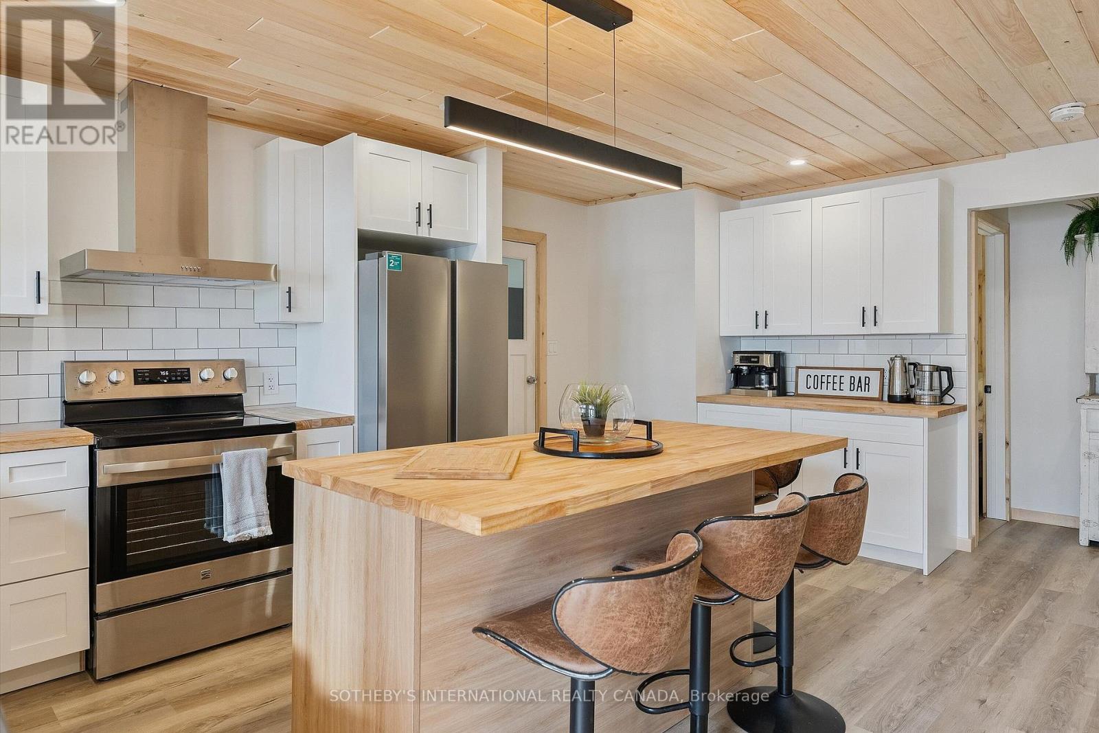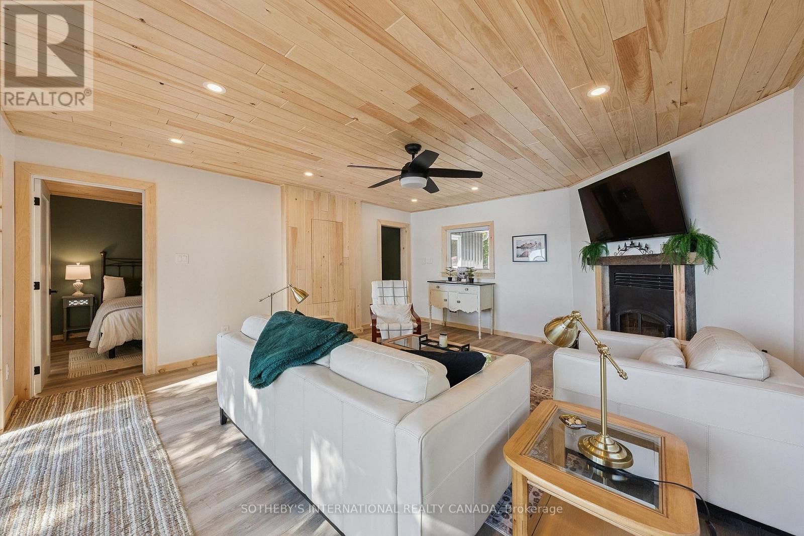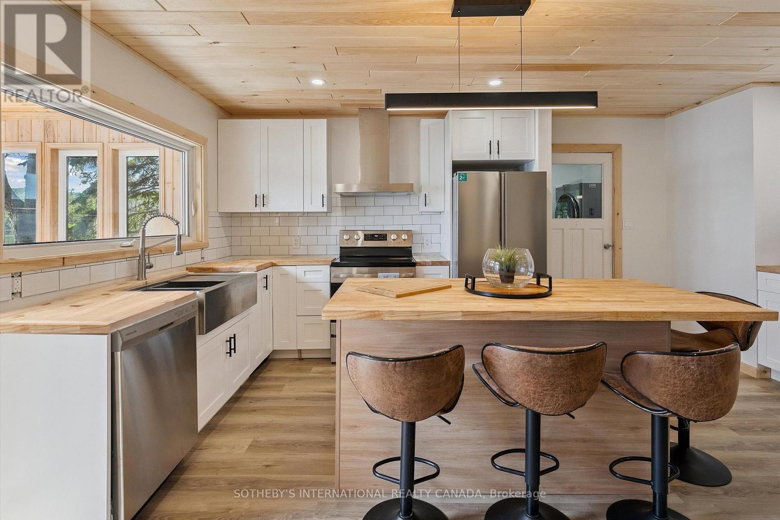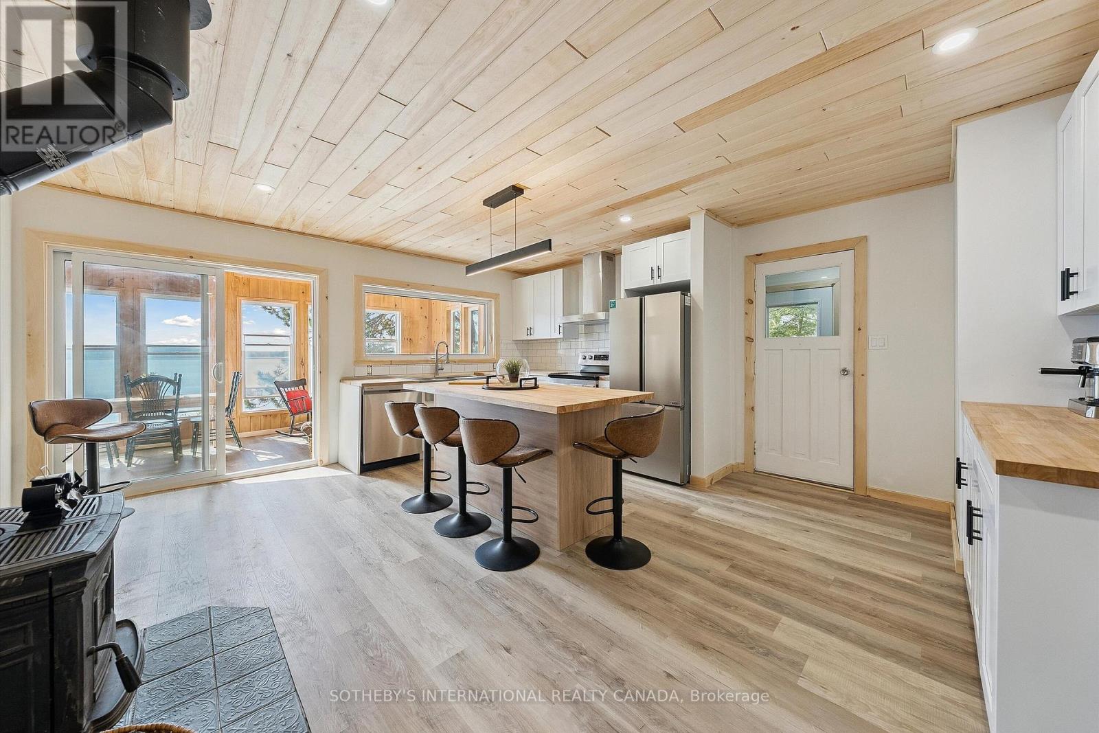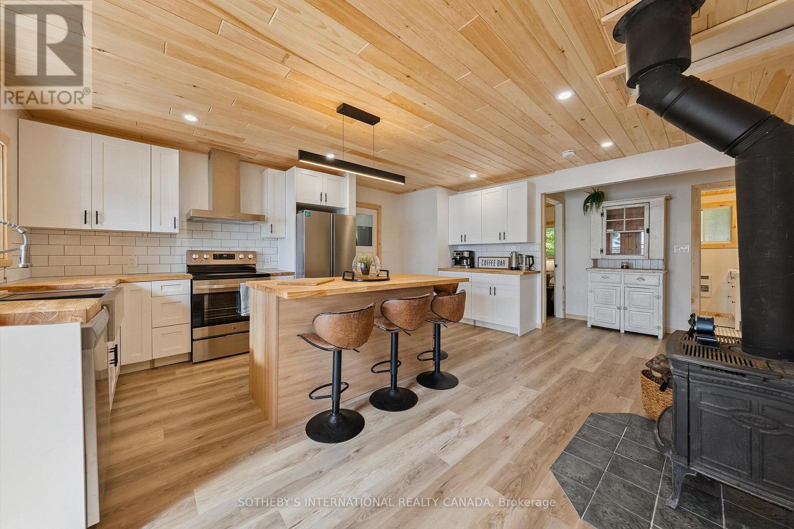 Year-End Opportunity: Incredible Price Improvement! Rarely does a lot as exceptional as this come to market with a lake house completely renovated and being sold turnkey with all the beautiful furnishings and decor as seen in the photographs & virtual tour. Located on Papineau lake in the Hastings Highlands, this 4-season lake house sits on a remarkable 1.93-acre lot which is level and treed with OVER 200 FEET of pristine sand beach waterfront & Crown land flanking one side of the property. Enjoy all-day sun on the dock and beach with SE exposure. Renovated top to bottom, the main house offers 1252 sq ft of living space, featuring a brand-new kitchen with stainless steel appliances, cabinets, backsplash, centre island, butcher block countertops & cozy wood stove & W/O to a large, sunroom with breathtaking lake views. New luxury vinyl plank floors, pine ceilings, and stylish lighting throughout. The living room features a wood-burning fireplace & wall-to-wall sliding doors leading to a 320 sq ft deck with dining and lounging spaces & edgeless glass railings. The views are simply spectacular! The primary bedroom has a 3-piece ensuite, plus an additional 2 bedrooms & 4-piece bath. New structural footings, encapsulated crawl space, insulated attic, siding, soffits, downspouts, windows (excluding sunroom & main bath), laundry addition off the kitchen, in-wall electric heaters with WiFi control, EV charger, new 200 amp panel, Generac transfer switch have been added. The property also features a 340 sq ft guest bunkhouse with a wood stove, a dry land boat house for storage, and a newly landscaped path to the waterfront. The widened and regraded driveway offers ample parking. Papineau Lake is a clean, deep lake perfect for motorized boating. Just 30 mins to Bancroft & Barry's Bay and 2.5 hours from Durham region & Ottawa area. Don't miss this year-end opportunity to buy a gorgeous, turnkey beachfront property. Get ahead of the spring market, act today. (id:51158)