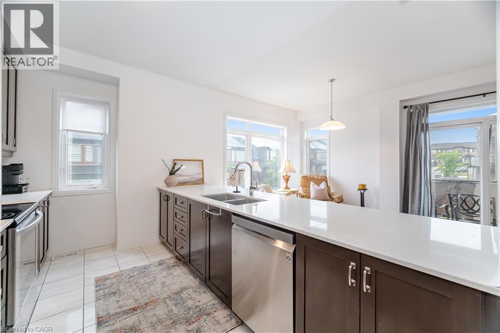 Welcome to #69-30 Times Square Blvd, a stunning corner-lot townhouse located in the vibrant and family-friendly Trinity neighbourhood of Stoney Creek. Offering approximately 1,928 square feet of beautifully designed living space, this 3-bedroom, 2.5-bath home perfectly combines style, comfort, and convenience in a highly sought-after community. From the moment you enter, you'll be impressed by the bright and airy layout, enhanced by large windows that flood the space with natural light. The wide-open design of the main living area creates an ideal setting for both everyday living and entertaining, with a seamless flow between the kitchen, dining, and living spaces. The modern, gourmet kitchen is a true highlight, featuring sleek cabinetry, stainless steel appliances, and plenty of counter space for cooking and gathering. Just off the kitchen, enjoy the expansive outdoor balcony — a perfect spot for morning coffee or summer evenings with friends and family. On the ground level, you'll find a spacious recreation room that offers endless possibilities — whether as a home office, gym, playroom, or media room. Upstairs, the primary bedroom includes a generous closet and a stylish ensuite bath, while two additional bedrooms provide space for a growing family, guests, or a dedicated workspace. Additional features include in-suite laundry, ample storage, and the benefit of being on a corner lot, allowing for more privacy and natural light throughout. With its convenient location near shopping, dining, schools, parks, and highway access, this home truly offers the best of modern living in a welcoming and well-connected community. Don’t miss your chance to own this impressive home in one of Stoney Creek’s most desirable neighbourhoods — a rare opportunity for space, light, and lifestyle all in one package! (id:51158)