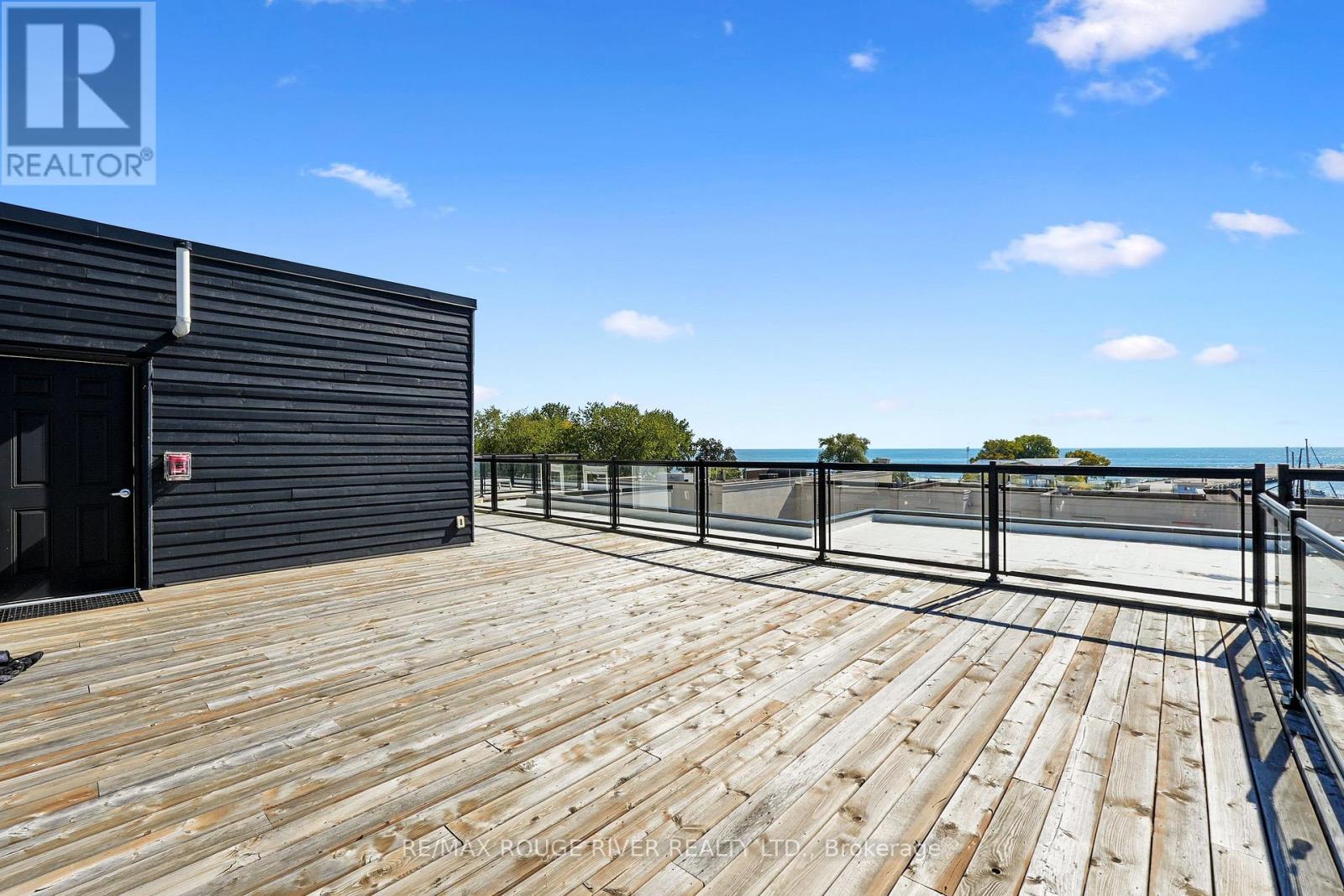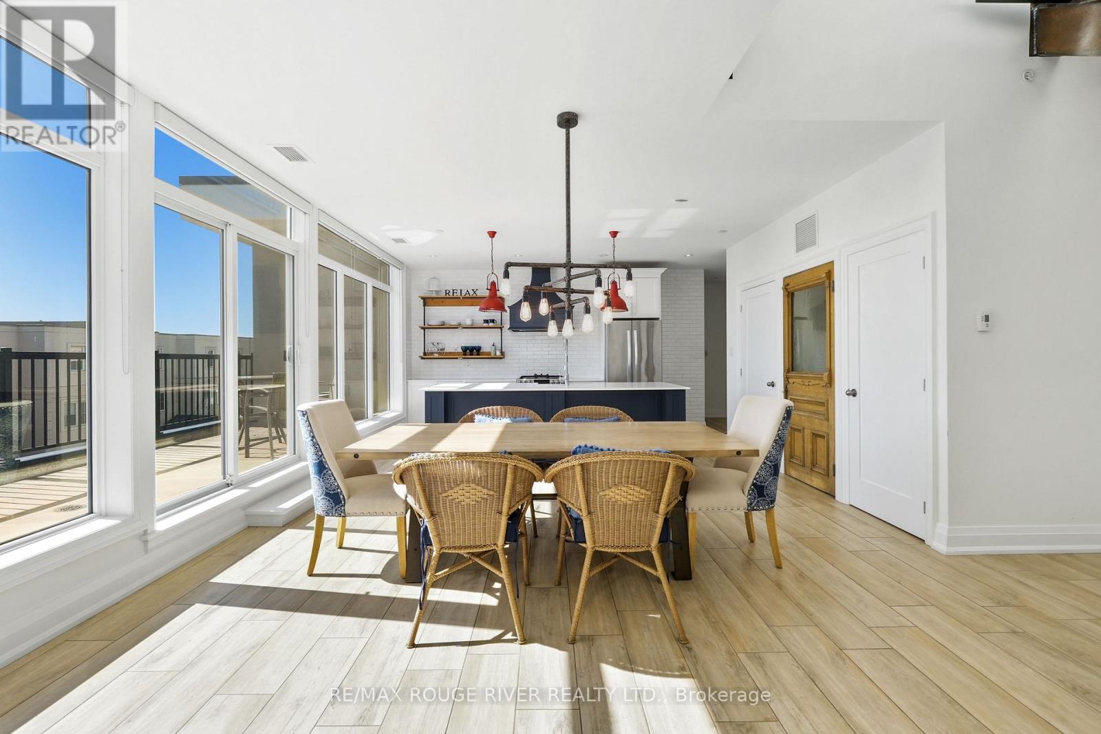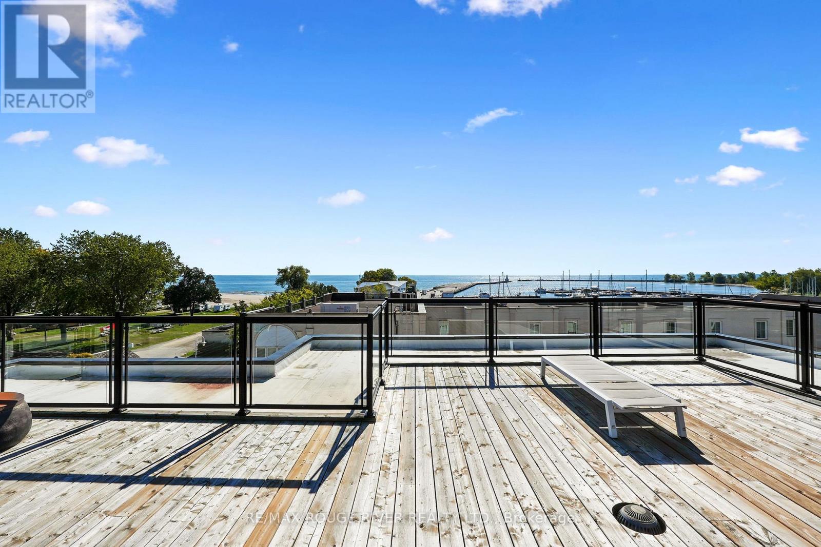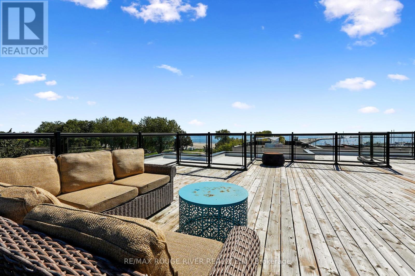 In the heart of Cobourg's Waterfront District, find this rare furnished luxury penthouse- an incredibly special sanctuary that has been designed with the utmost attention to detail. Atop the coveted Beach Walk Place building, this stunning open floor plan corner unit redefines lakeside living with its captivating views and oversized living spaces. Featuring sweeping views of the water, unit 301 is positioned facing South East, creating a sense of spaciousness and allowing natural light to stream in from all angles. The living, dining, and kitchen areas seamlessly connect, creating a fluid space that is perfect for both everyday living and entertaining. Up the stylish, industrial staircase, a huge jaw-dropping rooftop patio, one of multiple outdoor spaces in this unit, making it the perfect spot to host friends and family, or relax with a view. Accessed by a lift and including 1 covered parking spot- this executive furnished rental is turnkey and ready for you. Steps to the Cobourg Beach, boardwalk, marina, fine dining and shopping. (id:51158)