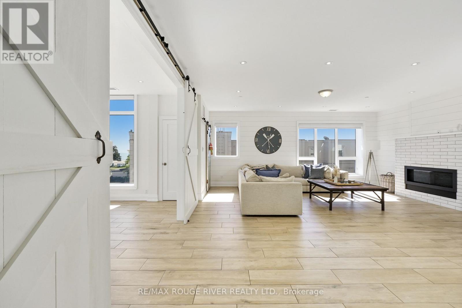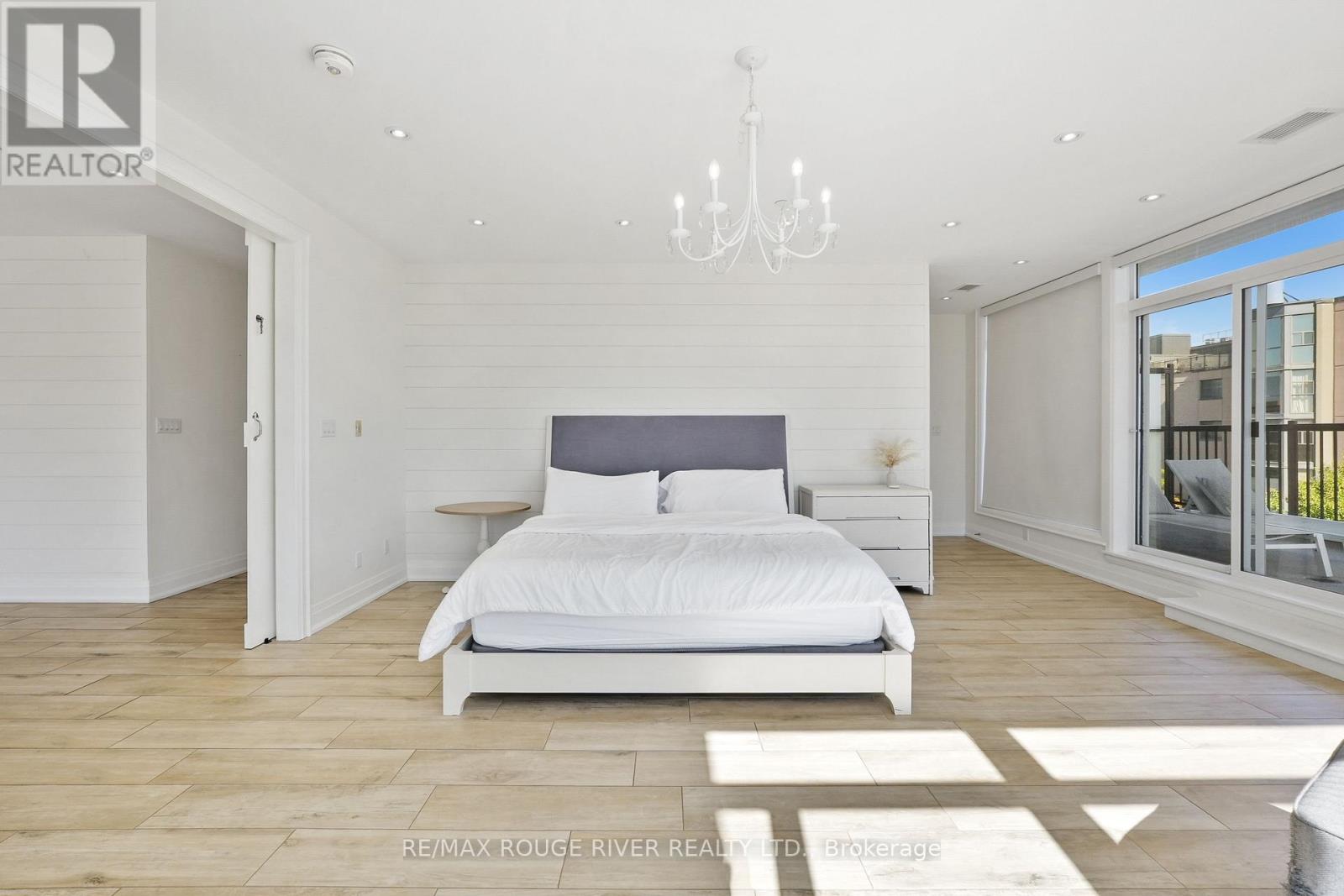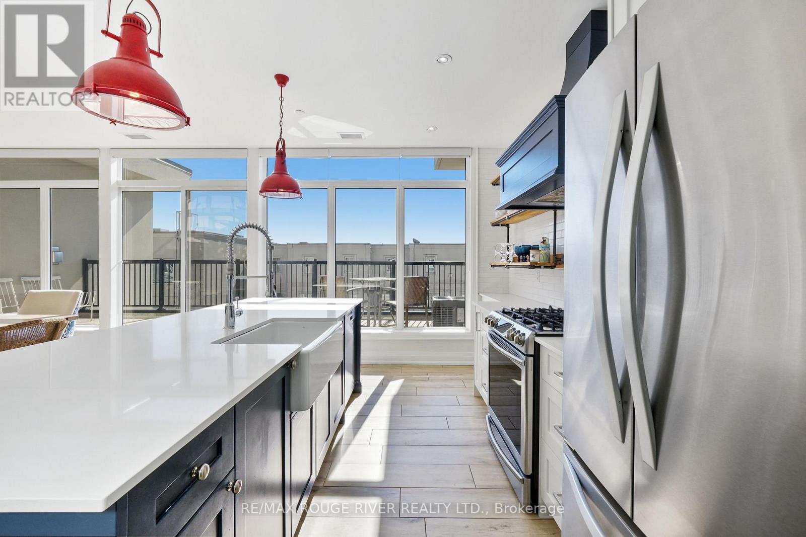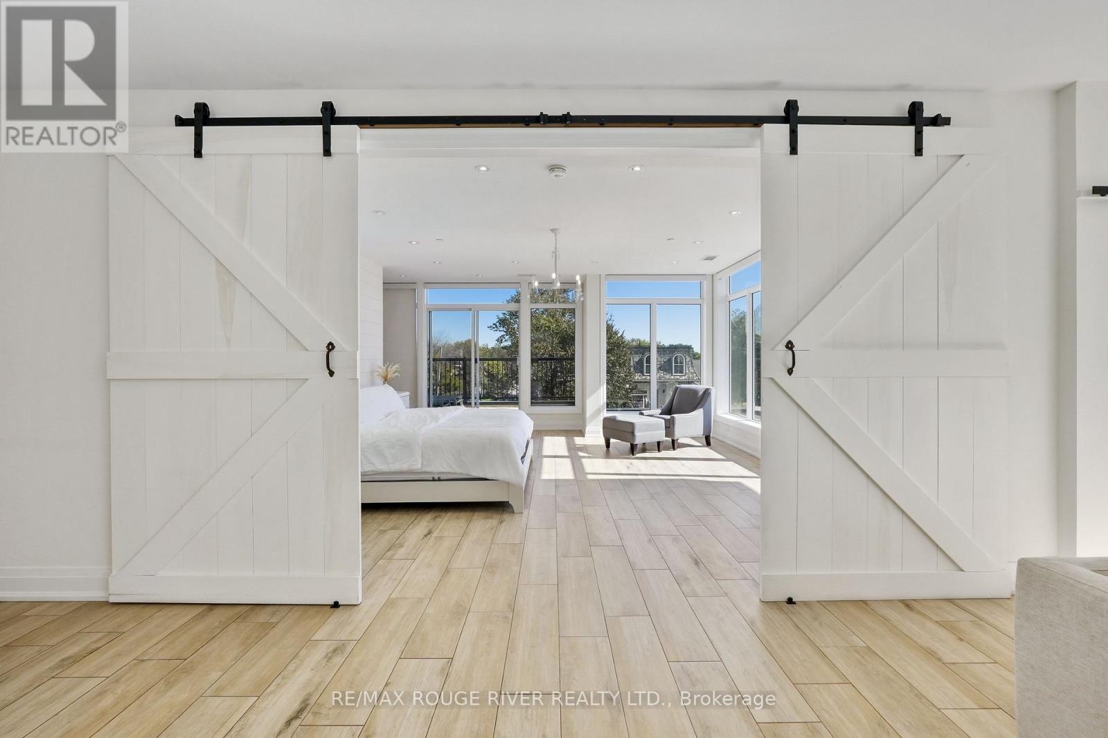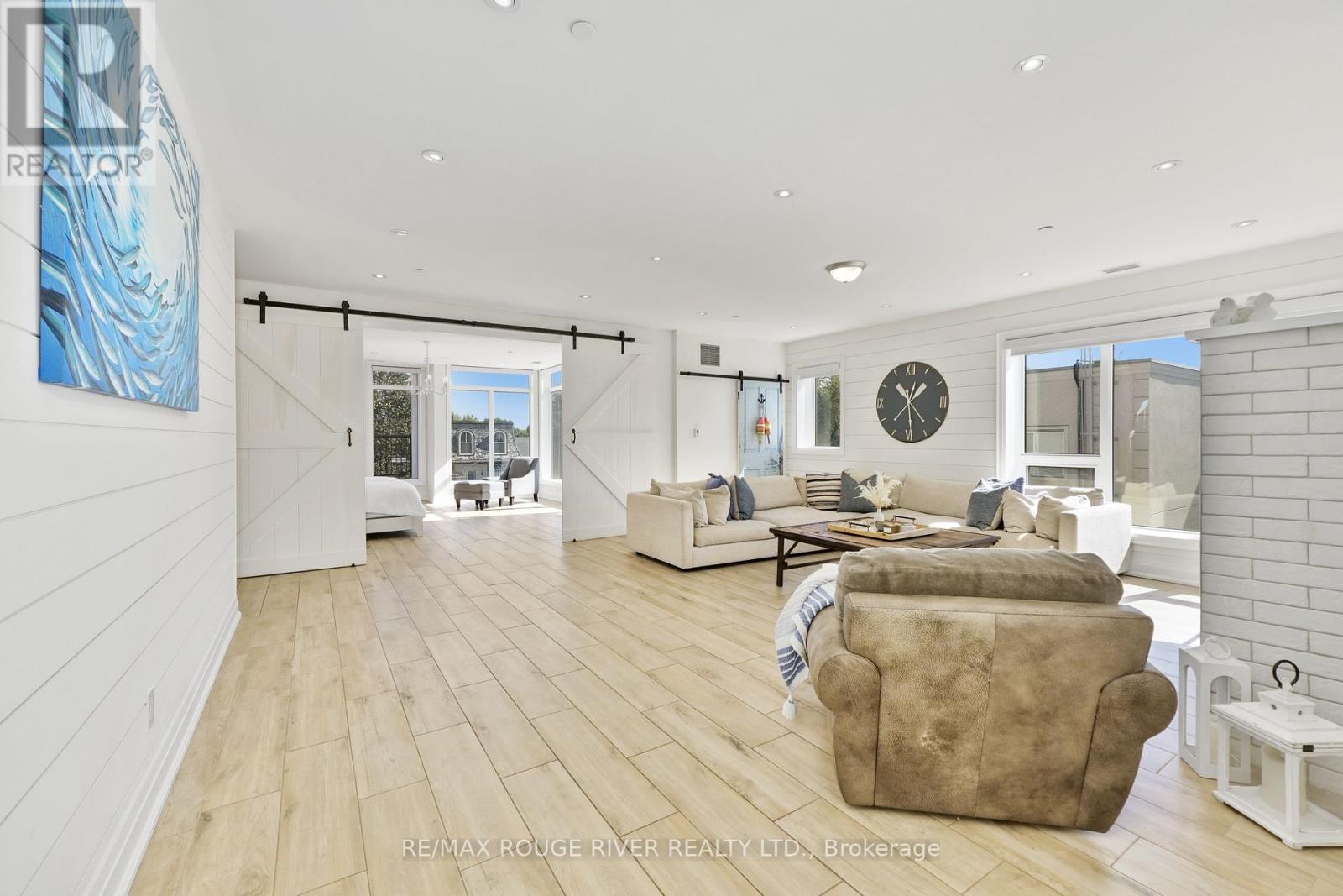 In the heart of Cobourg's Waterfront District, find this rare furnished luxury penthouse- an incredibly special sanctuary that has been designed with the utmost attention to detail. Atop the coveted Beach Walk Place building, this stunning open floor plan corner unit redefines lakeside living with its captivating views and oversized living spaces. Featuring sweeping views of the water, unit 301 is positioned facing South East, creating a sense of spaciousness and allowing natural light to stream in from all angles. The living, dining, and kitchen areas seamlessly connect, creating a fluid space that is perfect for both everyday living and entertaining. Up the stylish, industrial staircase, a huge jaw-dropping rooftop patio, one of multiple outdoor spaces in this unit, making it the perfect spot to host friends and family, or relax with a view. Accessed by a lift and including 1 covered parking spot- this executive furnished rental is turnkey and ready for you. Steps to the Cobourg Beach, boardwalk, marina, fine dining and shopping. (id:51158)