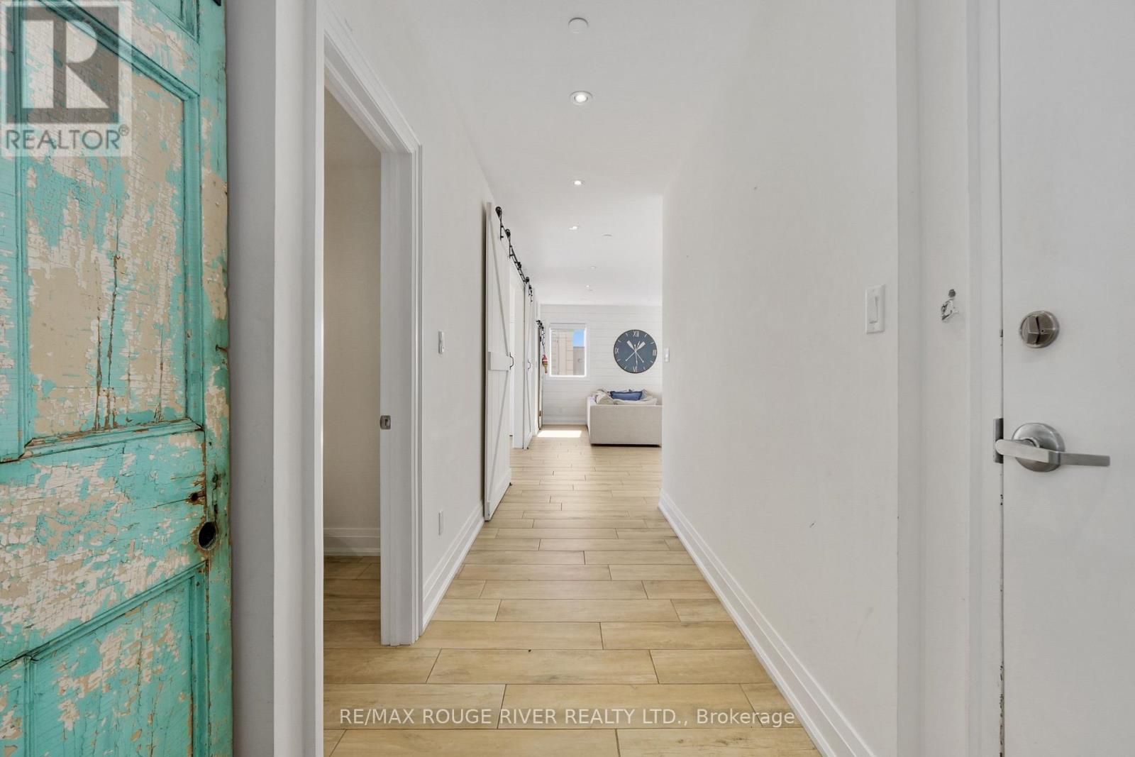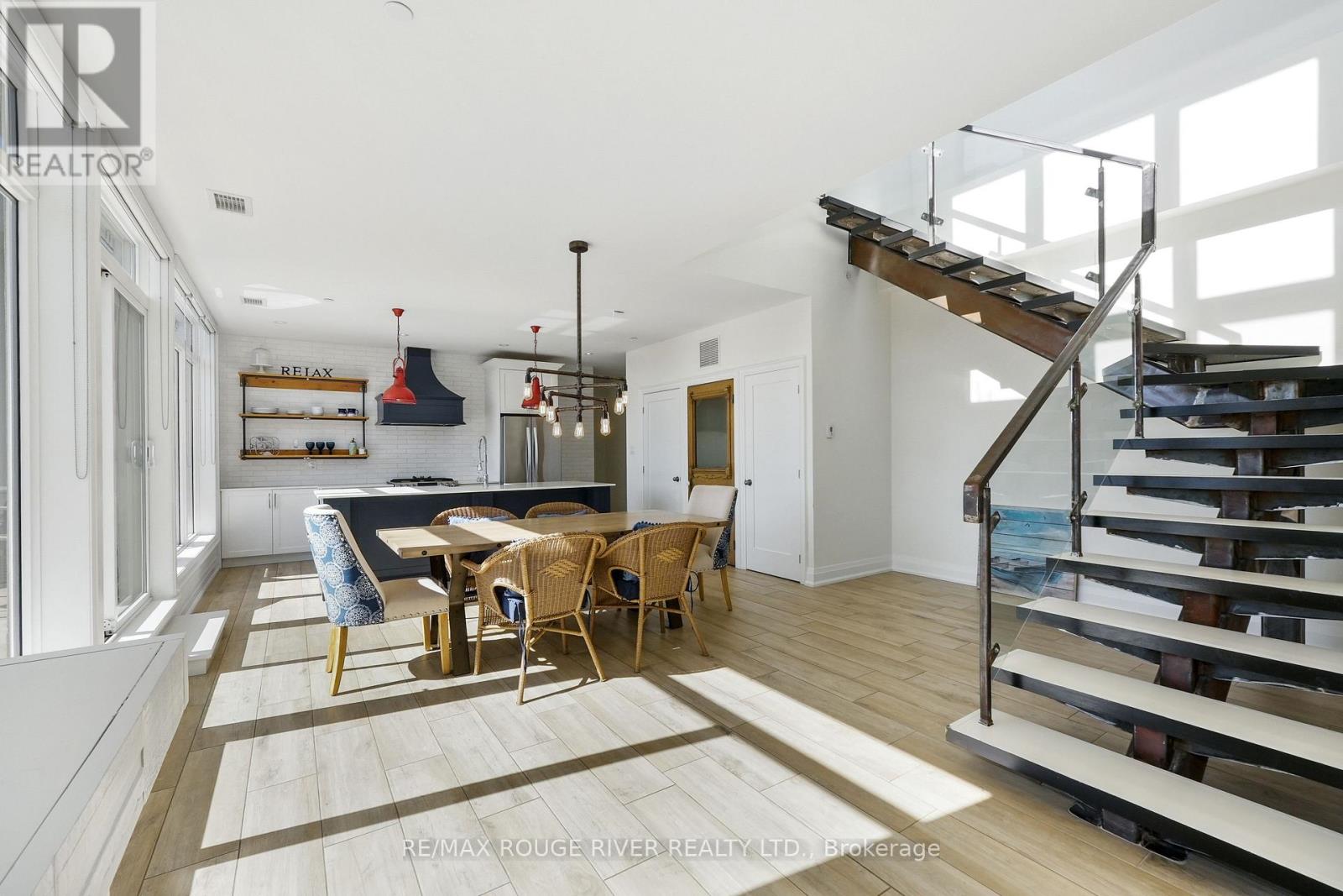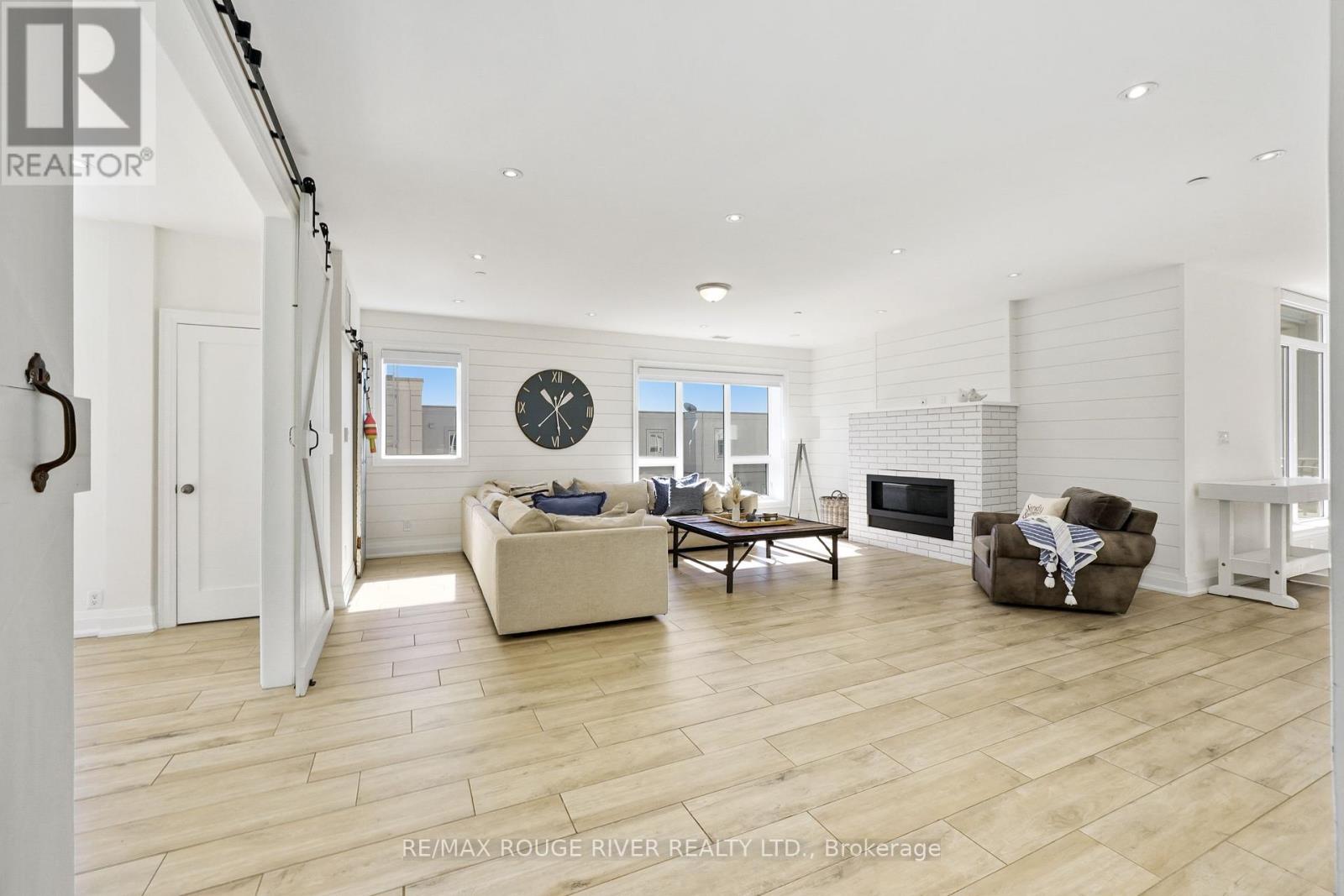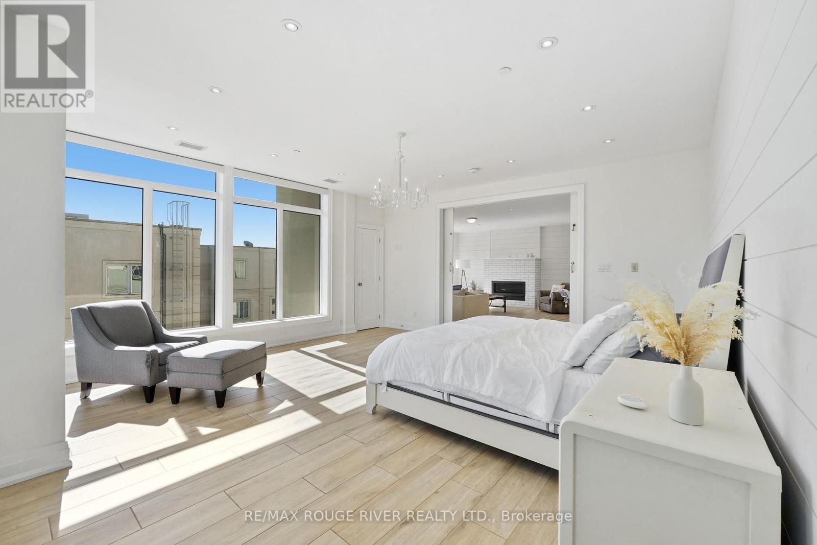 In the heart of Cobourg's Waterfront District, find this rare furnished luxury penthouse- an incredibly special sanctuary that has been designed with the utmost attention to detail. Atop the coveted Beach Walk Place building, this stunning open floor plan corner unit redefines lakeside living with its captivating views and oversized living spaces. Featuring sweeping views of the water, unit 301 is positioned facing South East, creating a sense of spaciousness and allowing natural light to stream in from all angles. The living, dining, and kitchen areas seamlessly connect, creating a fluid space that is perfect for both everyday living and entertaining. Up the stylish, industrial staircase, a huge jaw-dropping rooftop patio, one of multiple outdoor spaces in this unit, making it the perfect spot to host friends and family, or relax with a view. Accessed by a lift and including 1 covered parking spot- this executive furnished rental is turnkey and ready for you. Steps to the Cobourg Beach, boardwalk, marina, fine dining and shopping. (id:51158)