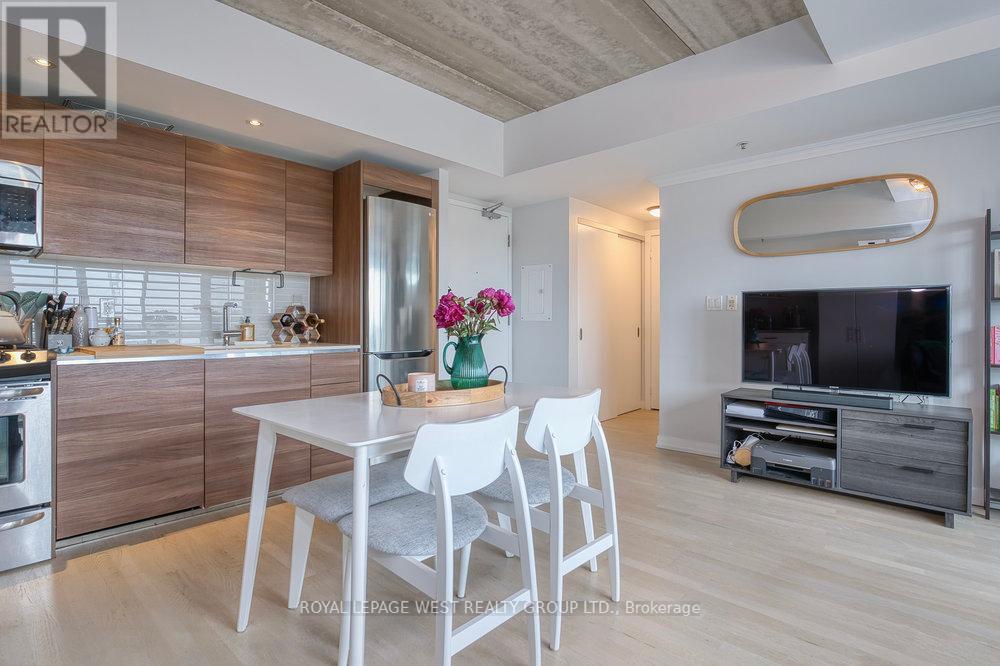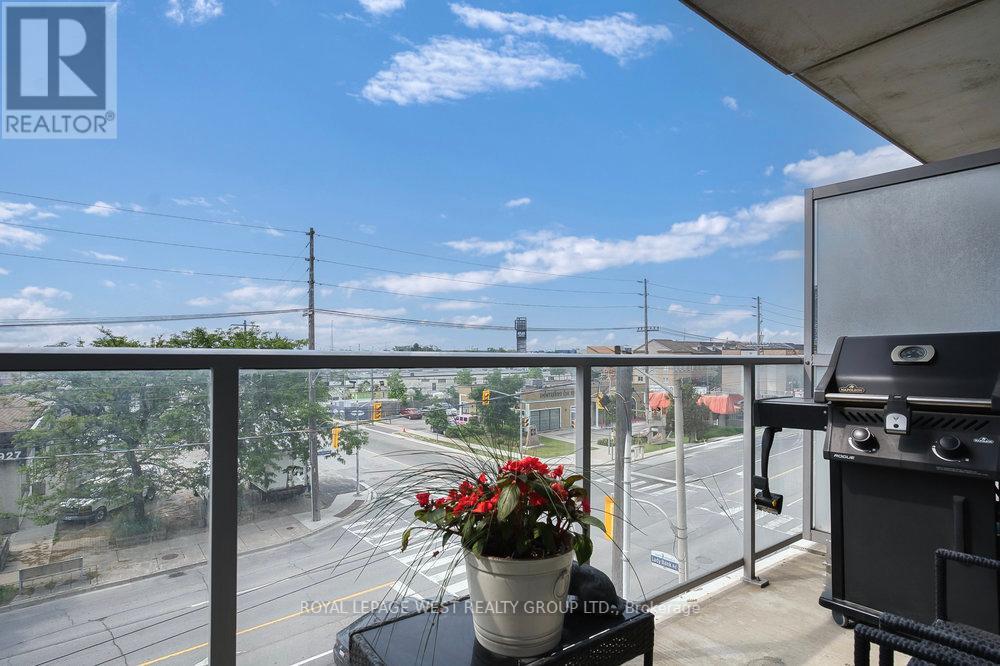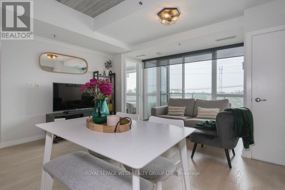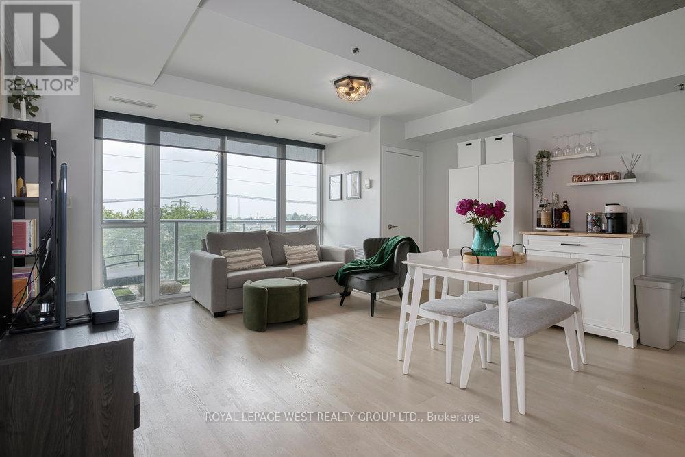 $477.87 MonthlyDon't miss out on the opportunity to own a condo in this chic 18 unit boutique building known as "The Hive" ideally located in the Queensway hub. This immaculate unit features engineered hardwood flooring, floor to ceiling windows, an open concept living/dining room and kitchen with exposed concrete ceiling, a 72 square foot south facing balcony, a primary bedroom with a semi-ensuite and walk-in closet. With TTC at the front door and easy access to major highways, convenience is key. Situated within walking distance to Costco, Cineplex movie theatre, restaurants, and shopping, this property offers the perfect blend of style, comfort, and location. Just move in and enjoy! (id:51158)