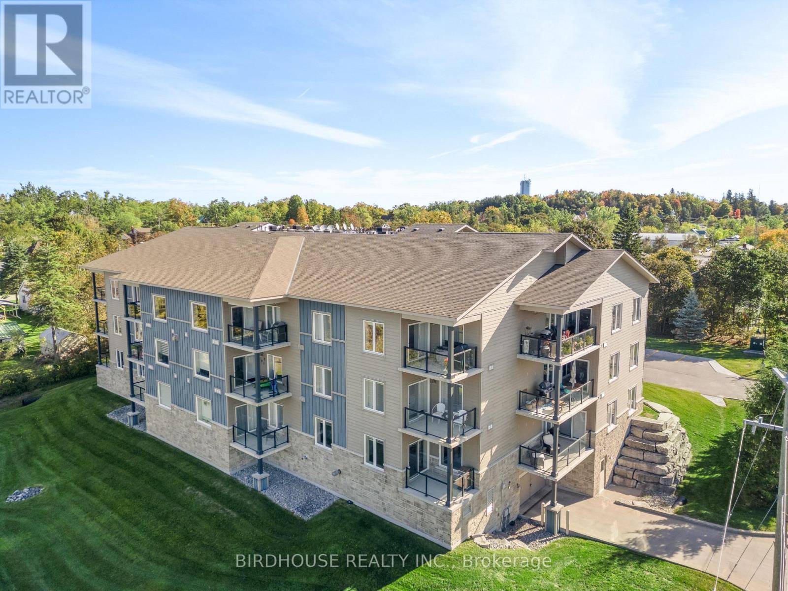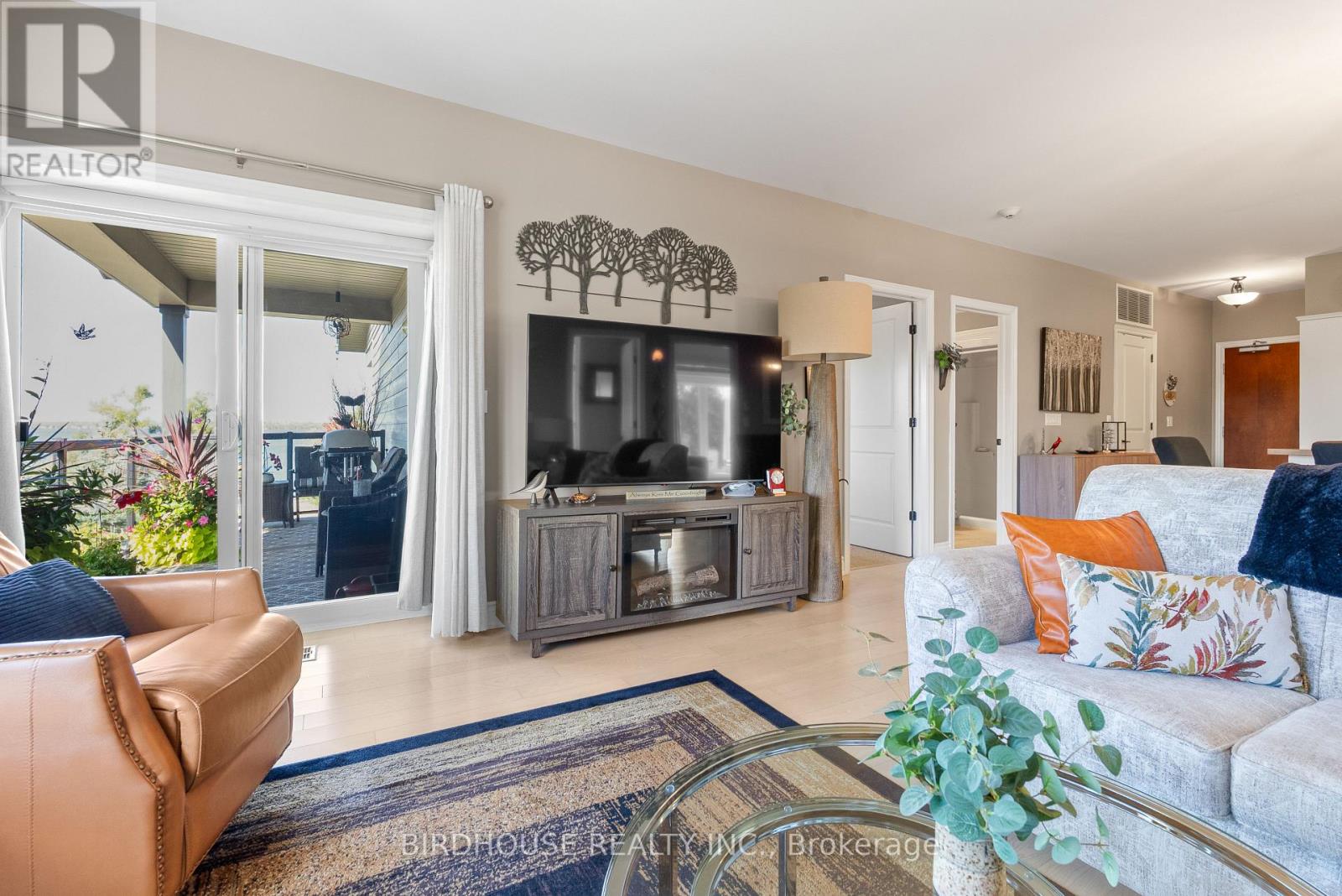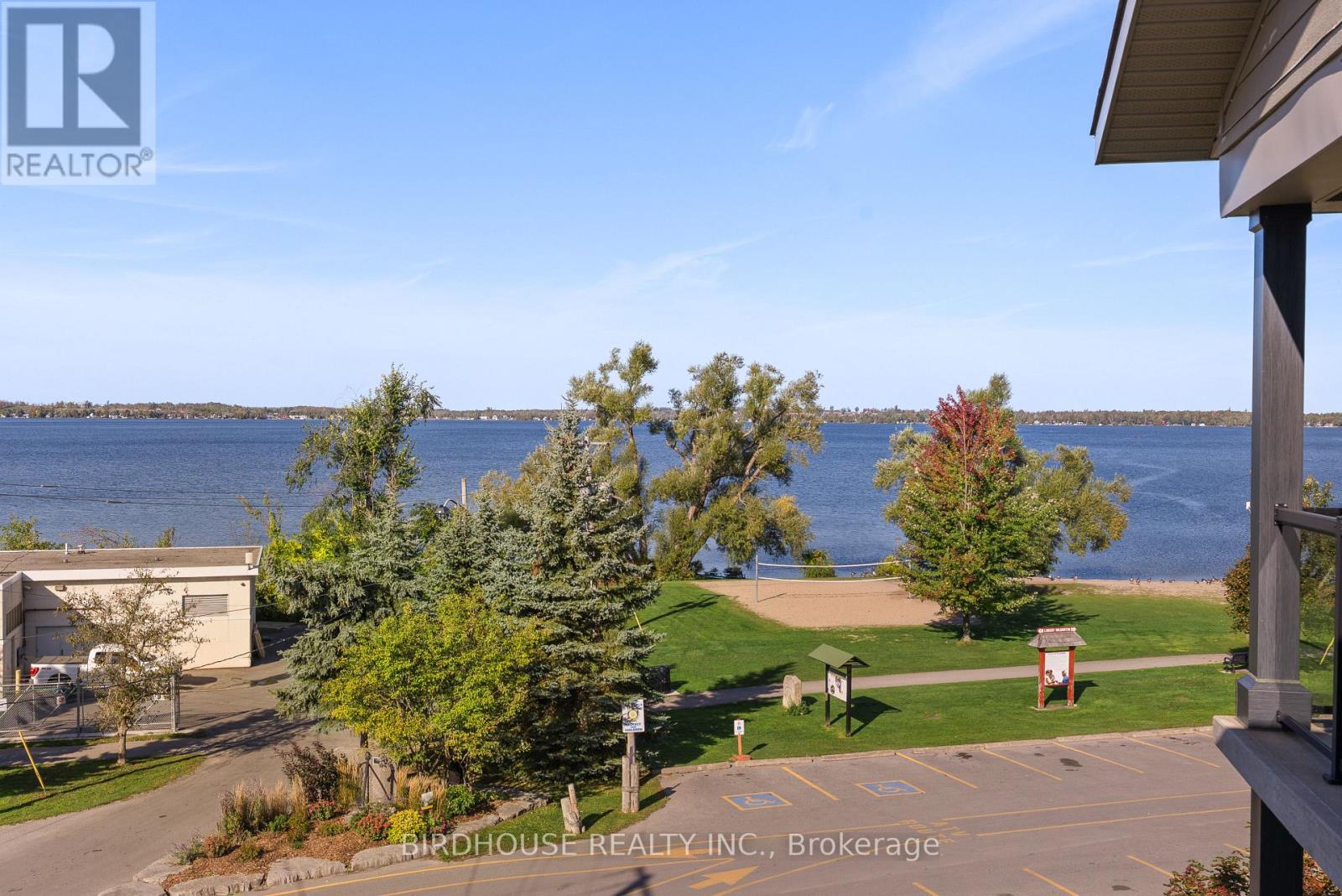 $944.53 MonthlyGorgeous "Silver Birch" condo model featuring 3 bedrooms & 2 bathrooms in Fenelon Falls! Fall-in love with the large 16ft balcony that provides stunning sunset views (NorthWest) over Cameron Lake! Enjoy year-round cooking on your propane BBQ on the covered balcony. The spacious 1195 sq ft floor plan features an open-concept kitchen, dining & living room which flow seamlessly together. Full second washroom with shower & laundry/utility room. The master bedroom features a large walk-in closet plus ensuite with tub/shower and an oversized vanity offering ample counter space & storage. Utilize the third bedroom as an office and marvel at the lake views! Convenience of underground parking, storage locker, elevator & visitor parking! One of the nicest units in the building! Condo fees include heat (propane), water, sewer, parking, storage locker, annual window cleaning & garbage removal. (id:51158)
