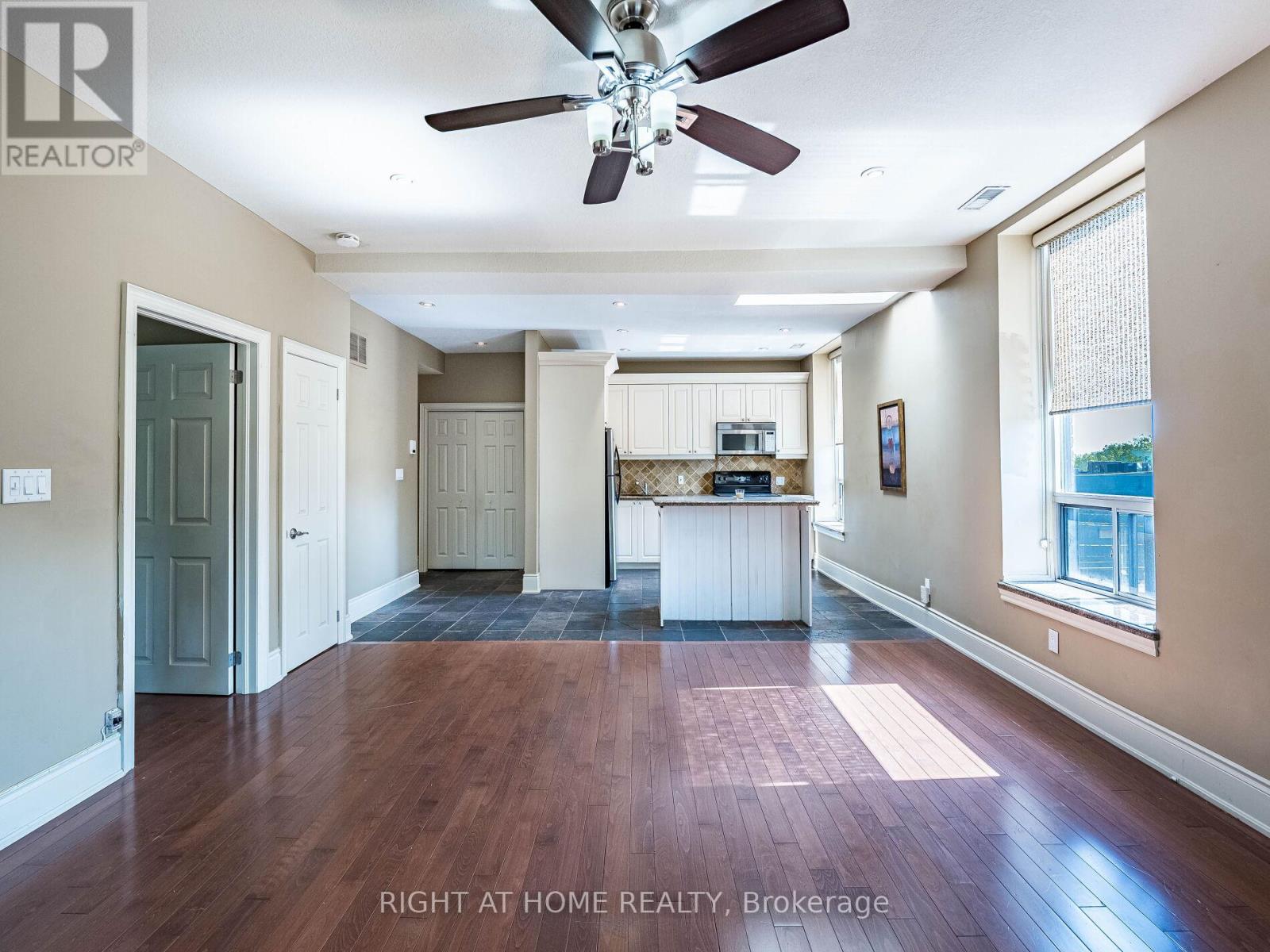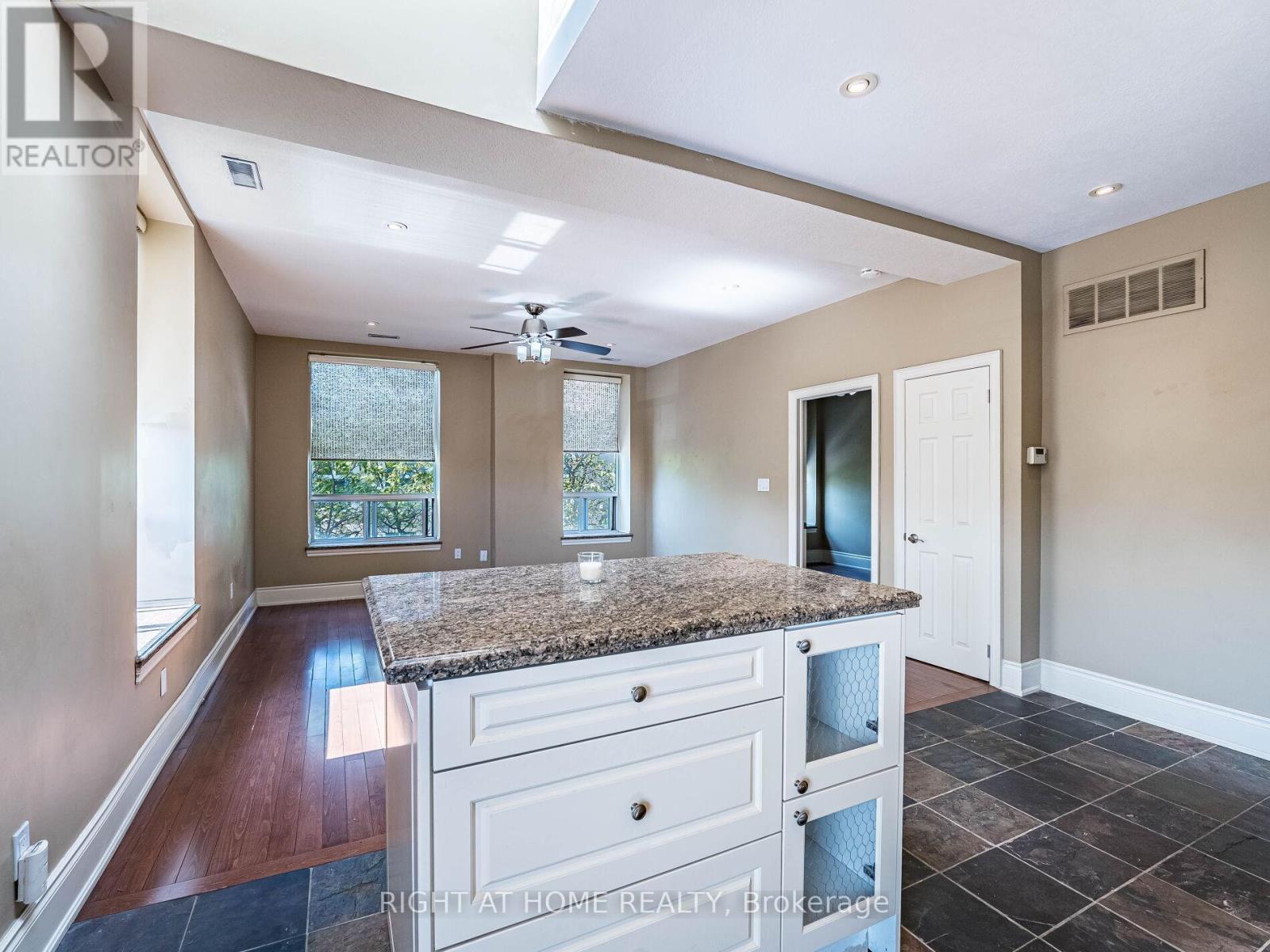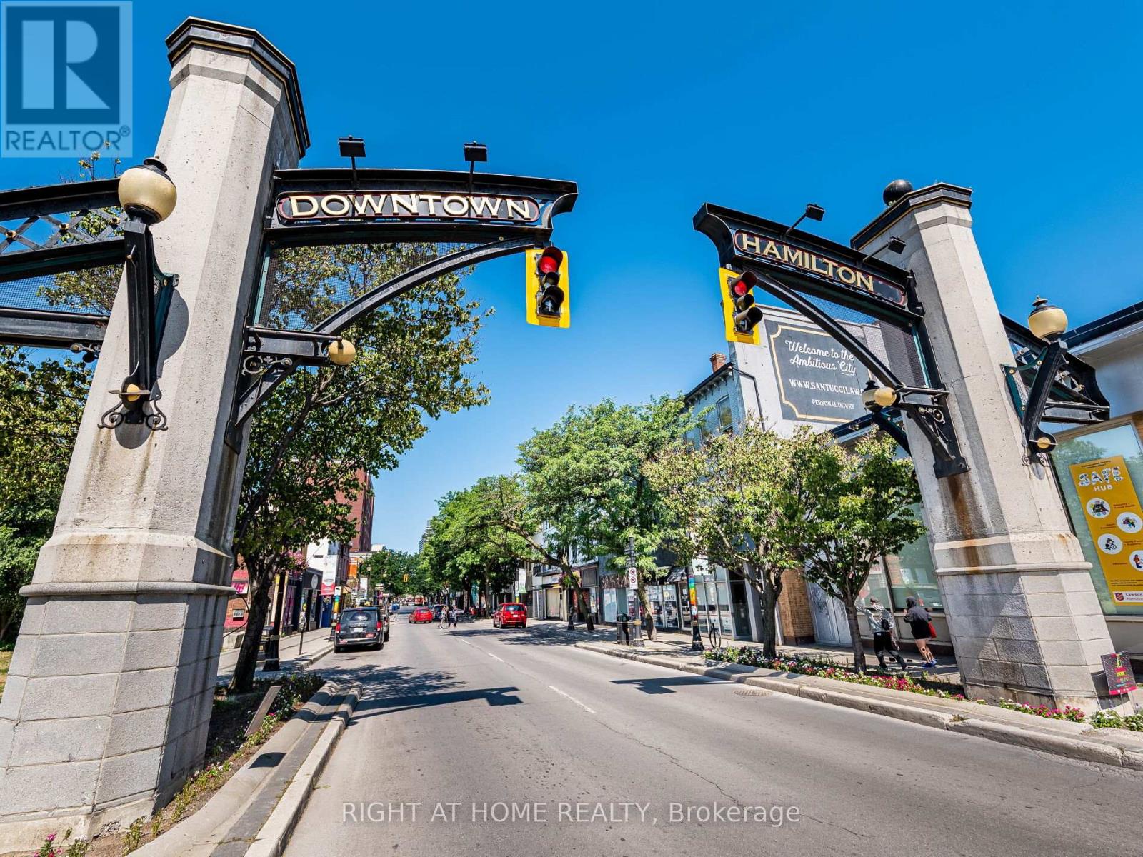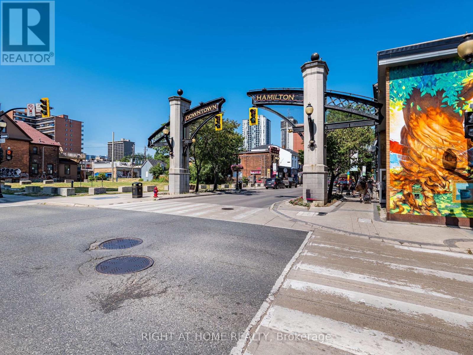 Prime Location! Located In Trendy International Village In The Heart Of The City Steps To All Amenities! This Gorgeous Open Concept Sunny, Renovated and Updated Corner Penthouse With 9.5 Ft Ceilings Featuring 800 Sqft Of Living Space! Soaring 9.5 ft (Loft Like) Ceilings, w/ Large Windows and Sky Light! Glorious Kitchen for Any Gourmet - Granite Counters, Backsplash, Stainless Steel Appliances & Breakfast Bar! Hardwood And Slate Flooring Throughout . 4X8' Storage Locker In Basement. Laundry on same level. Parking Available ($95). Steps to Restaurants, Parks, Schools, Groceries, Farmers Market, Jackson Square (w/ Close Proximity to Gore Park and McMaster University)!! Parking is available but owned by separate company and is rented for a fee $95 (not included) (id:51158)