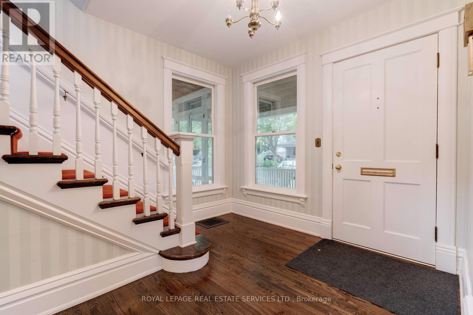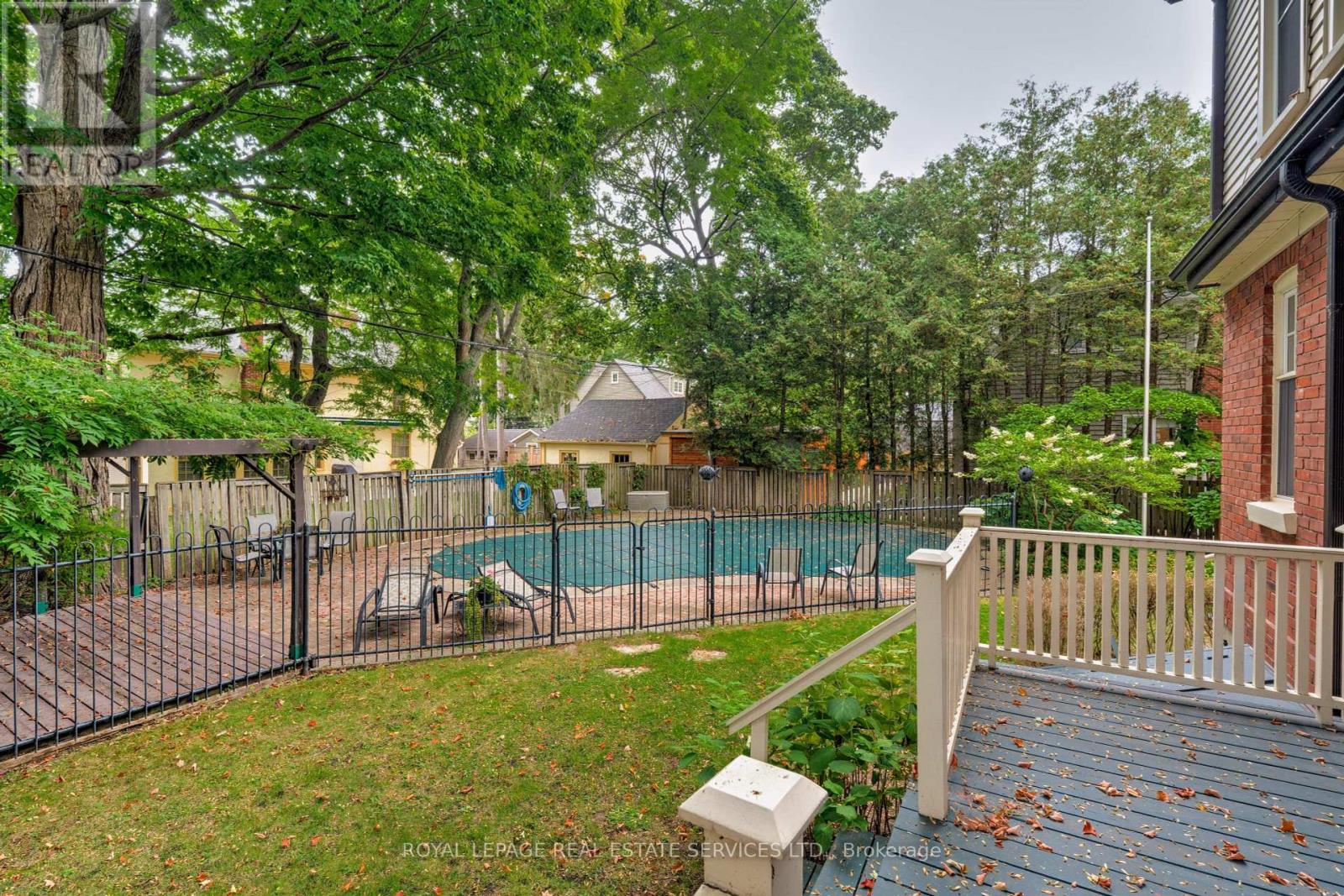 Welcome to 302 William Street, a distinguished Heritage home in the heart of Old Oakville. This timeless red-brick residence exudes character and charm, set amidst beautifully landscaped gardens and mature trees. Meticulously maintained and thoughtfully updated; the home offers more than 3000 sqft of inviting living space. A welcoming covered veranda and screened-in porch set the tone for the warmth and hospitality found inside. The gracious foyer opens to the principal rooms with hardwood floors that flow throughout the main level. You'll find a formal living room with gas fireplace, an elegant dining room and a sun-filled kitchen and breakfast area with walkouts to the backyard deck as well as the screened-in sunroom - the perfect spot to linger over dinner while entertaining friends & family. Upstairs, the primary bedroom offers a walk-in closet, semi-ensuite and a charming hidden sewing nook adds a sense of character and discovery. Two more bedrooms and a main 4pc bath complete the second level. The third floor provides a full retreat for family living, featuring a generous family room, two more bedrooms and a four-piece bath - ideal for guests or growing families. The lower level includes a large laundry area, a workshop for hobbies and projects and plenty of storage space. Outside, the lush, fully fenced backyard is a summer oasis with an in-ground pool, cabana change room, and ample deck and patio space designed for entertaining. Perfectly located, this home is a short walk to Oakville's vibrant downtown, renowned restaurants, boutique shopping, Lake Ontario's waterfront trails, and the Oakville Club. With excellent schools nearby and easy access to highways and the GO Station, 302 William Street is more than a house, it is a rare opportunity to own a piece of Oakville's history. (id:51158)