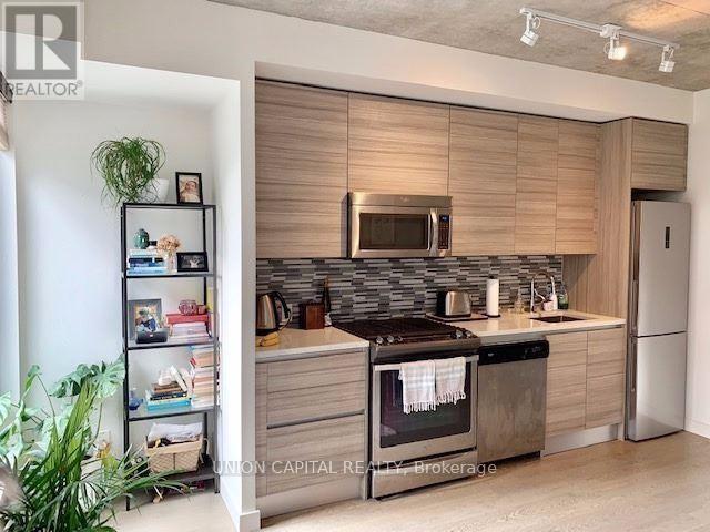 Great Location In The Heart Of King And Queen West! One Bedroom, Hardwood Flooring Throughout W/ Modern Finishes In Kitchen & Bathroom. Exposed Concrete Ceiling & Feature Walls. Gas Range, 9Ft Ceilings, Ensuite Stacked Laundry. Modern Loft Style. Easy Access To Hwys. Steps To Ttc (King, Queen Or Bathurst Streetcars), Restaurants, Shopping, Parks, Bars And Nightlife. 99 Walk Score. 100 Transit Score. (id:51158)