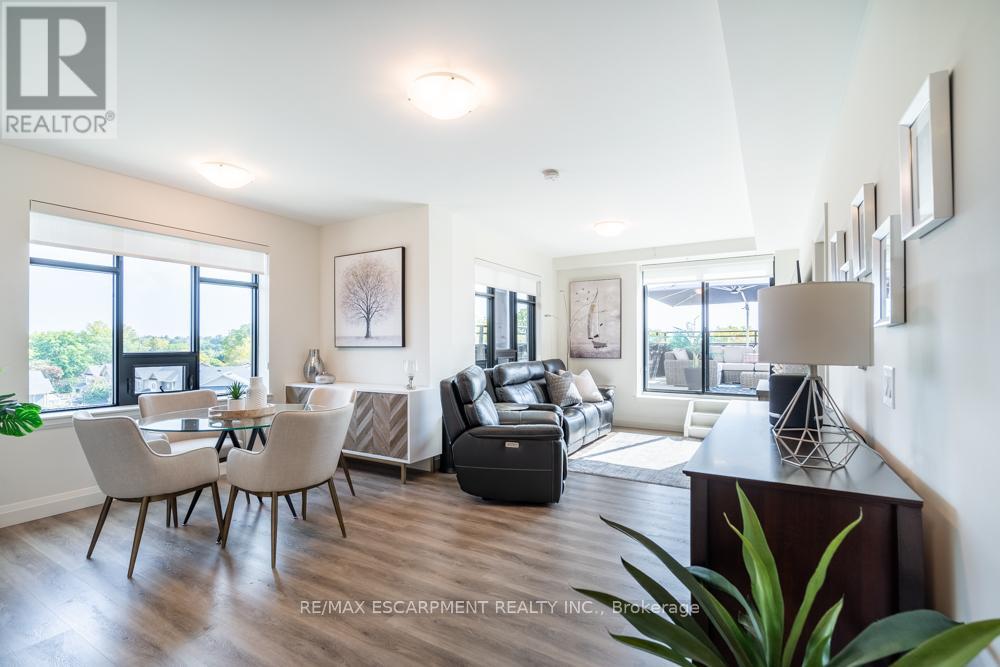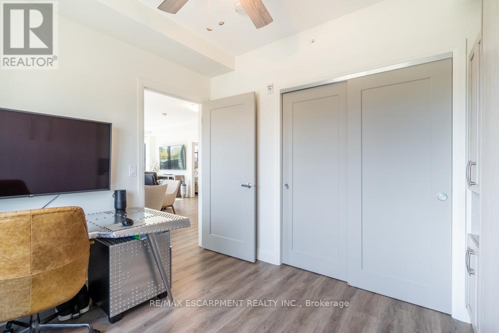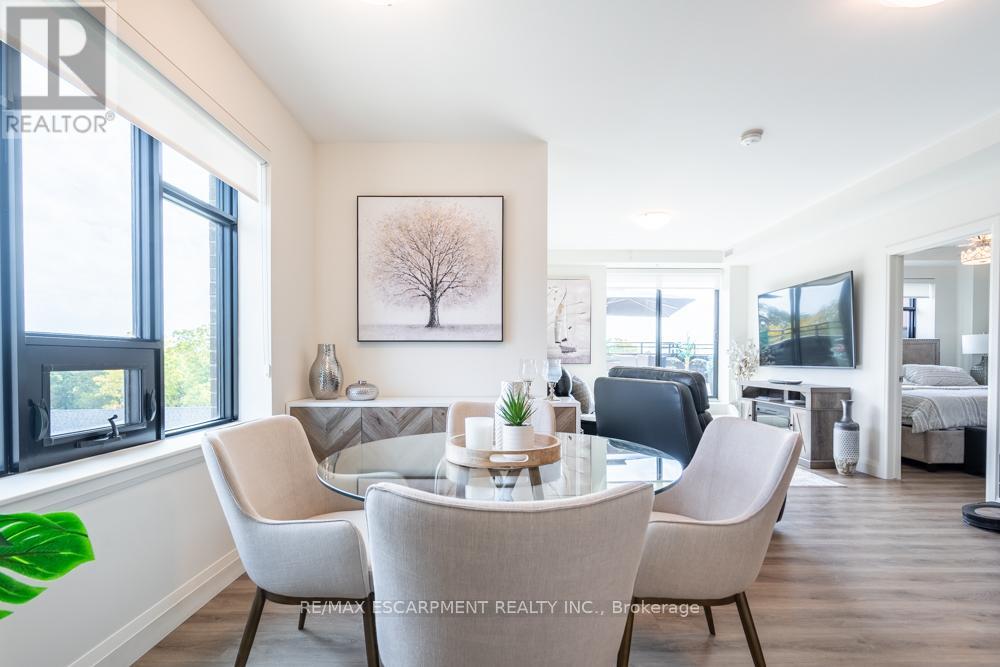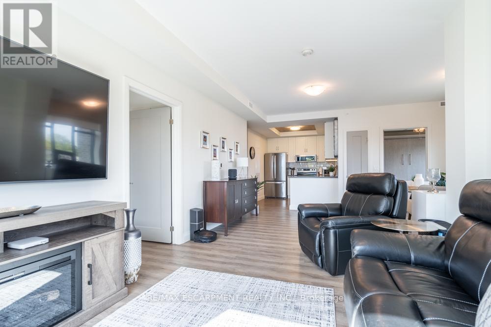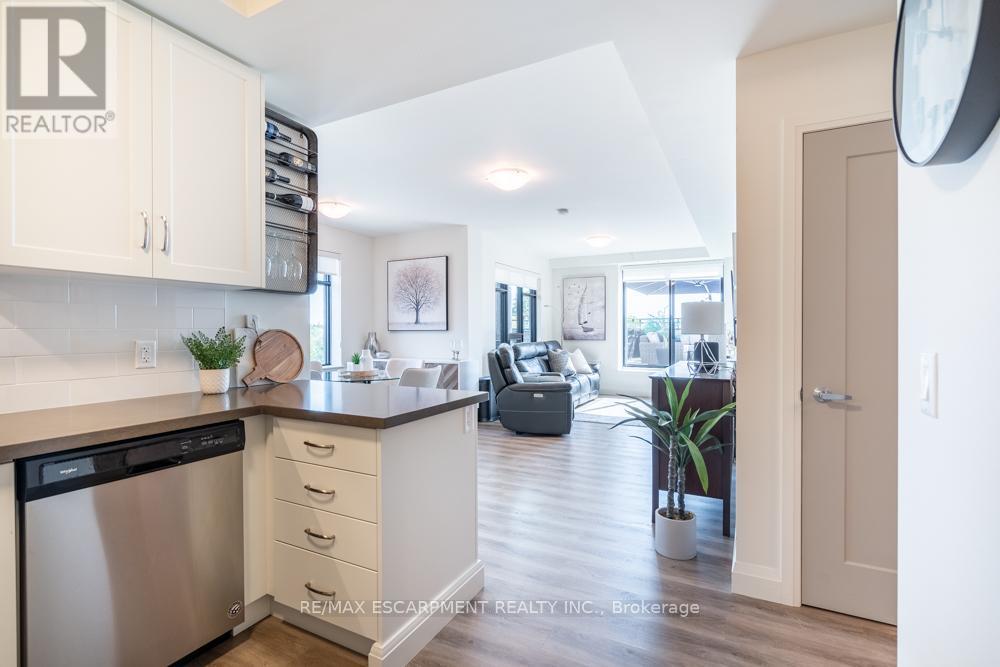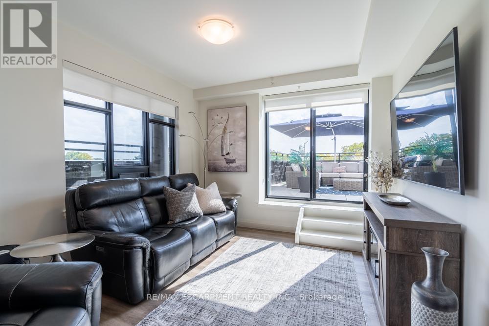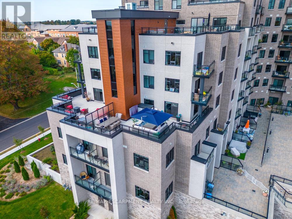 $1,211 MonthlyDreaming of condo living without giving up your outdoor space? This rarely offered corner unit delivers the best of both worlds with a massive 600 sq ft private terrace perfect for entertaining, relaxing and soaking up incredible lake AND city views. Inside, you'll find a 2-bed, 2-bath gem loaded with upgrades: a chefs kitchen with beautiful quartz counters, clean white subway tile backsplash, soft-close custom cabinetry, under cabinet lighting and a breakfast bar. The bedrooms are spacious, and the primary suite has its own four-piece ensuite. Enjoy in-suite laundry for your convenience. Thats not all, this building has stunning amenities including a lavish party room, a dog wash station, a gym and rooftop patio. And the location? Unbeatable. Steps to restaurants, groceries, trails and highway access, all in the heart of Waterdown. Thats not it - Enjoy 12 months of included condo fees!! This one has it all. RSA. (id:51158)
