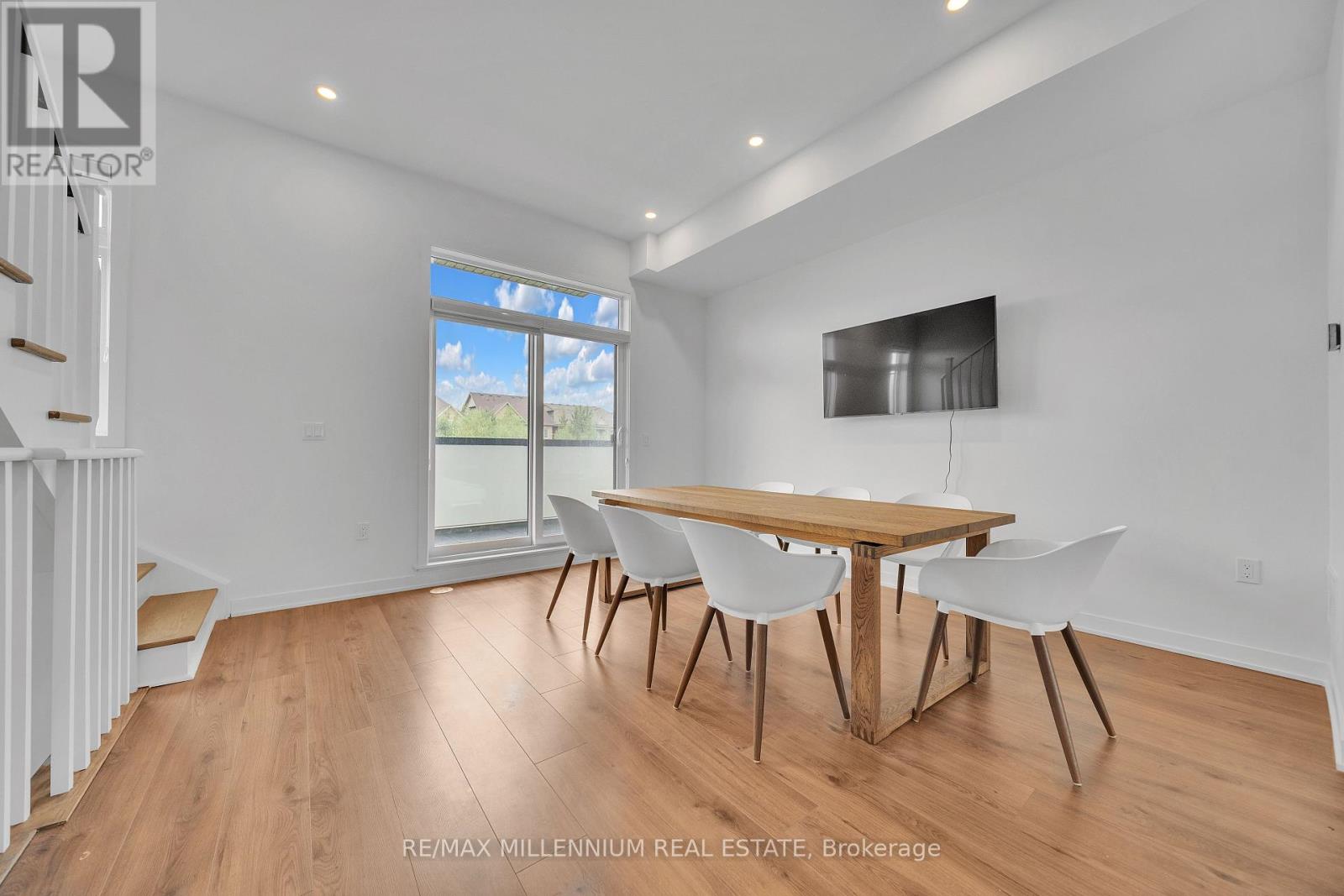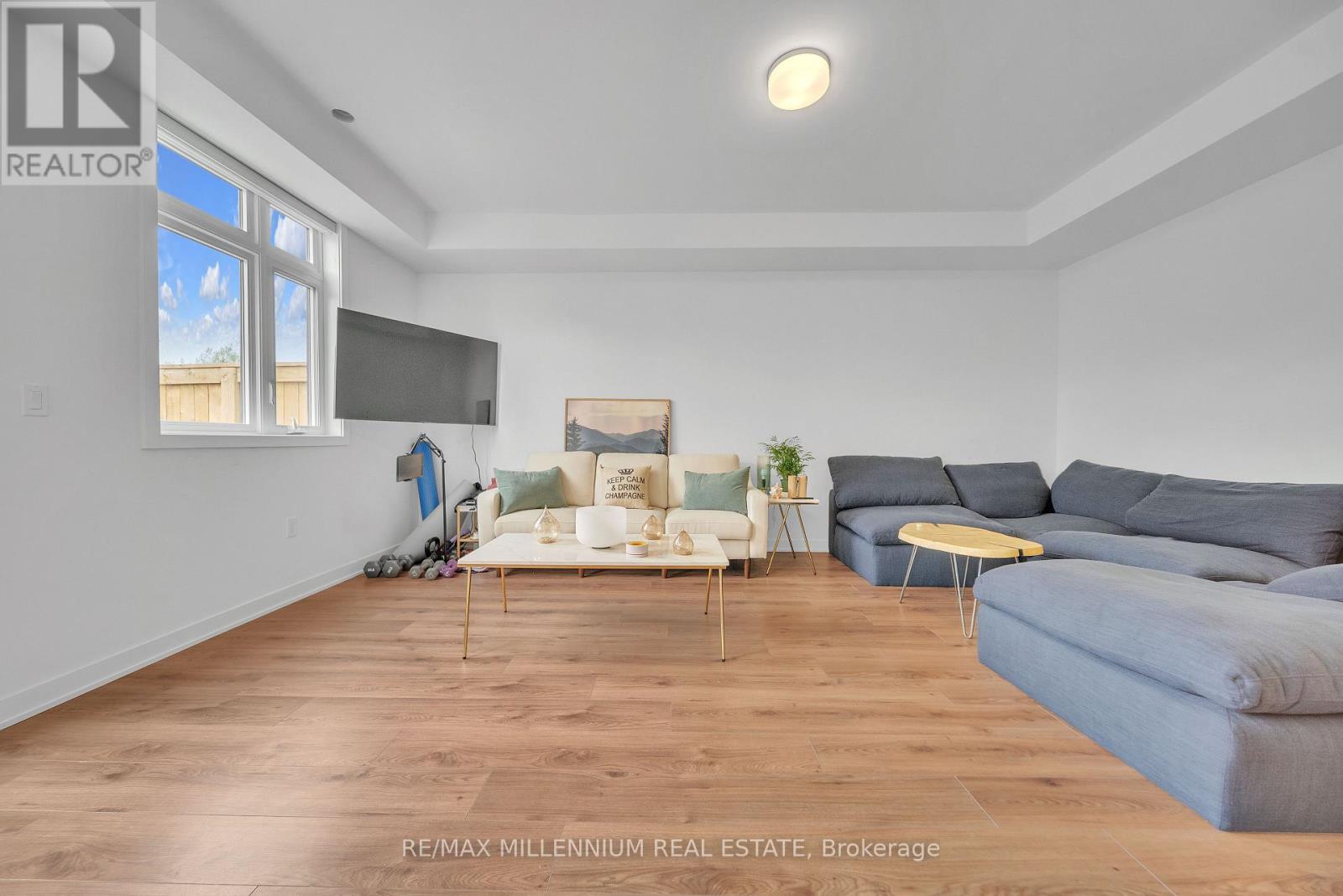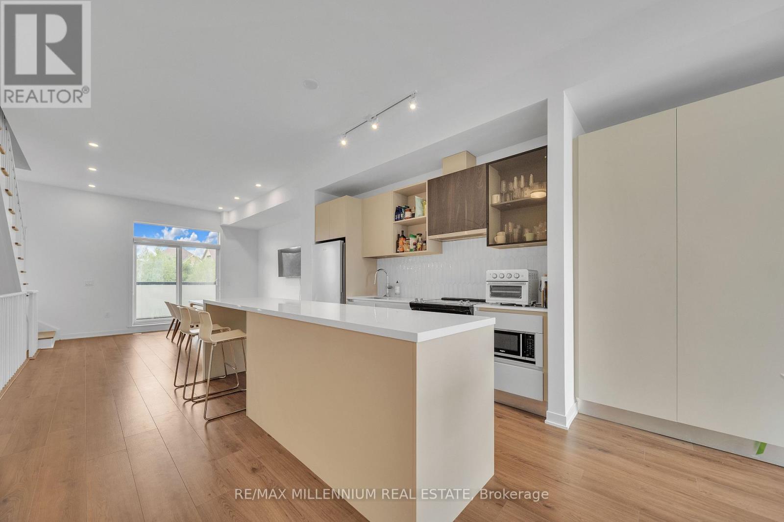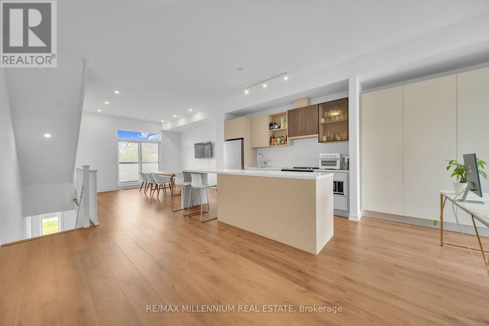 Discover refined living in this One year old Freehold townhome offering 2,277 sq. ft. of thoughtfully designed space, featuring 3 spacious bedrooms and 3 luxurious bathrooms. Step into a bright and airy interior boasting 10-foot ceilings in the main living area and wide-plank laminate flooring throughout, blending style and functionality. The gourmet kitchen is the centerpiece of the home, outfitted with Italian Trevisana cabinetry, a striking waterfall island, quartz countertops and backsplash, stainless steel appliances, and a stainless steel hood fan perfect for everyday meals or entertaining. Enjoy seamless indoor-outdoor living with a walk-out to your private terrace, ideal for summer evenings or morning coffee. The primary suite is a true retreat, featuring a spa-inspired ensuite with double sinks, a generous walk-in closet, and a private balcony offering peace and privacy. Additional highlights include LED lighting throughout, a tankless hot water heater, gas BBQ hookup, and hose bibs in both the backyard and garage for added convenience. Nestled in a sought-after Oakville neighbourhood, you're just minutes away from upscale restaurants, boutique shopping, and top-rated public and private schools. Commuters will appreciate quick access to Hwy 403, 407, GO Transit, and regional bus routes. Don't miss your opportunity to own this sophisticated and low-maintenance home in one of the GTAs most desirable communities! (id:51158)